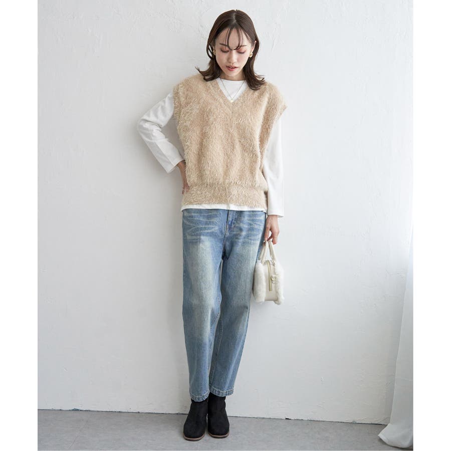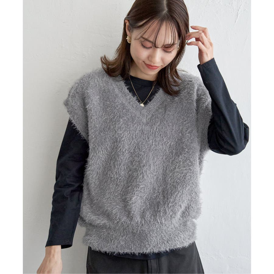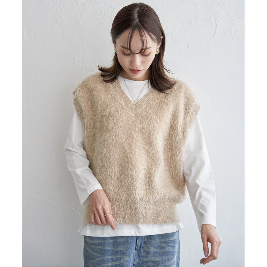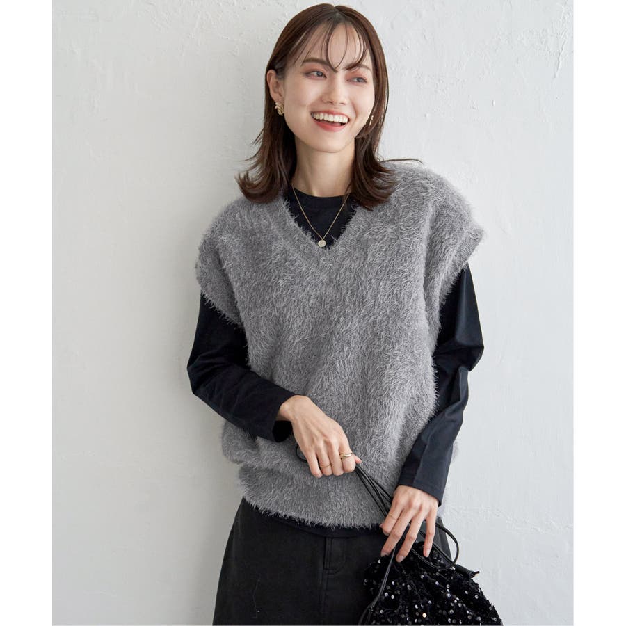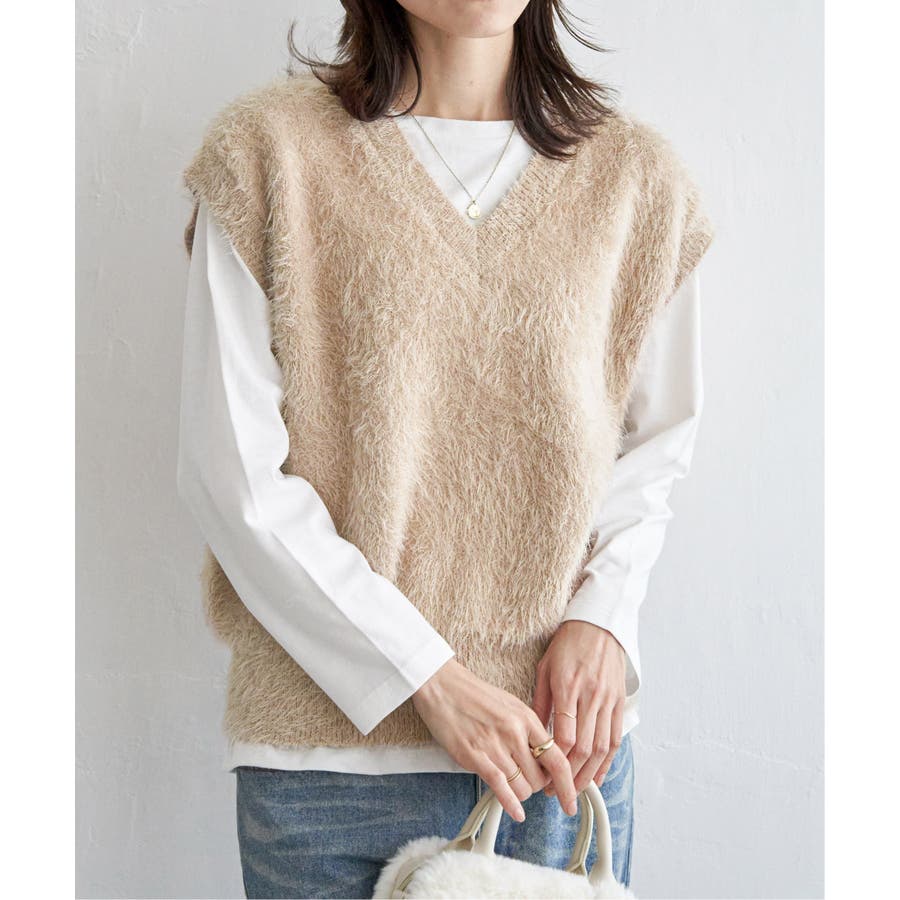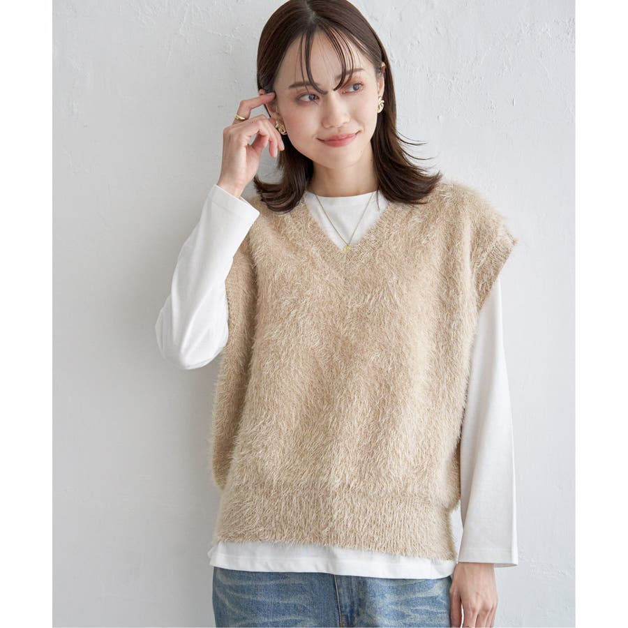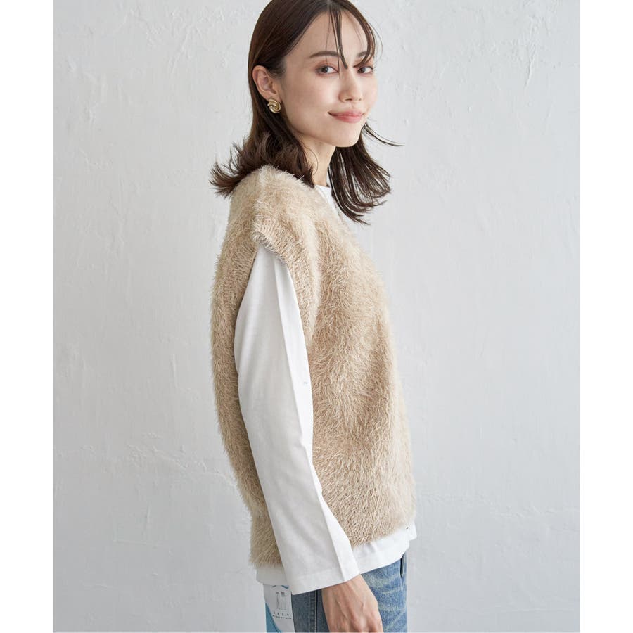 簡単に季節をスライドできる、ふわふわ素材のベスト。