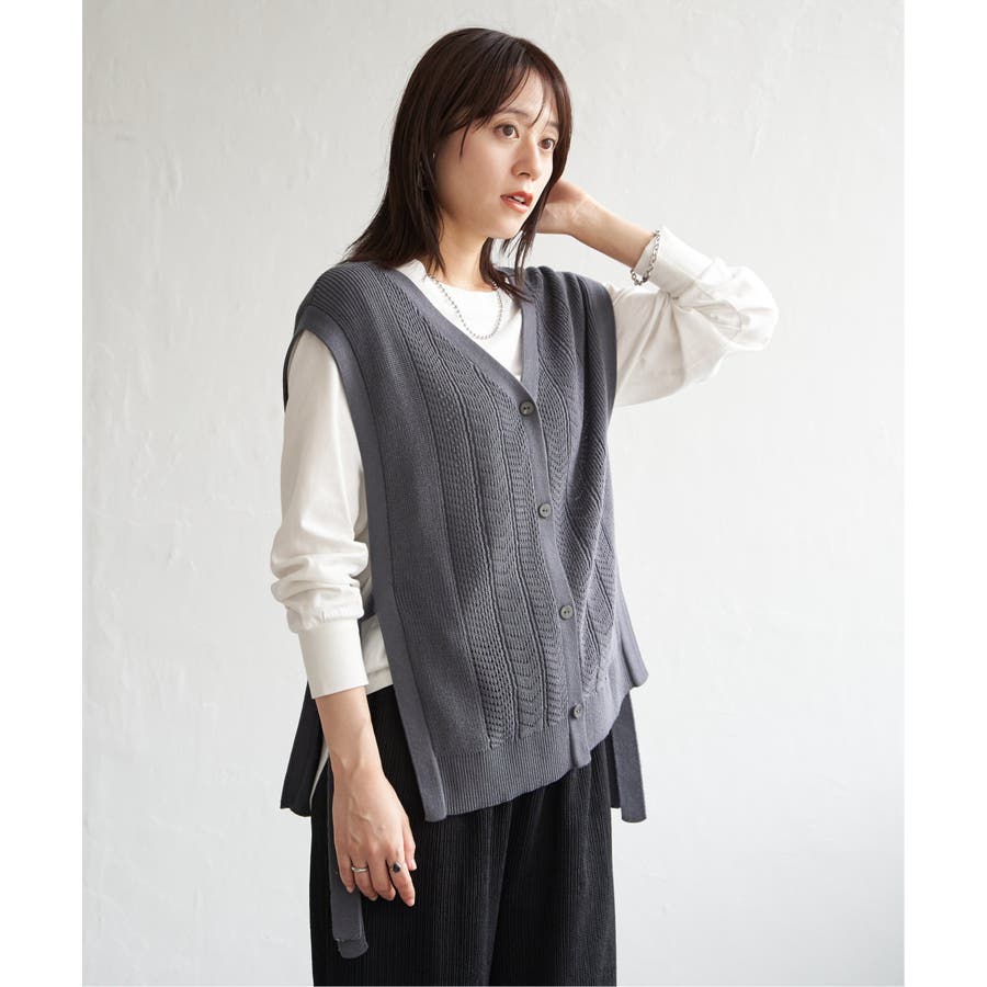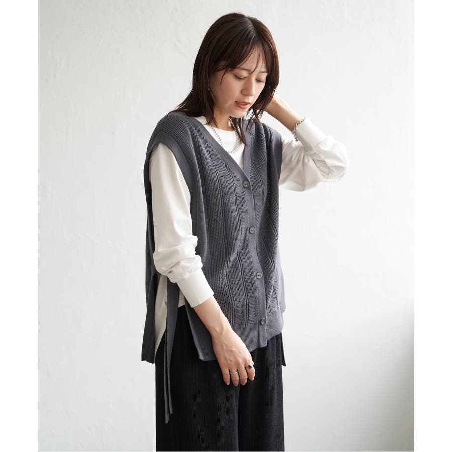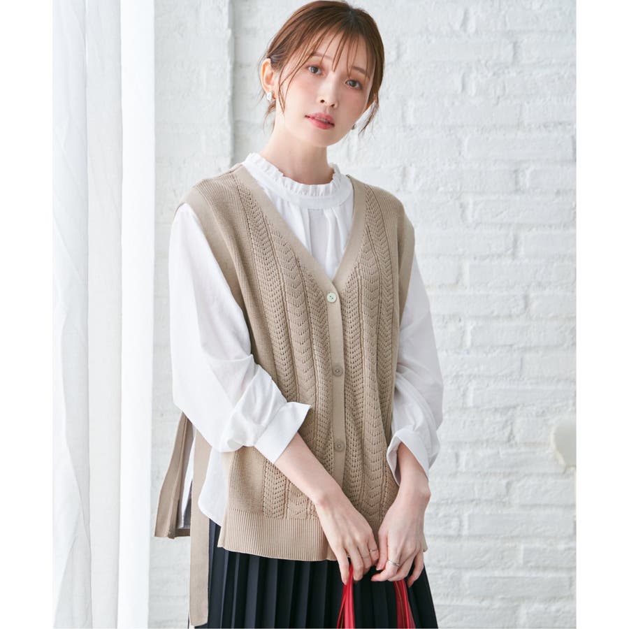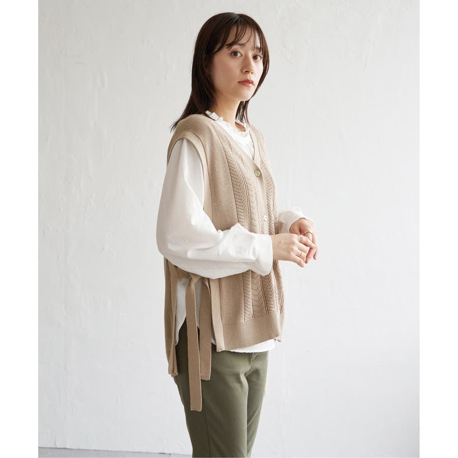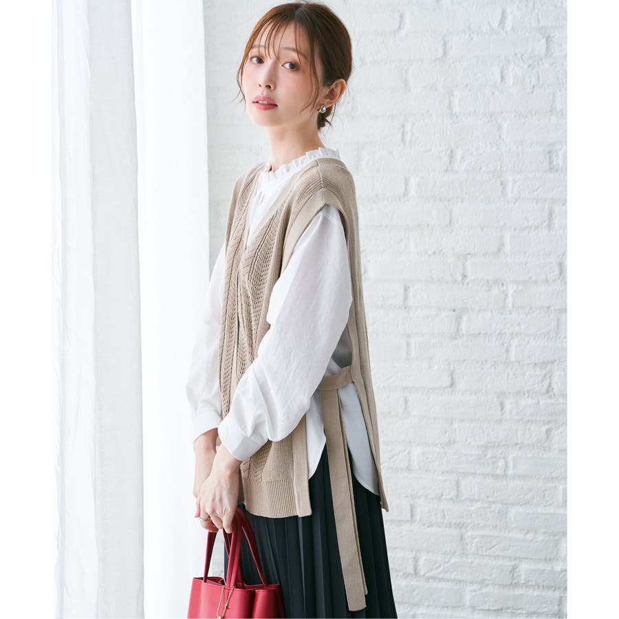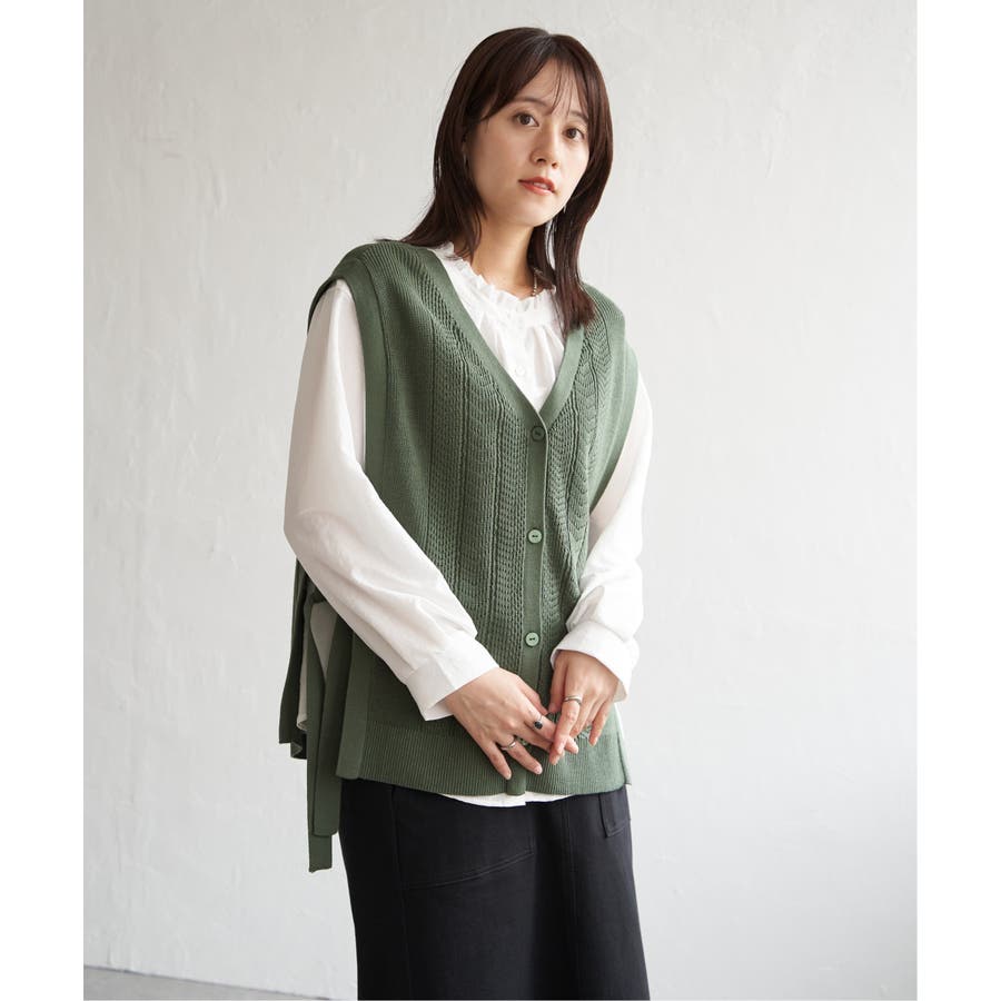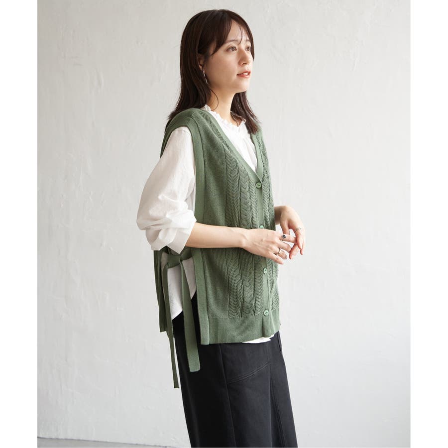 こなれた印象をつくるサイドリボン×前後2WAY仕様のニットベスト。