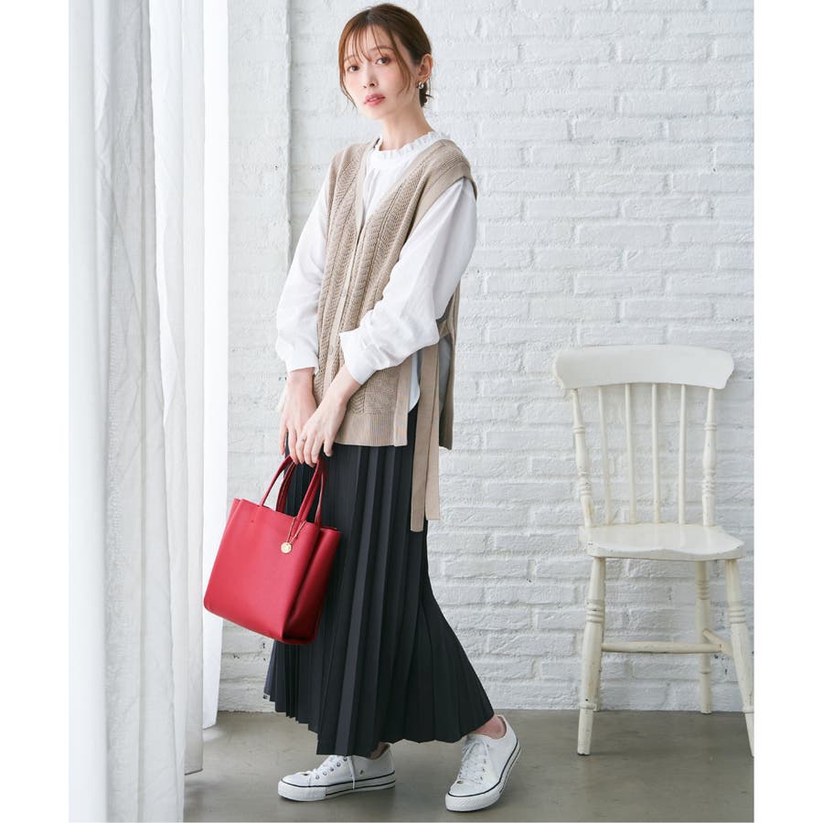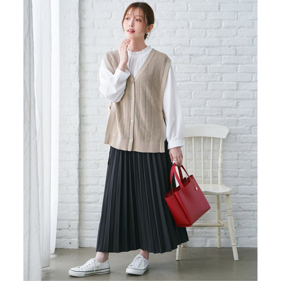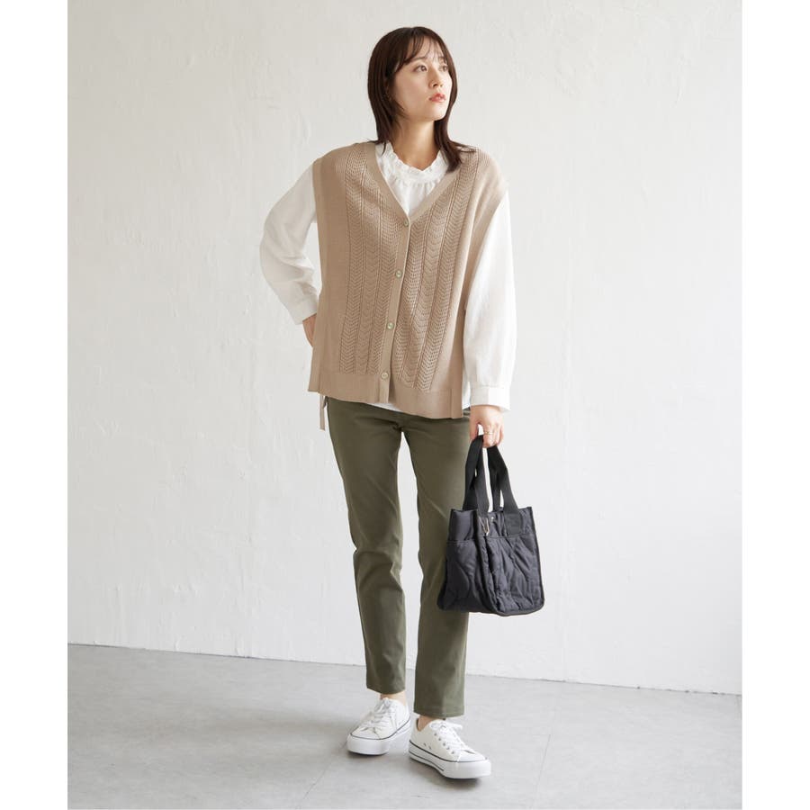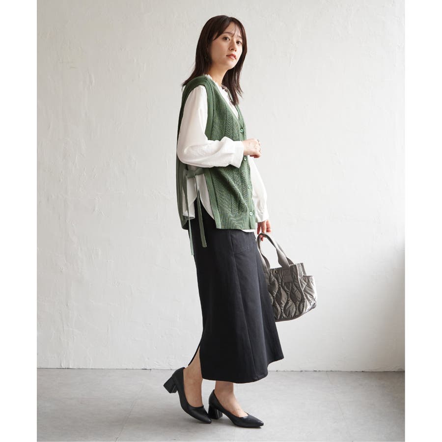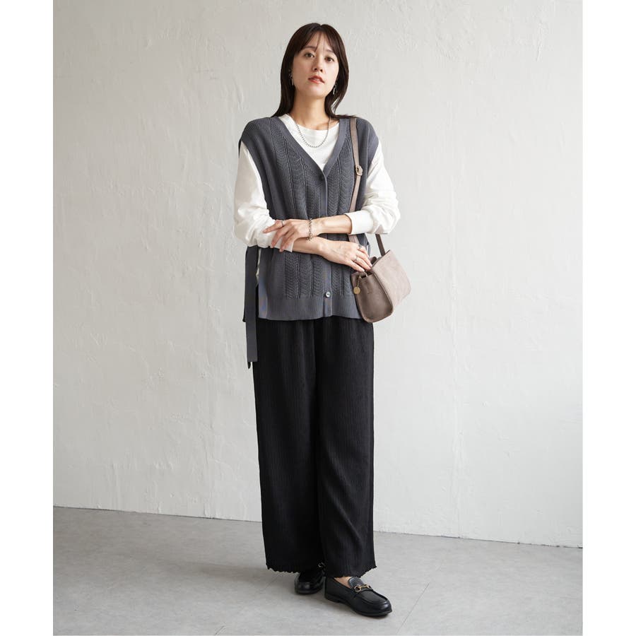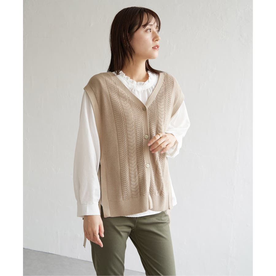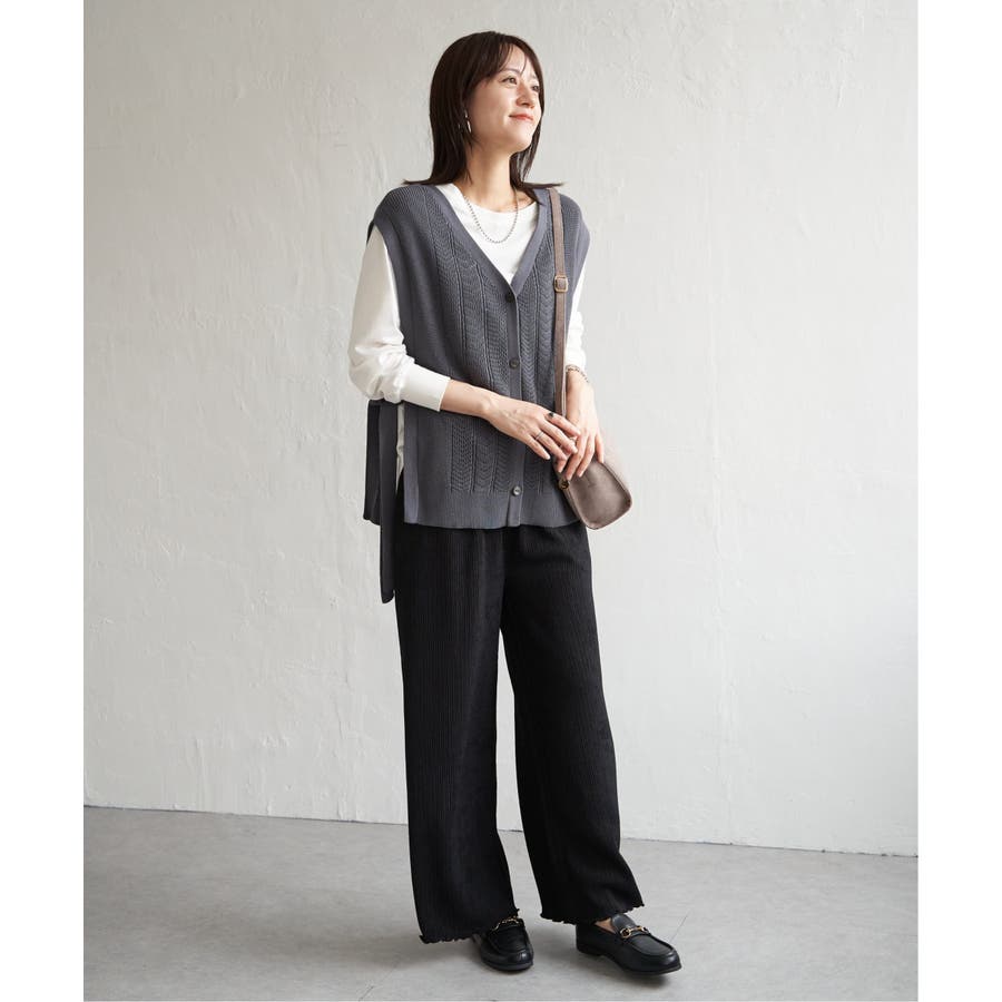 こなれた印象をつくるサイドリボン×前後2WAY仕様のニットベスト。