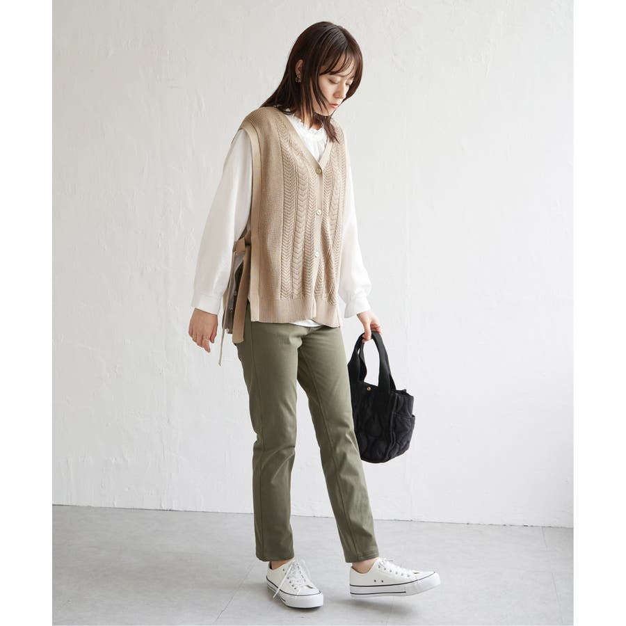 ・半袖Tから長袖ブラウスまで合わせやすいデザインにしています。