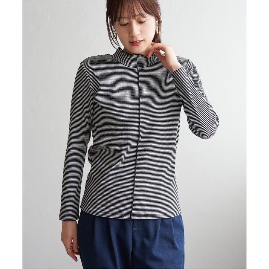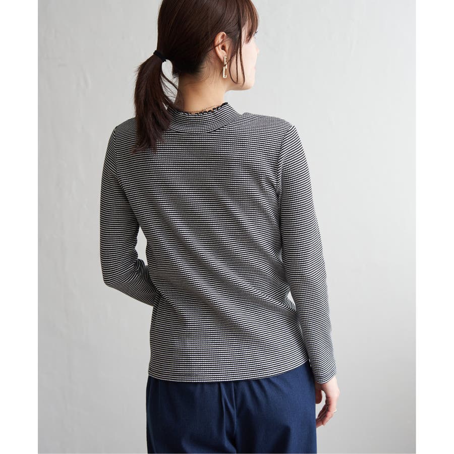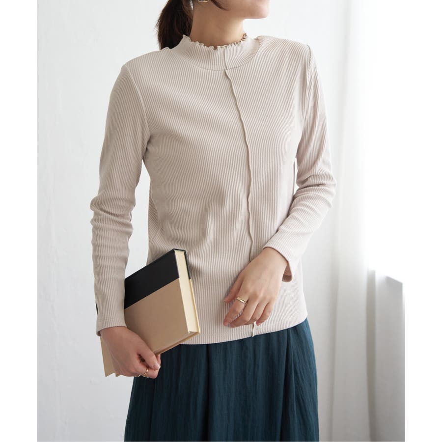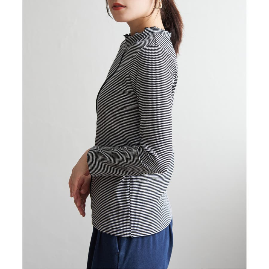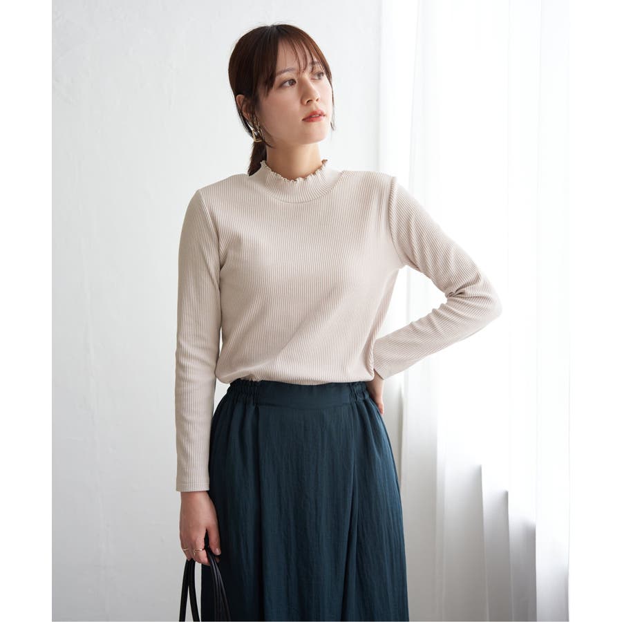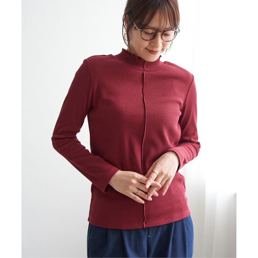 表情のあるテレコ素材を使用した、前後2WAYで楽しめるハイネックプルオーバー。
