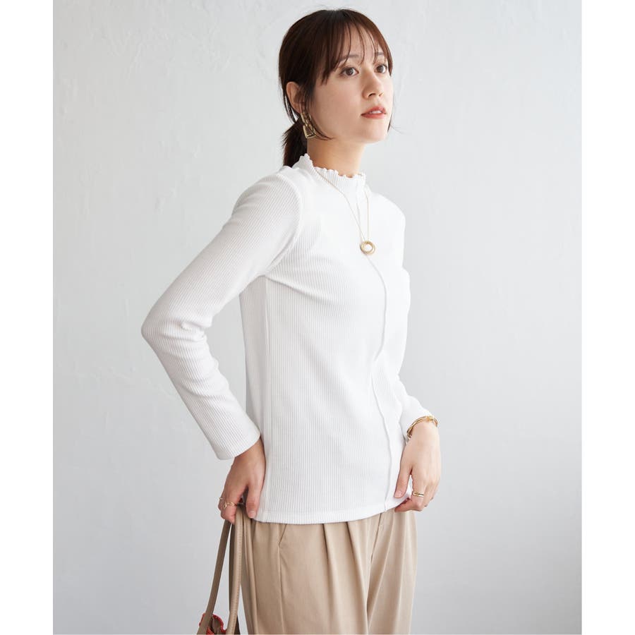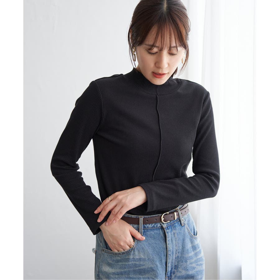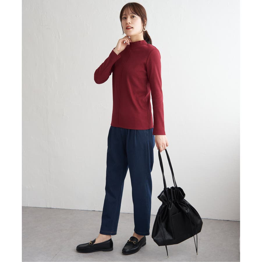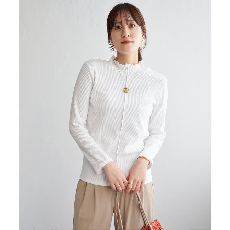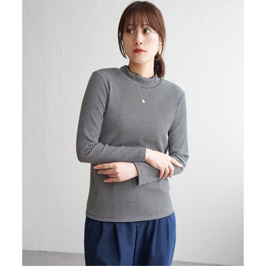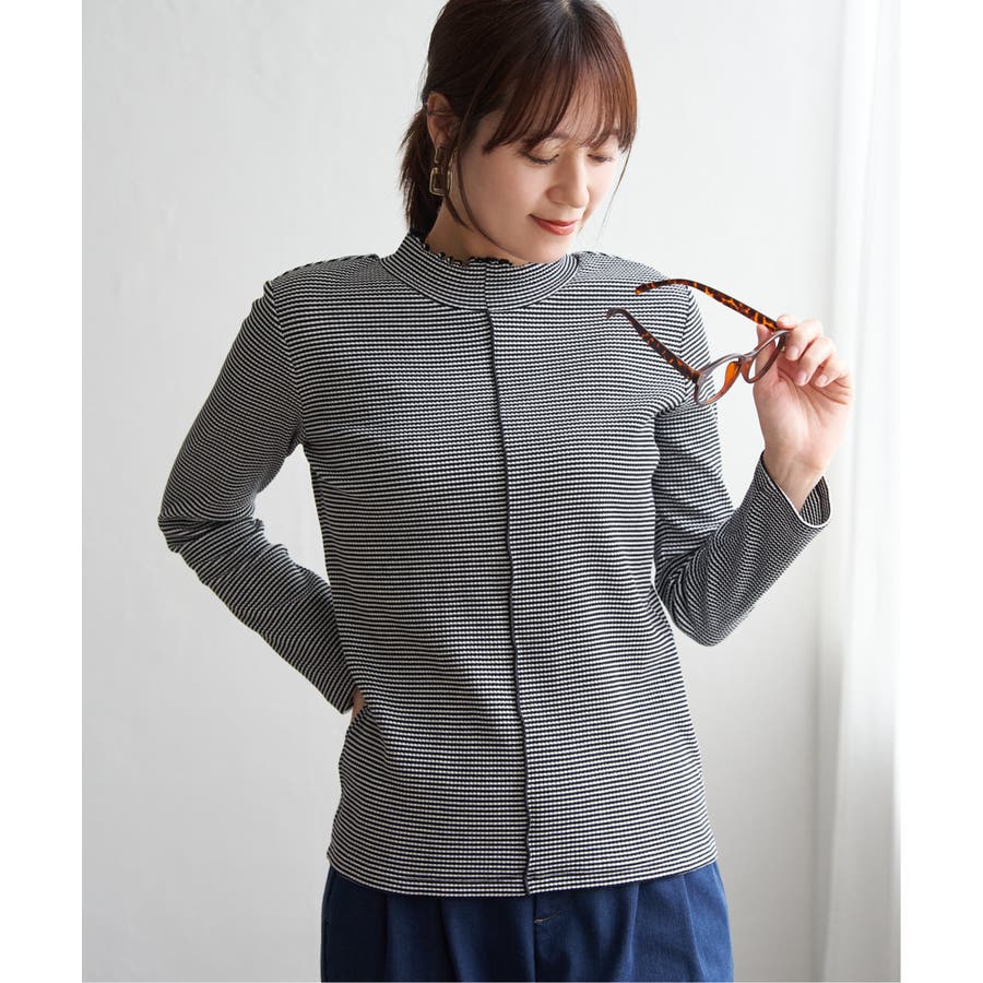 表情のあるテレコ素材を使用した、前後2WAYで楽しめるハイネックプルオーバー。