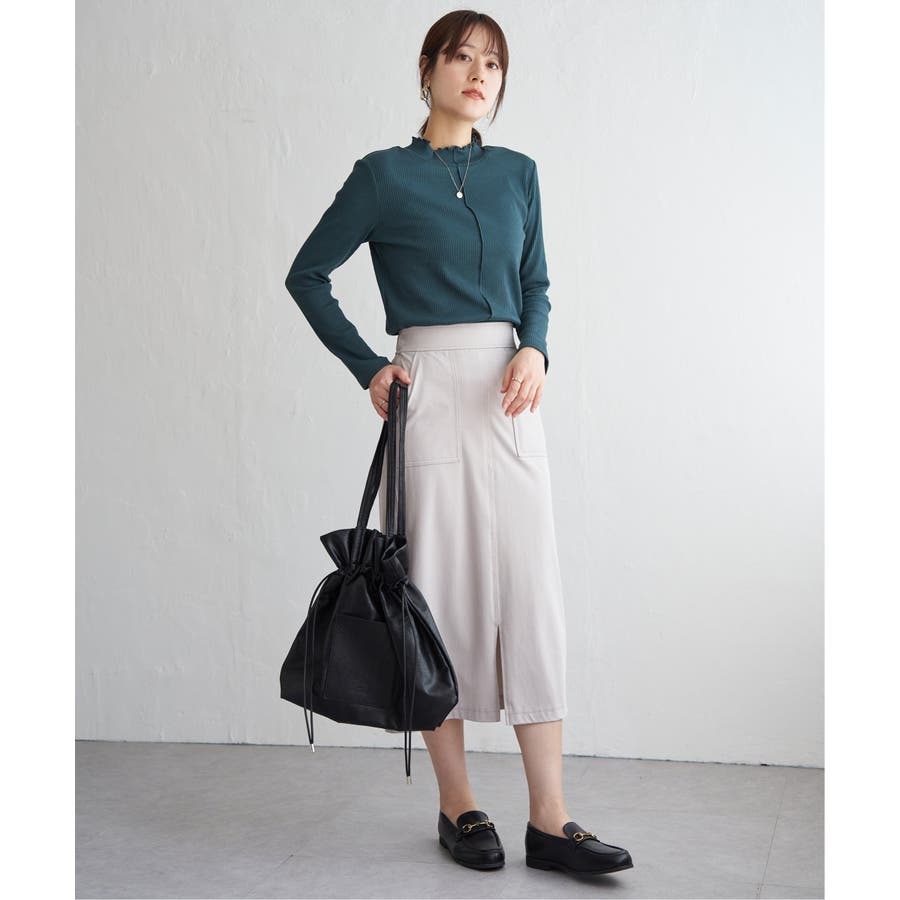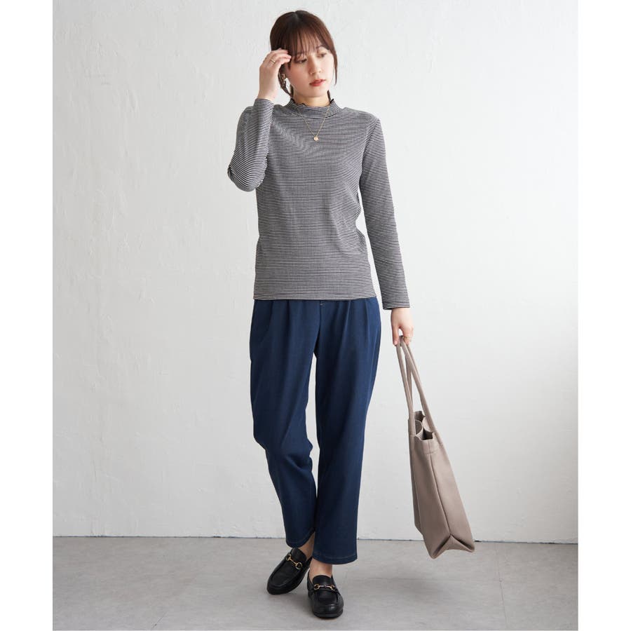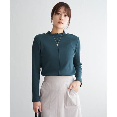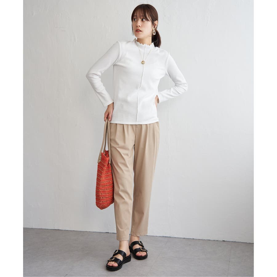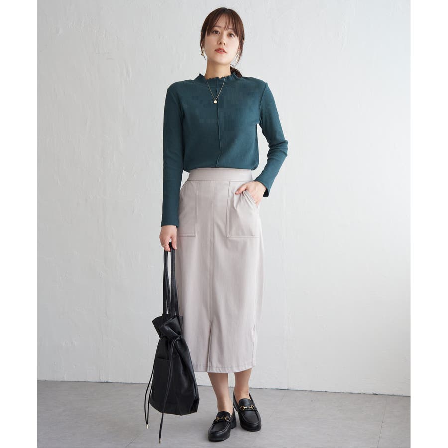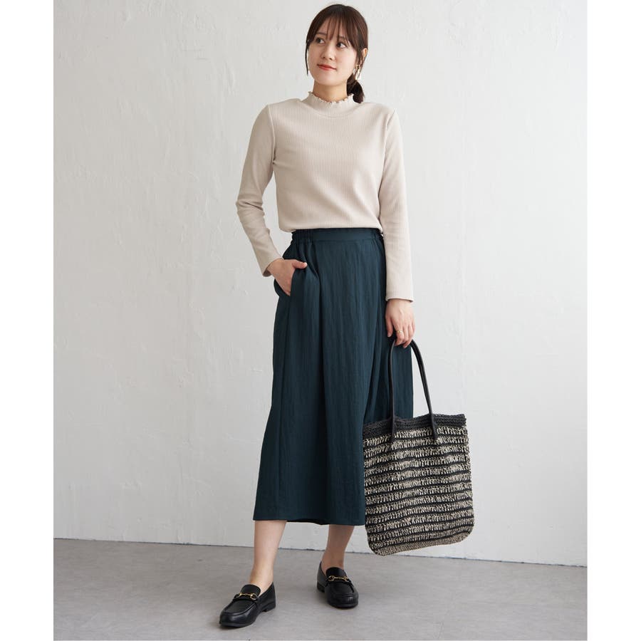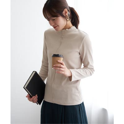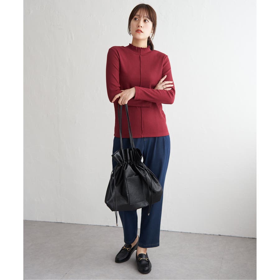 表情のあるテレコ素材を使用した、前後2WAYで楽しめるハイネックプルオーバー。