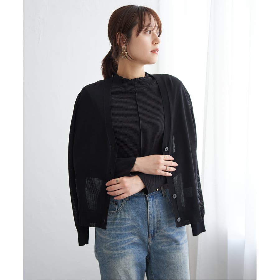 フロント切り替えのアクセントが効いており、一枚でも重ね着でもサマになるデザインです。