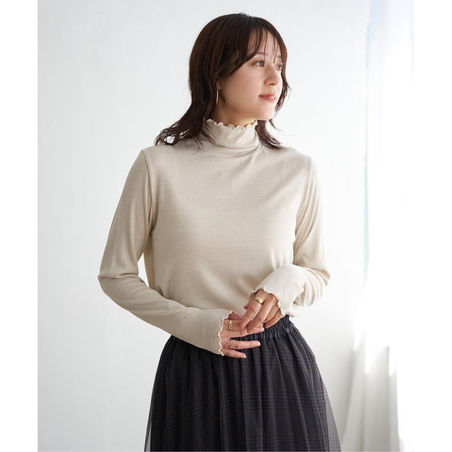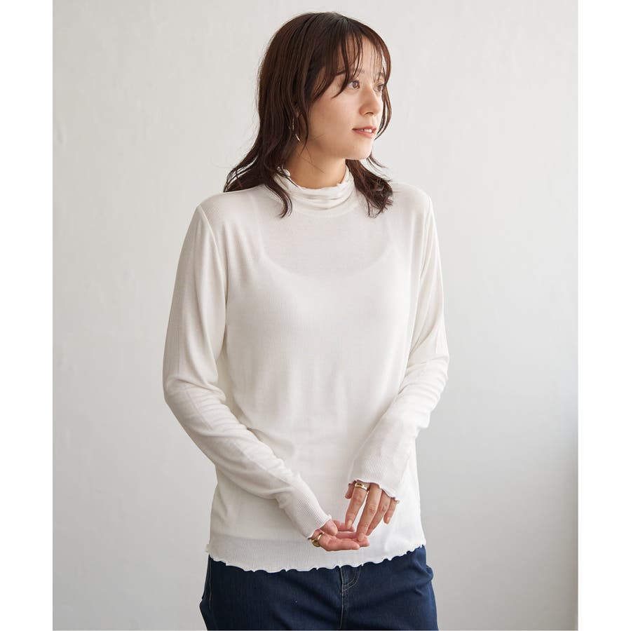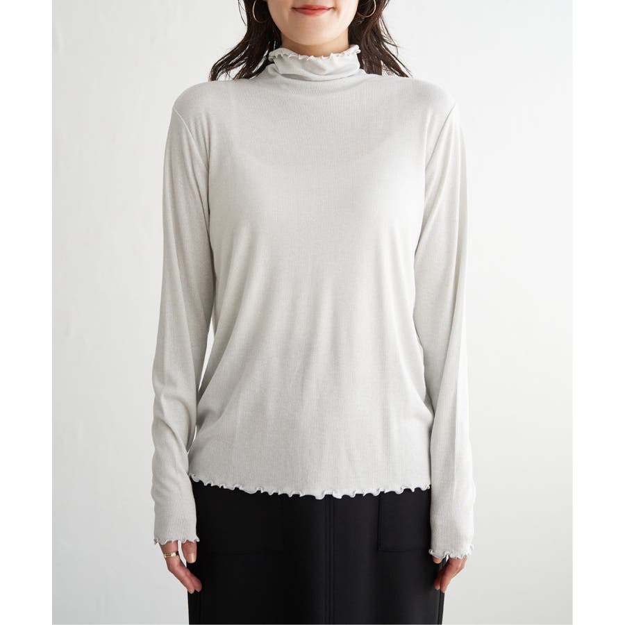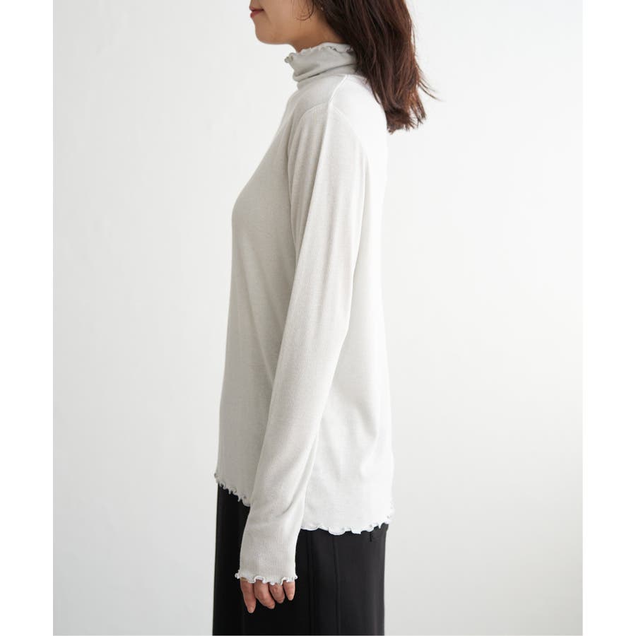 衿・袖・裾にメロウが施してあるハイネックのインナーアイテム。