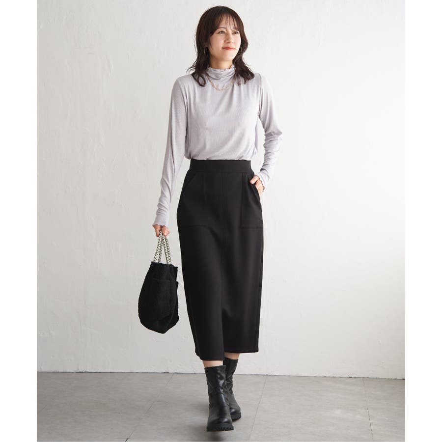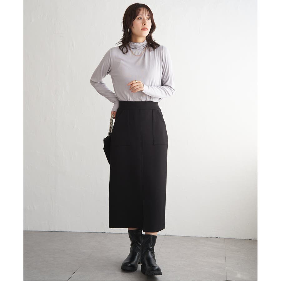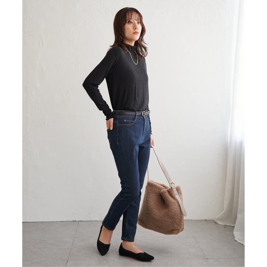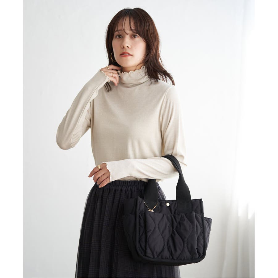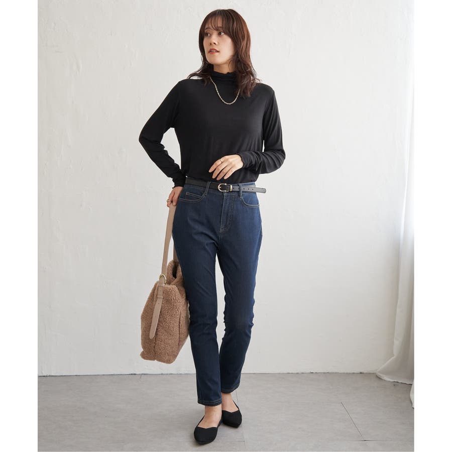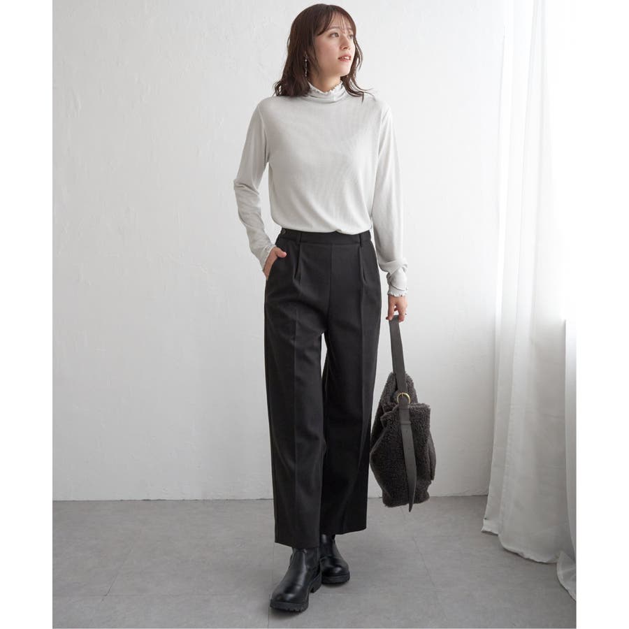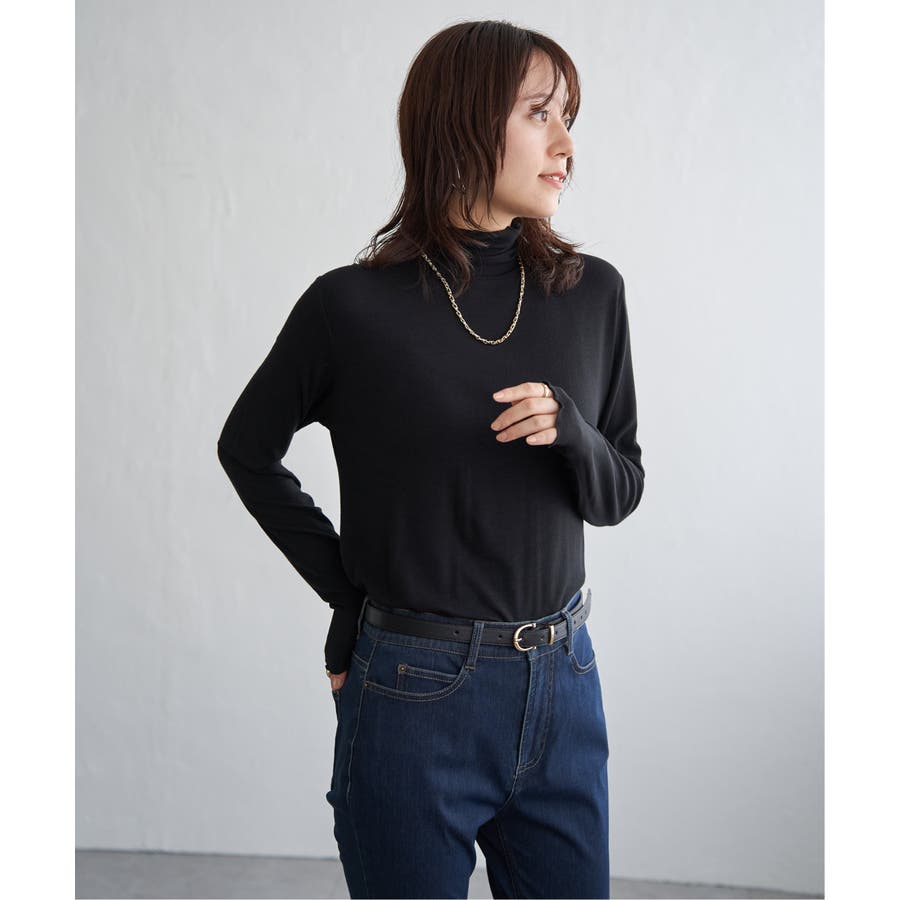 ・インナーとしてハイネックを首元からのぞかせたり、ニットカーデの中にあわせたりと、1枚あると便利