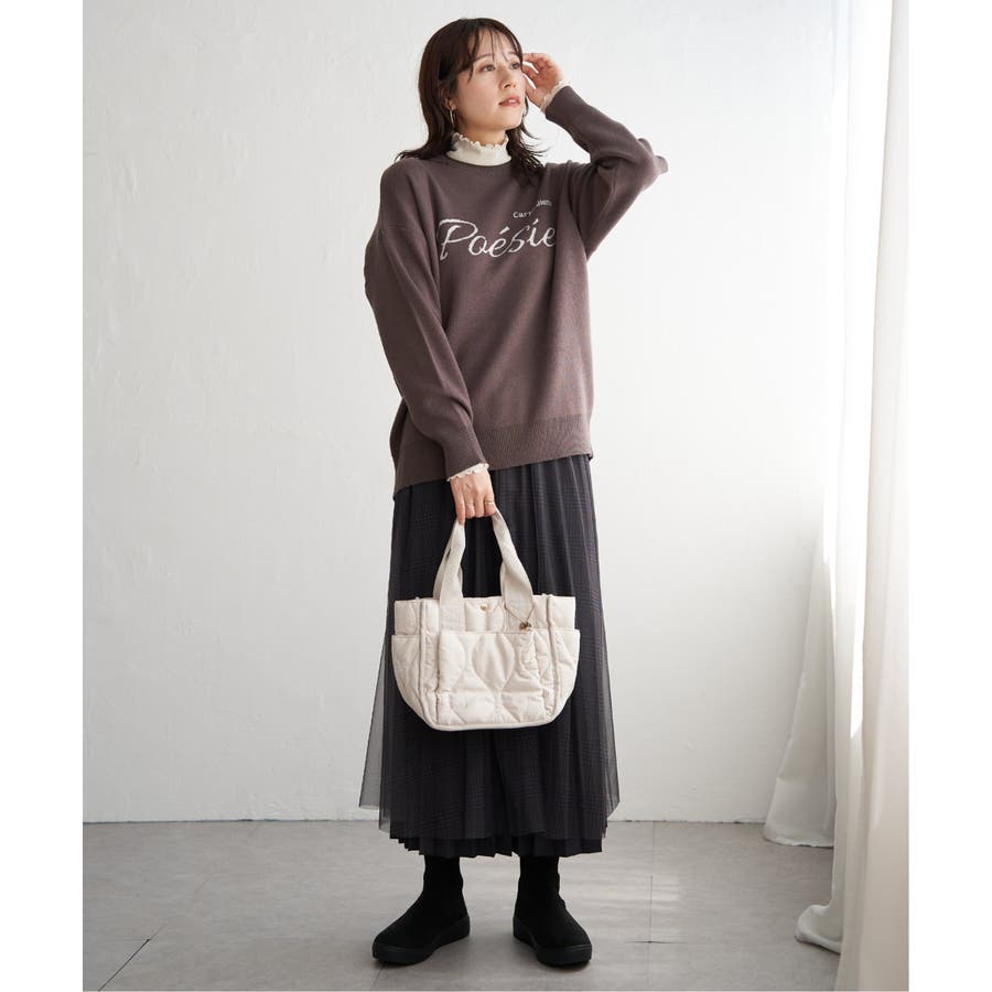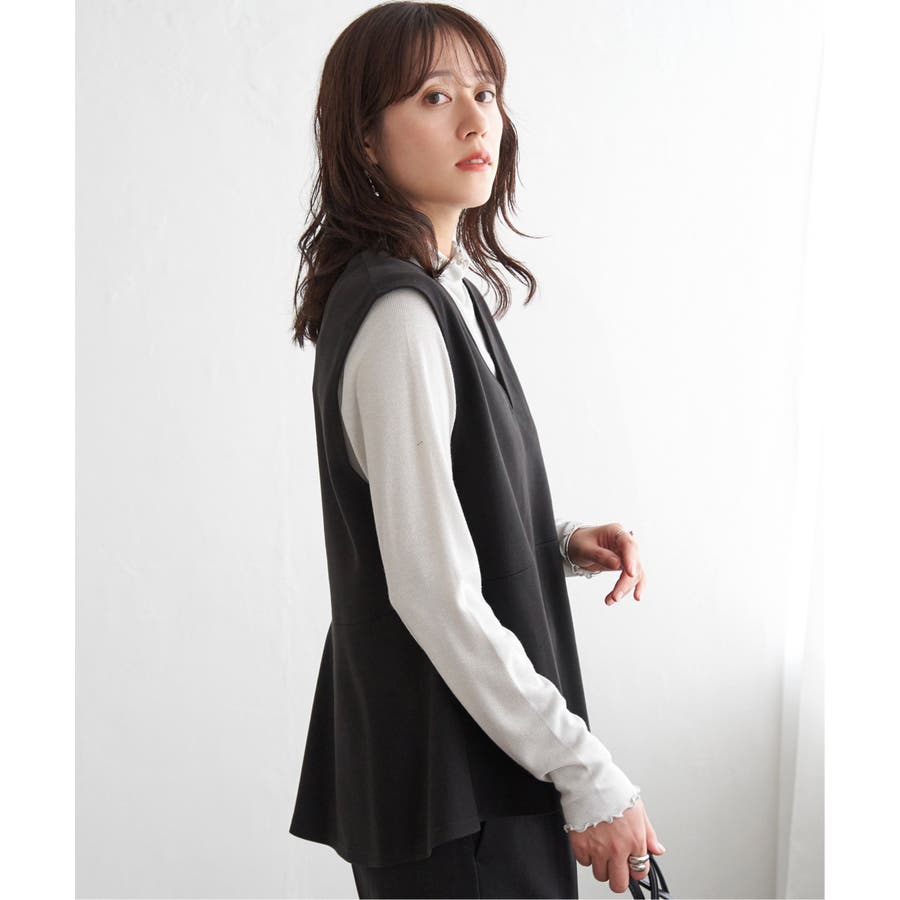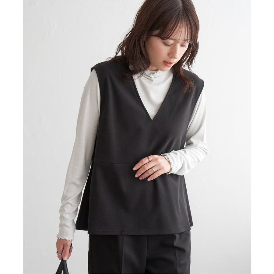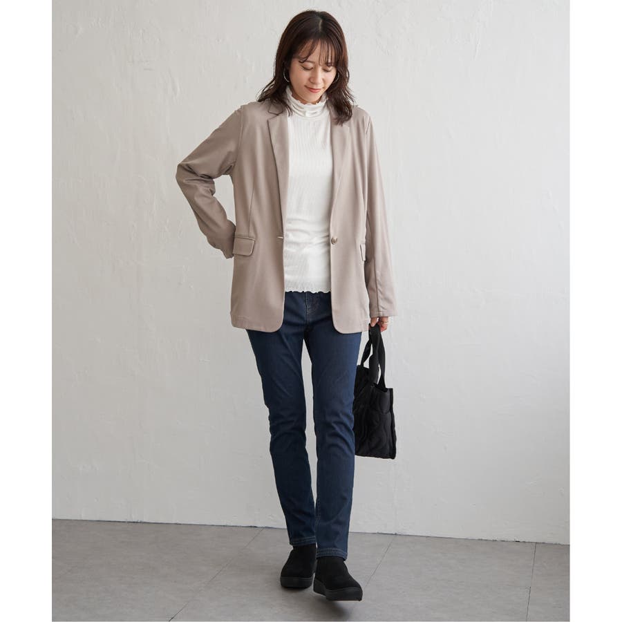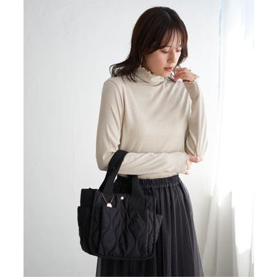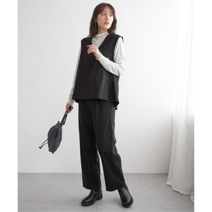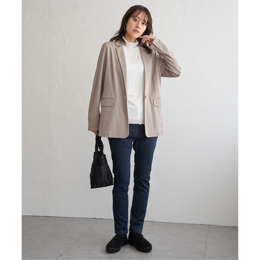 ・インナーとしてハイネックを首元からのぞかせたり、ニットカーデの中にあわせたりと、1枚あると便利