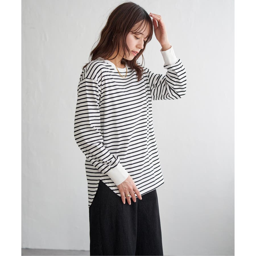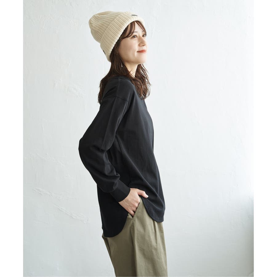 ・ニットやダンボールトップスのインナーとして、レイヤードが決まる裾ラウンドデザイン