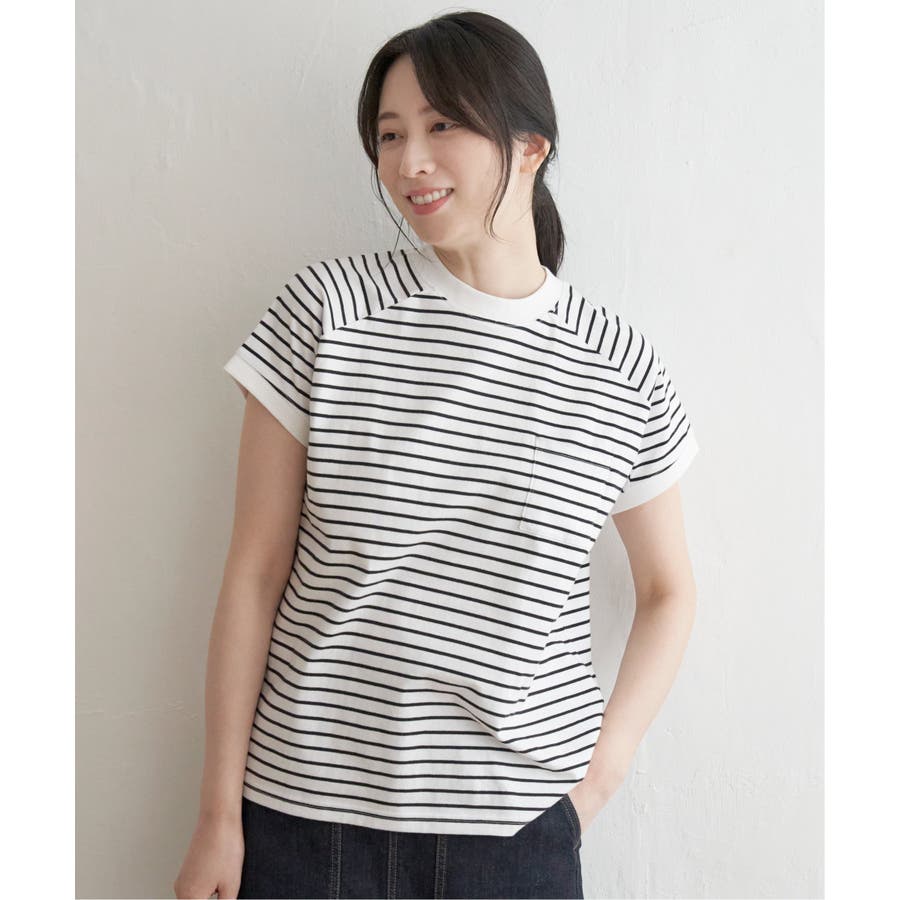 カジュアルなクルーネックに、夏らしいフレンチ袖がポイントのTシャツです。