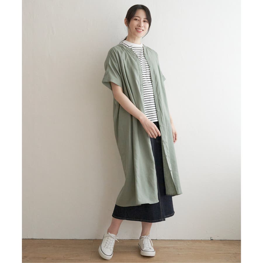 つまり気味のネックがオシャレ感のある一枚です。