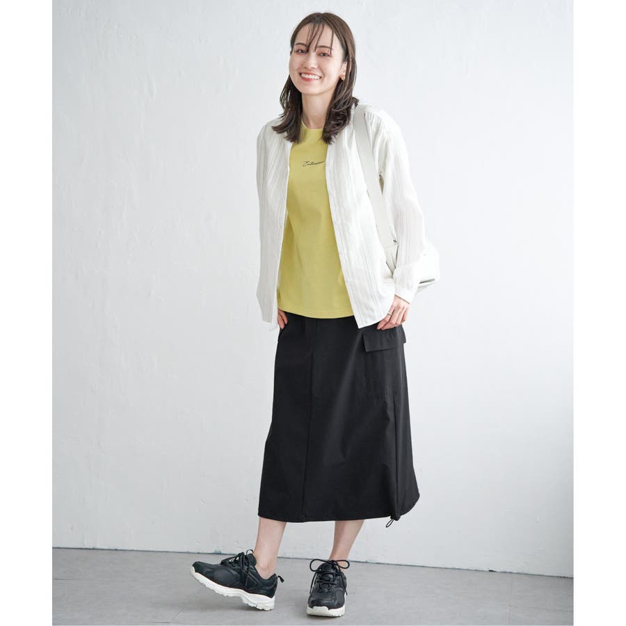 シンプルなシルエットで着こなしやすく、デニムやスカートとも相性抜群。