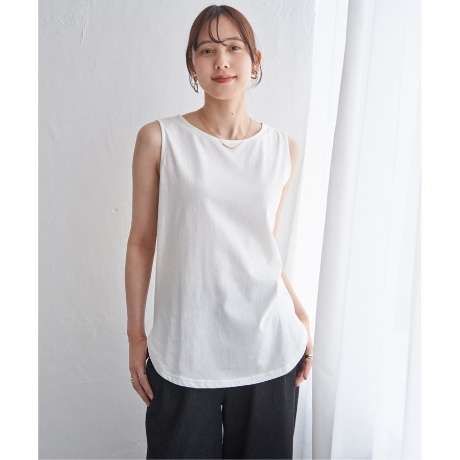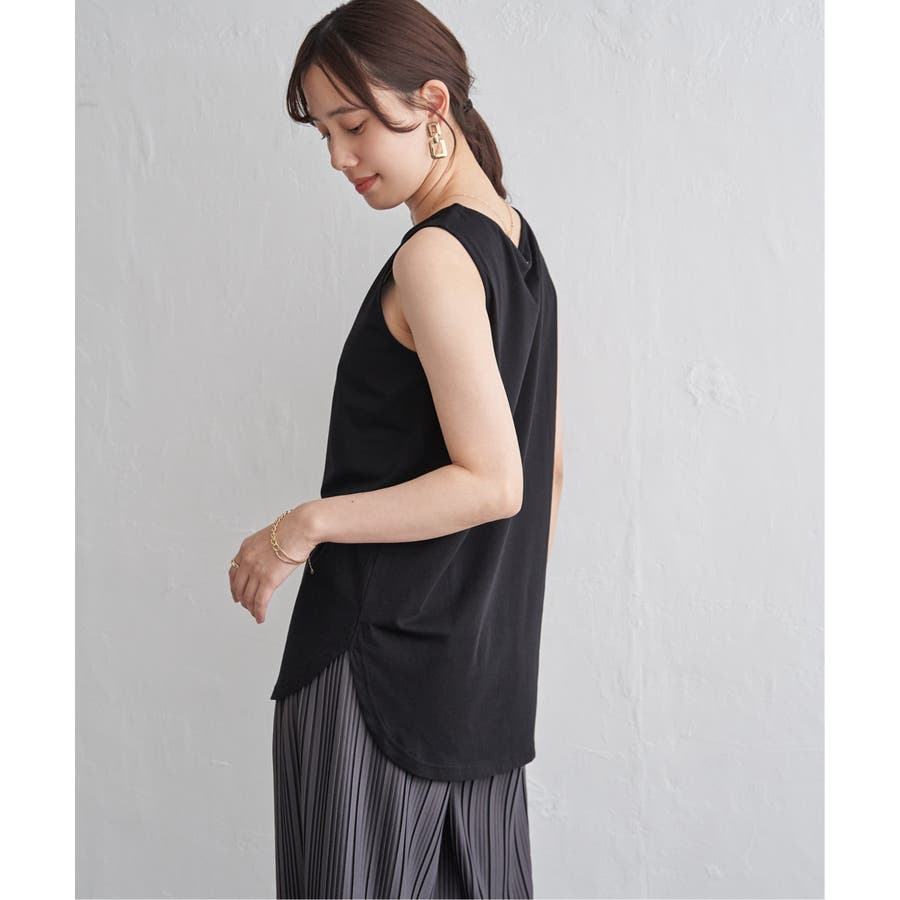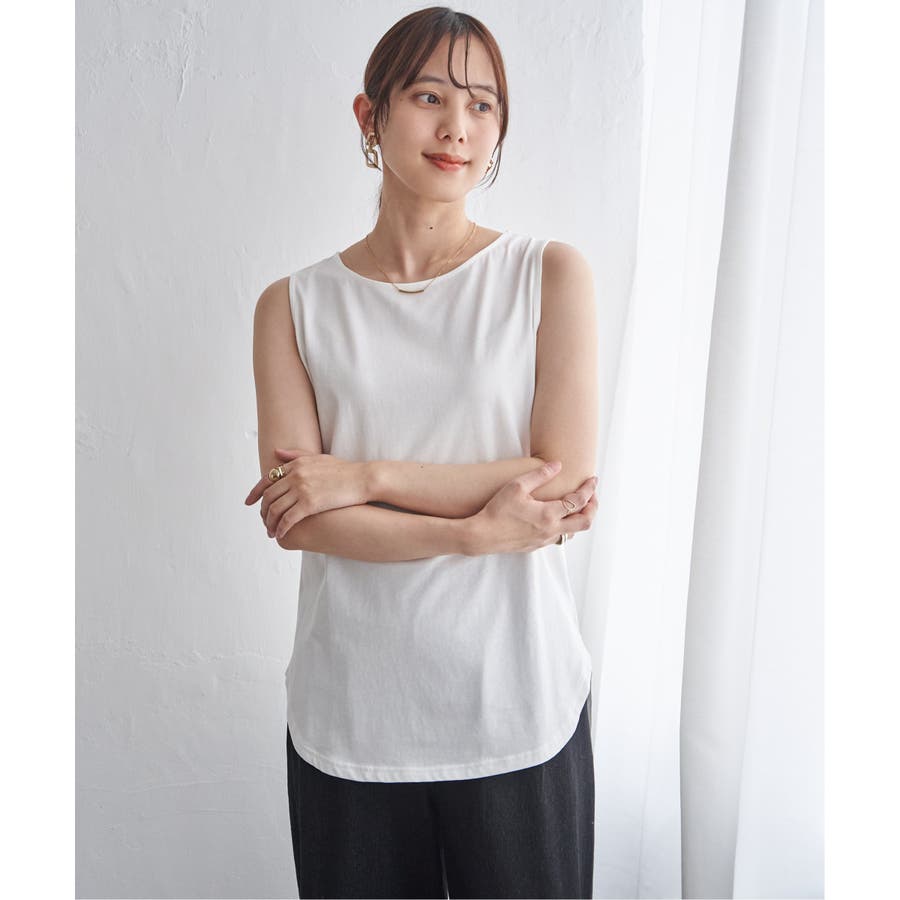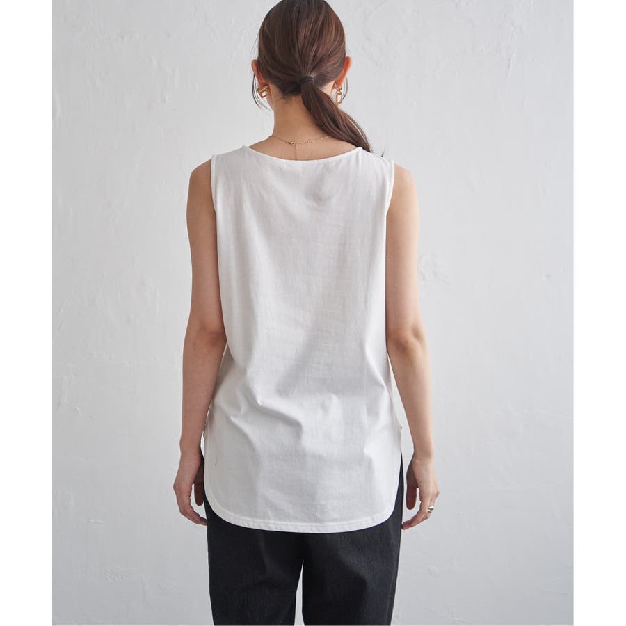 ノースリーブ型の裾ラウンドデザインと深めのスリットが、プルオーバーとの重ね着で旬な着こなしを可能にします。