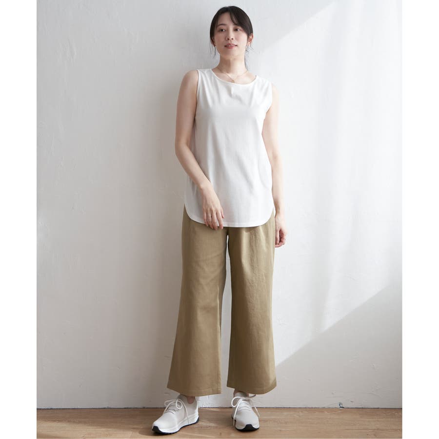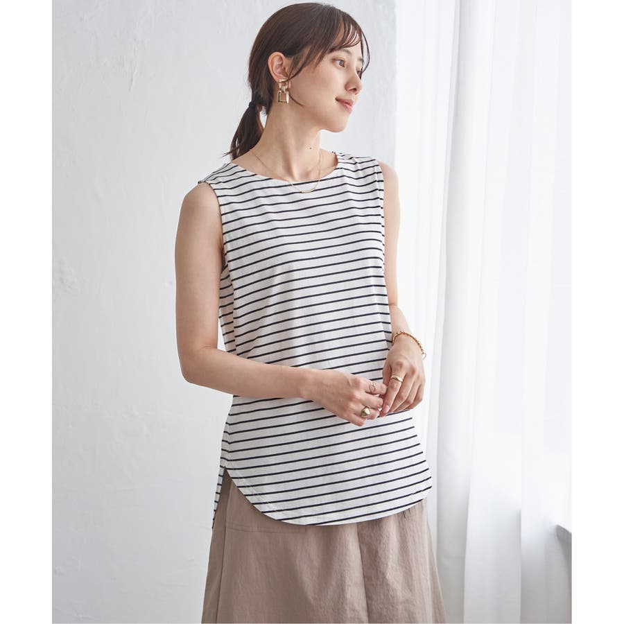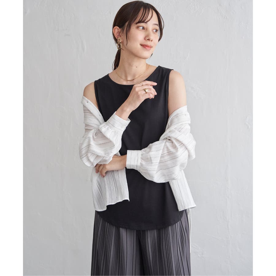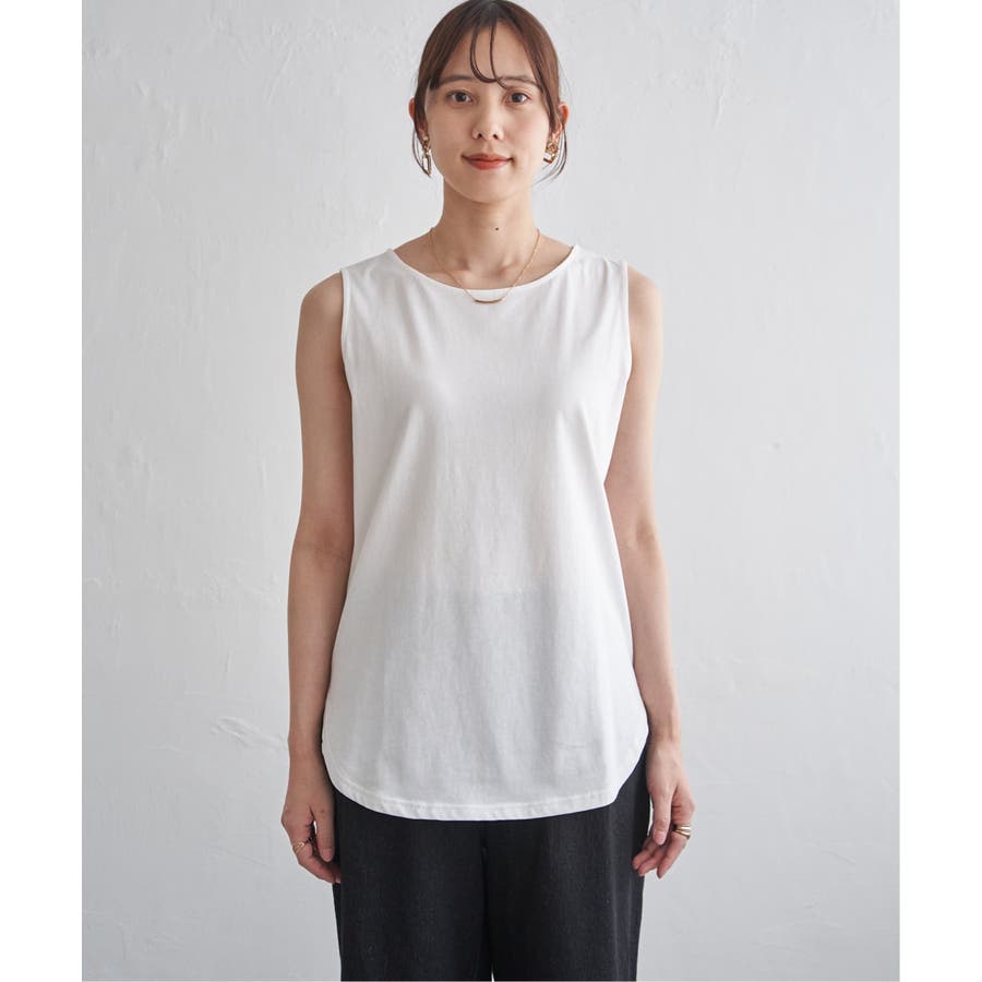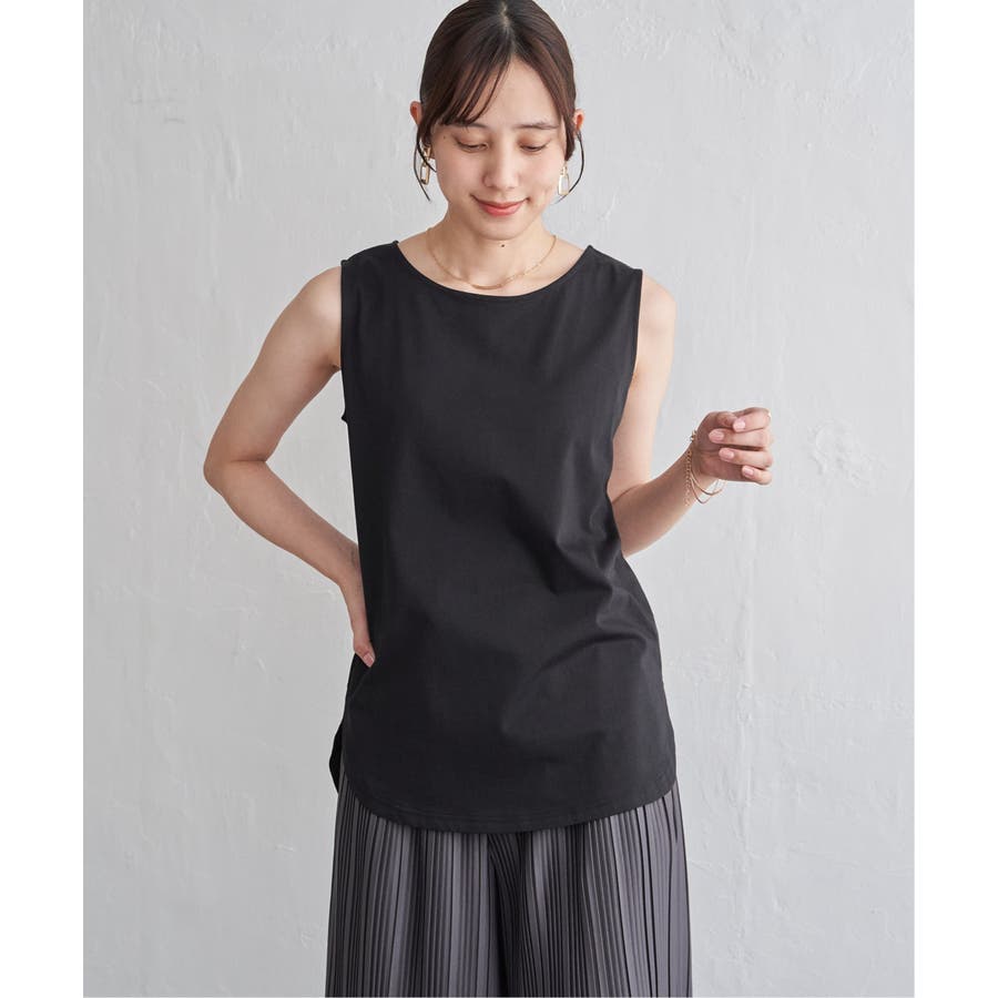 ノースリーブ型の裾ラウンドデザインと深めのスリットが、プルオーバーとの重ね着で旬な着こなしを可能にします。