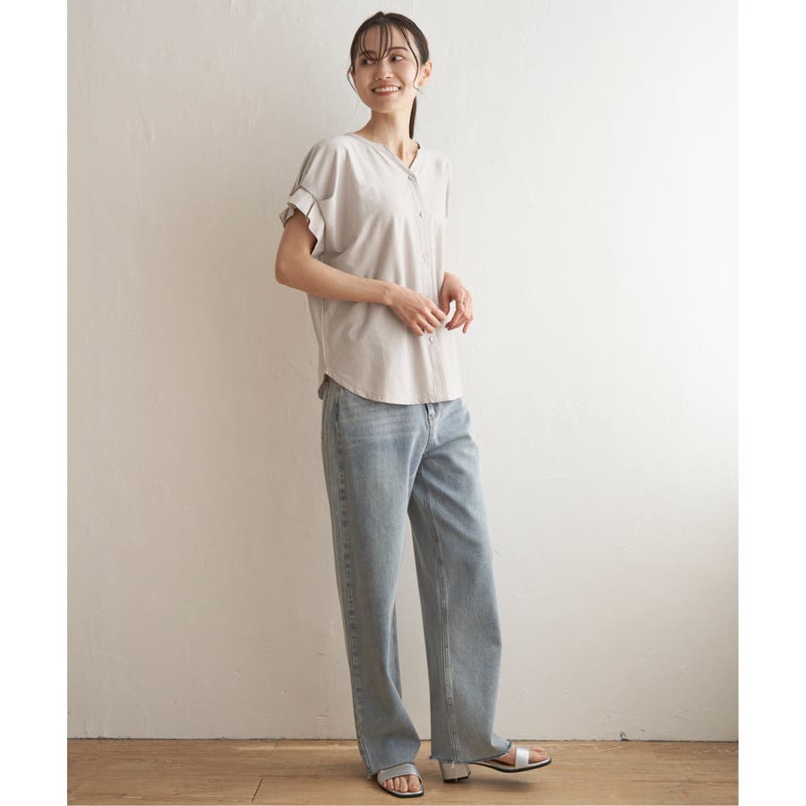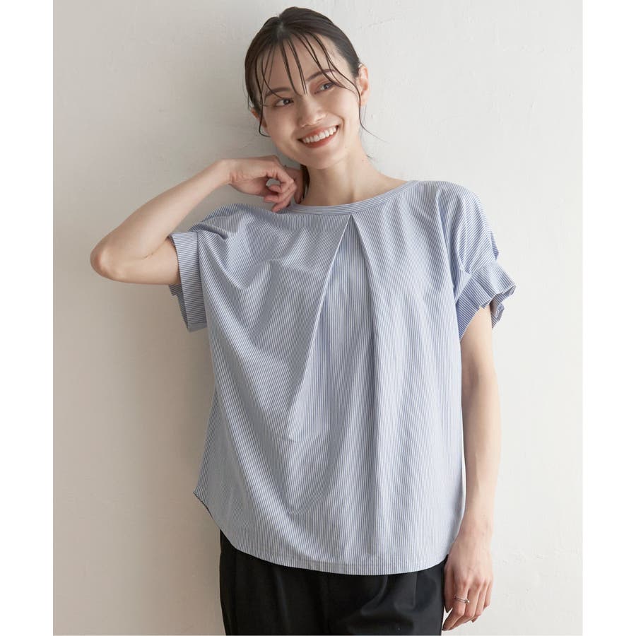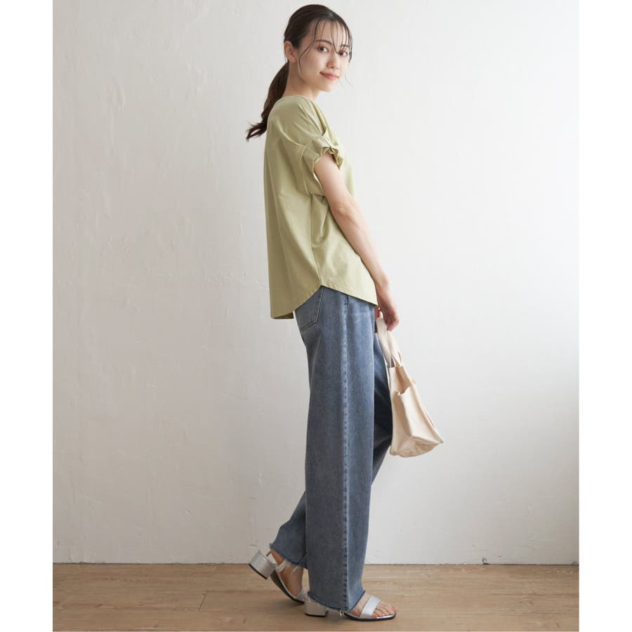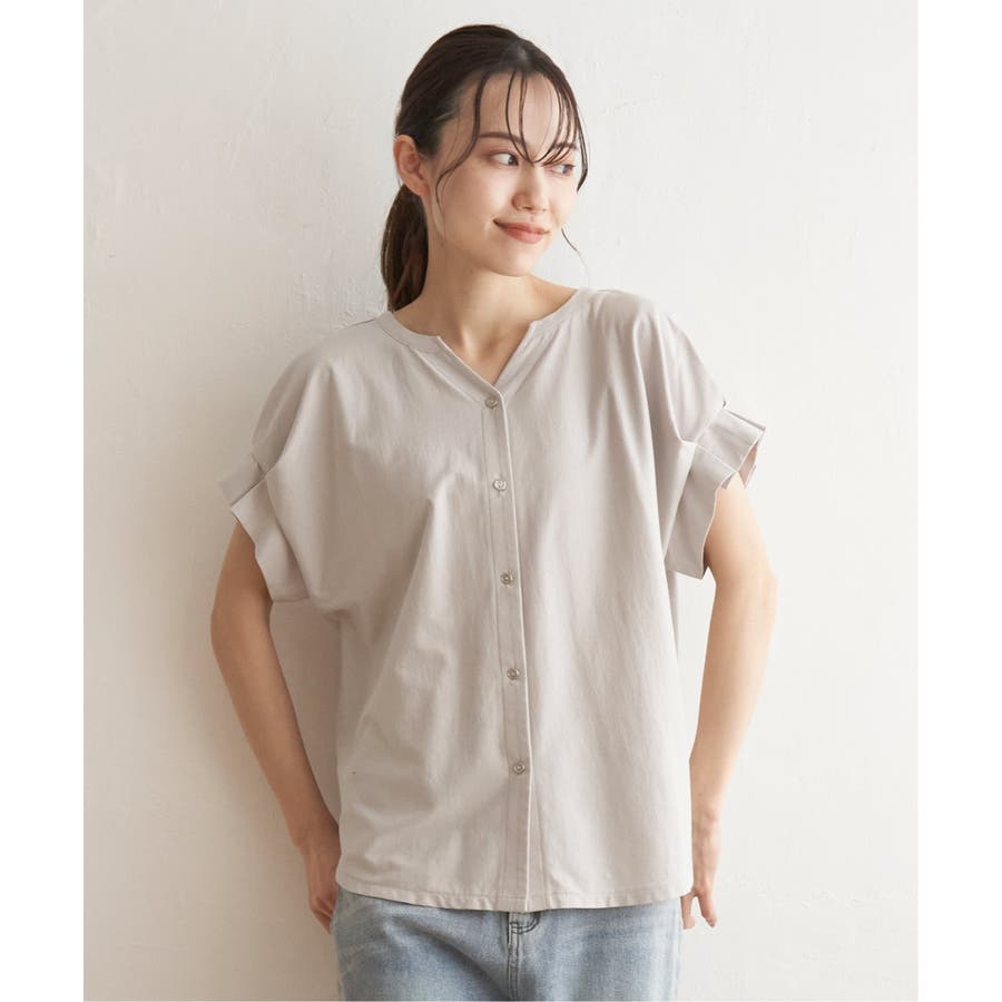 ブラウス見えするきれいな表面感のカットソー。