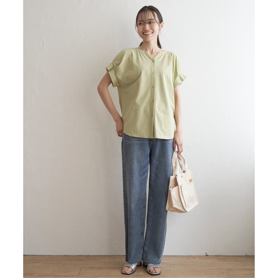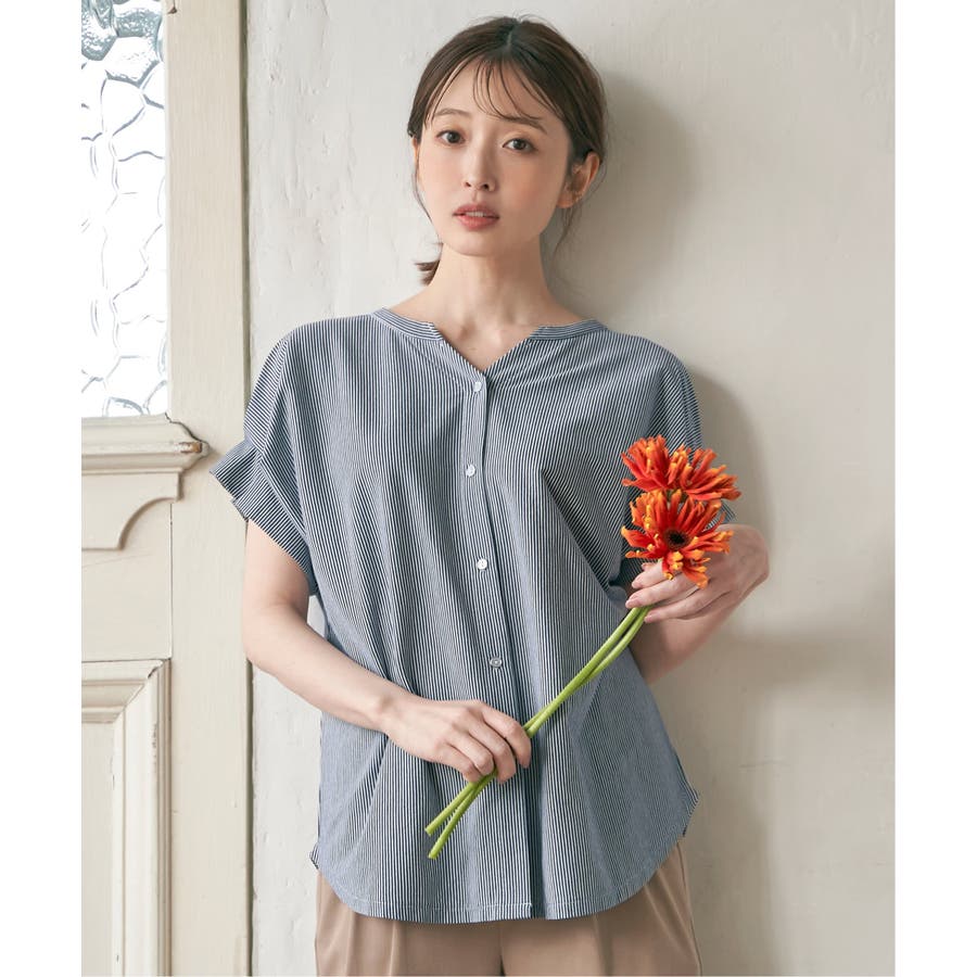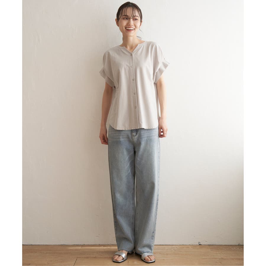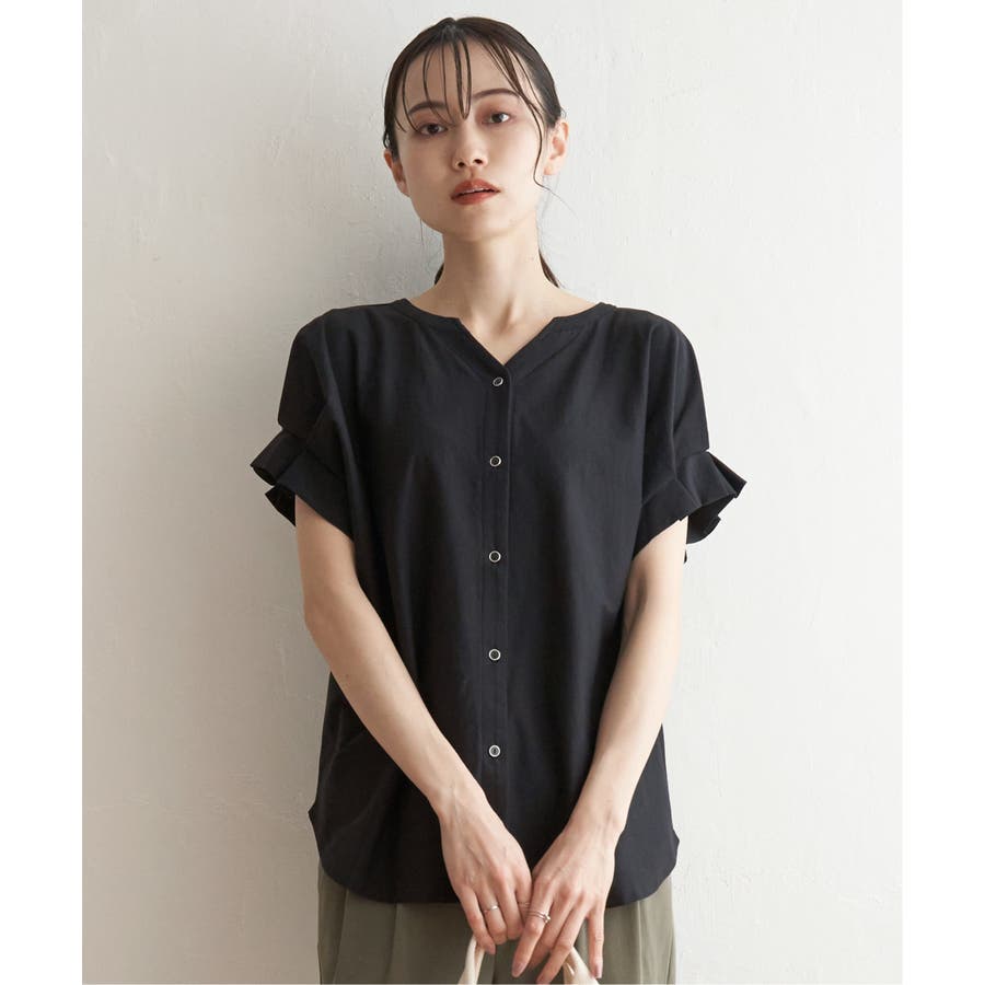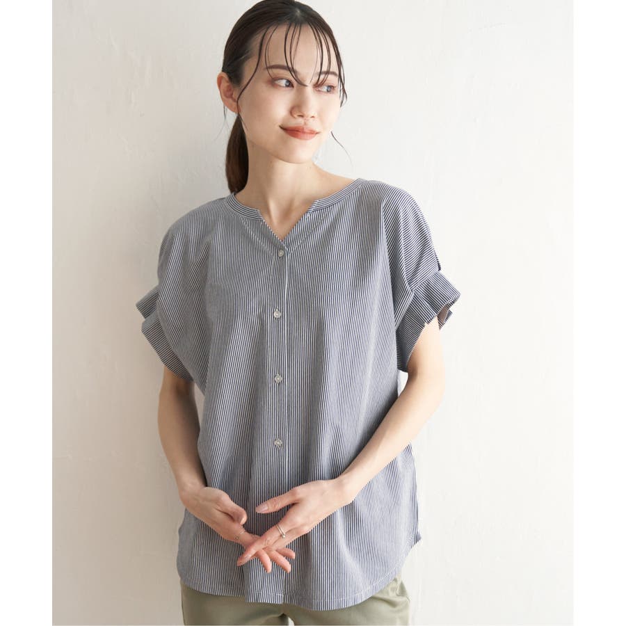 ブラウス見えするきれいな表面感のカットソー。
