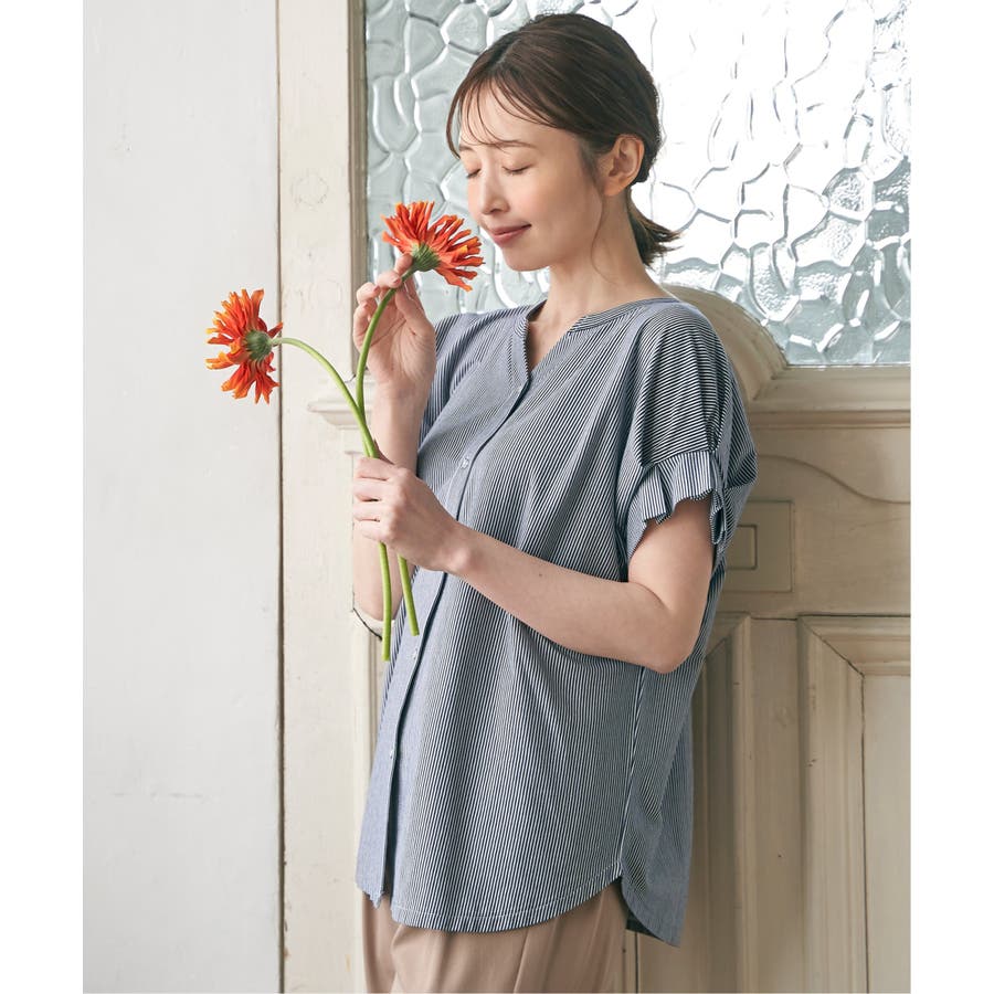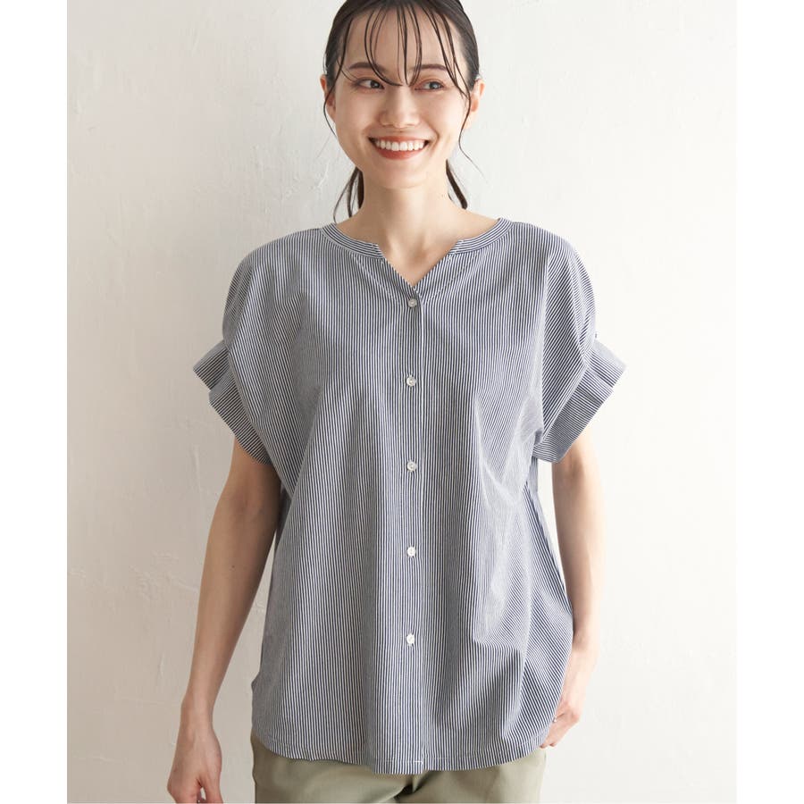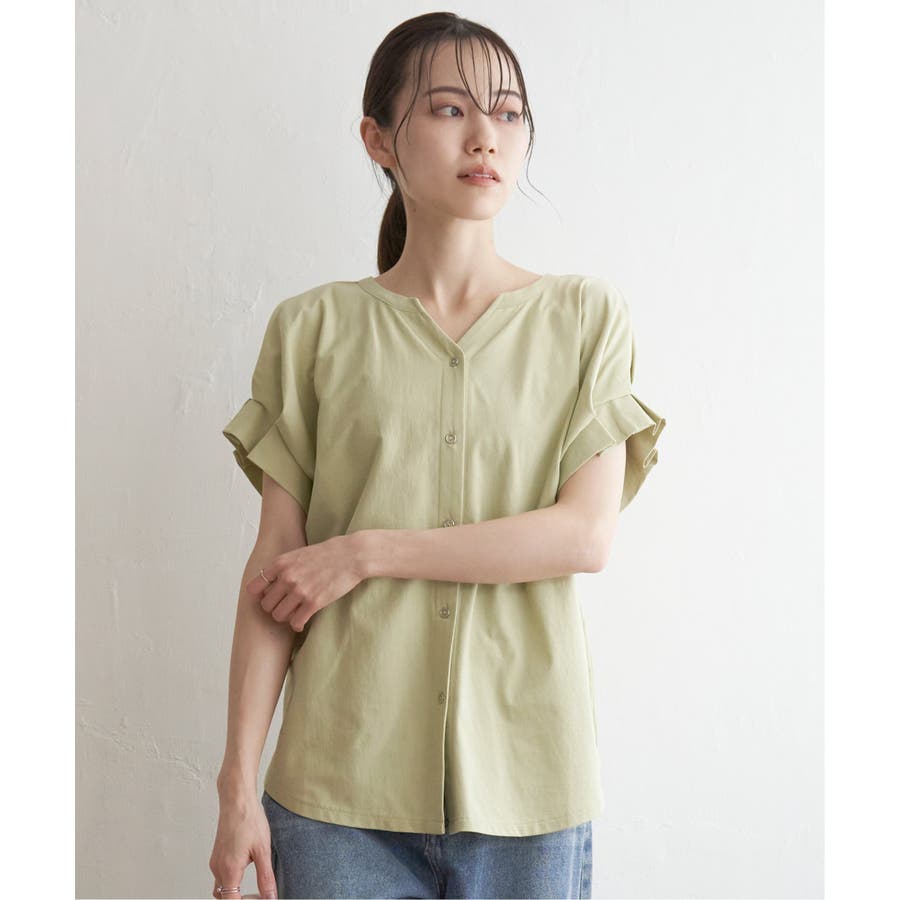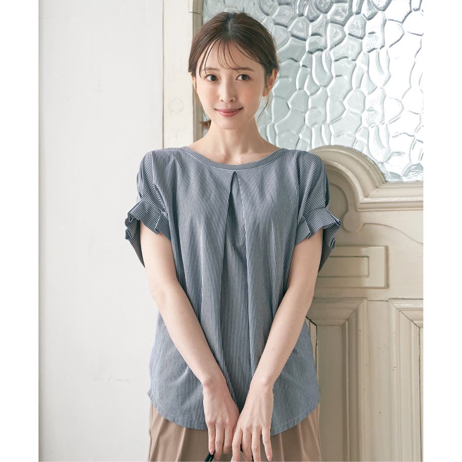 前後2WAYで着られる袖タック入りのブラウス。