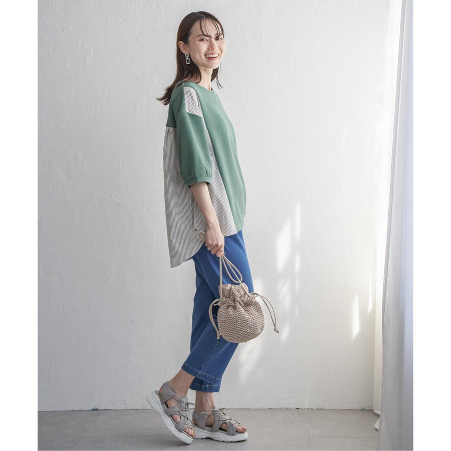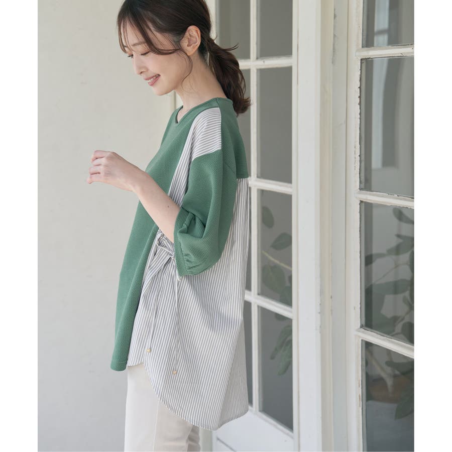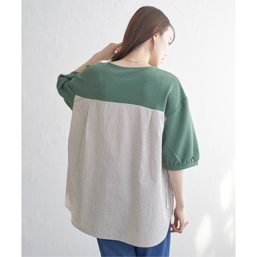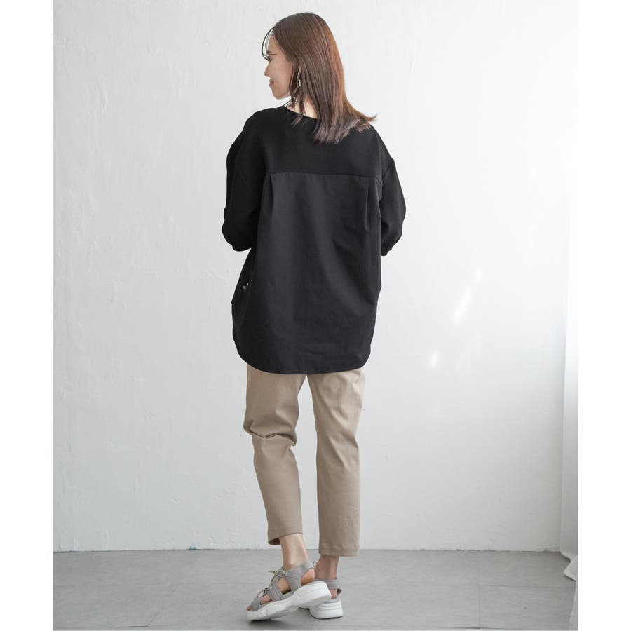 ・後ろ身頃も布帛にすることでブラウス感があり、体離れもいいので涼しい着心地です。