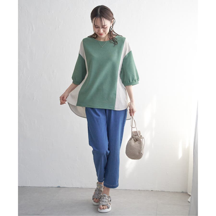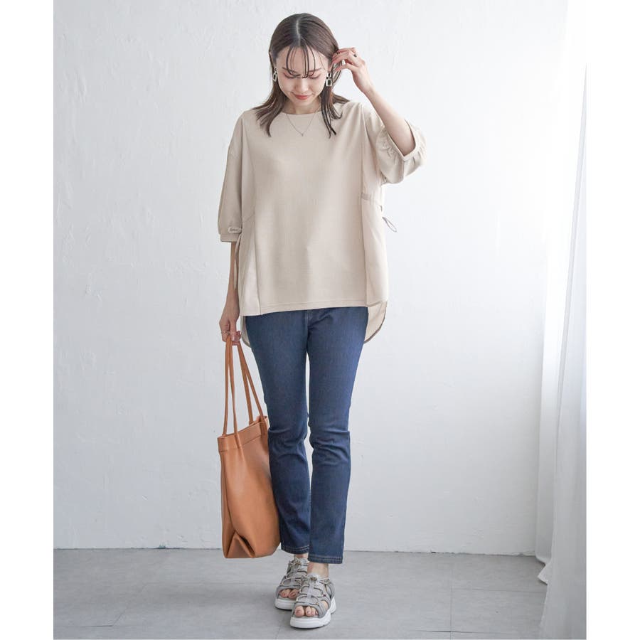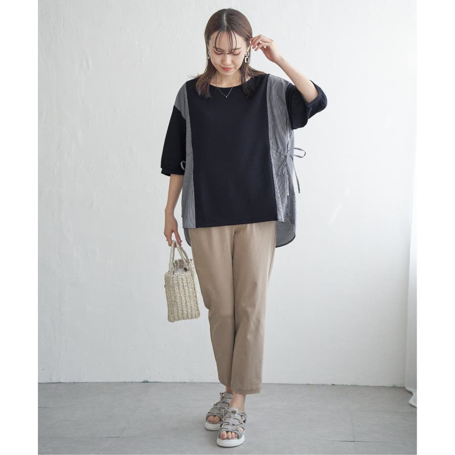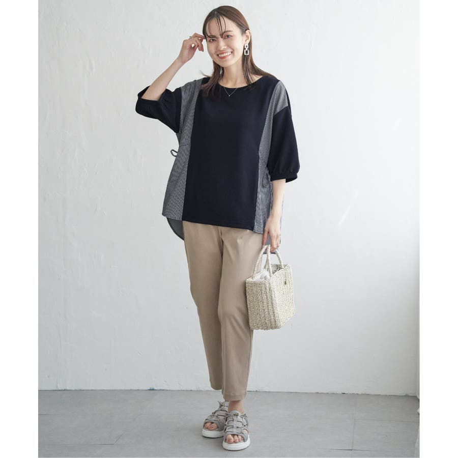 サイドの布帛切り替えがスッキリ見え。