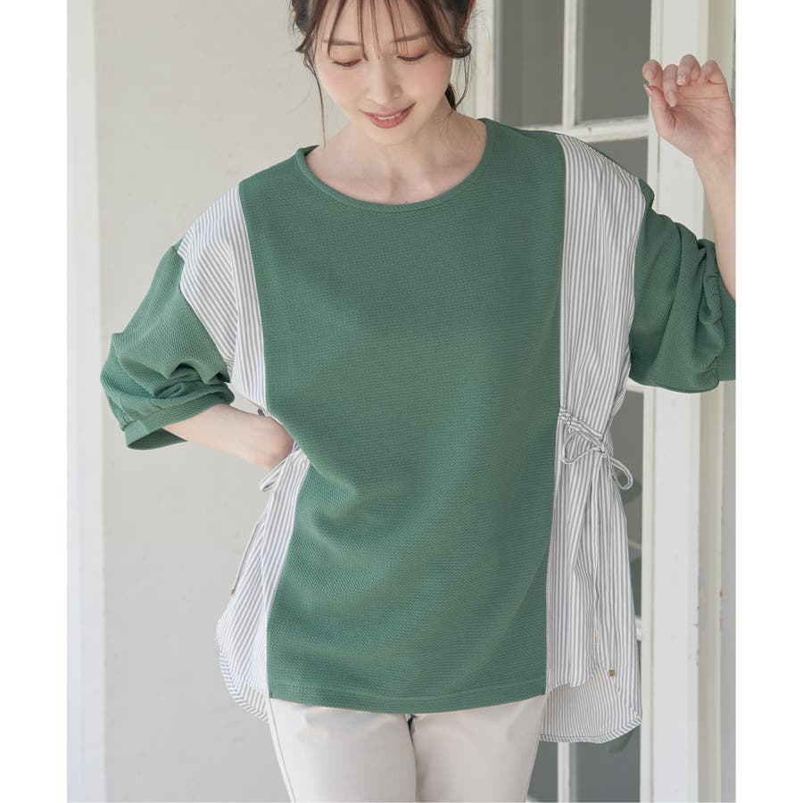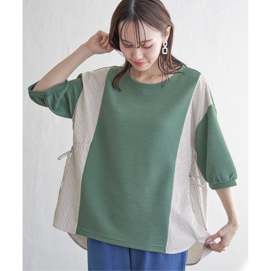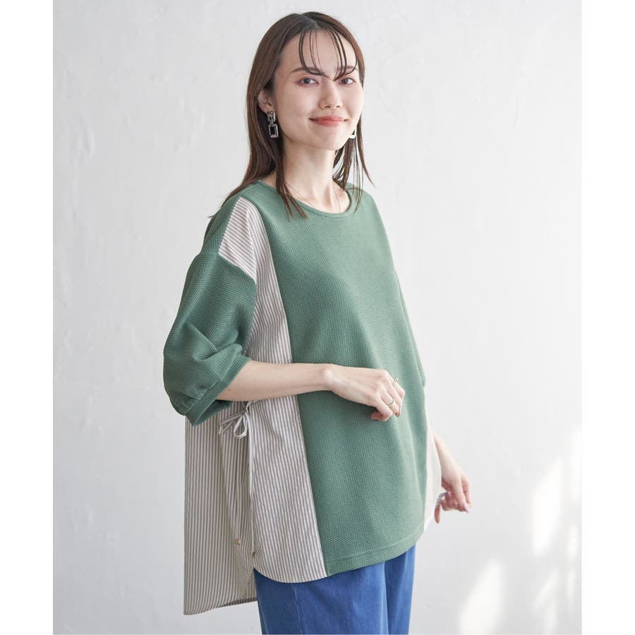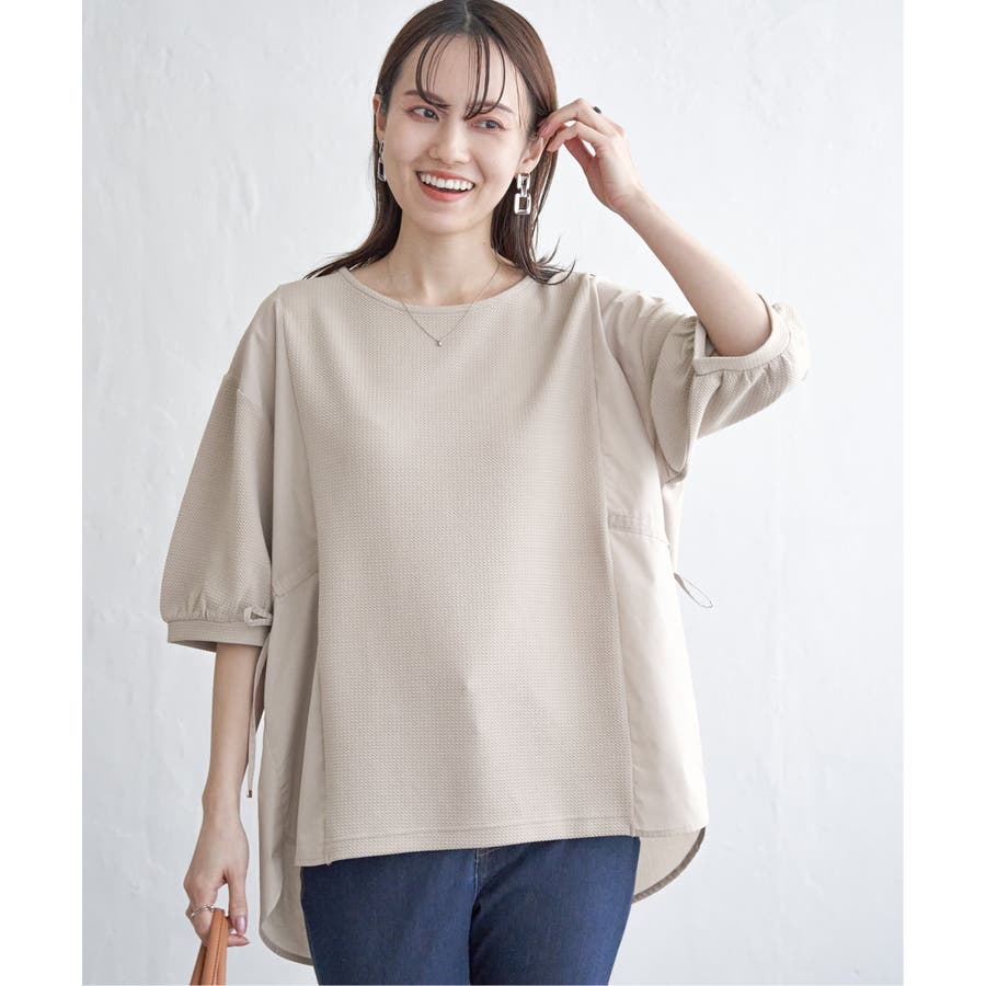 異素材切り替えサイドリボンプルオーバー