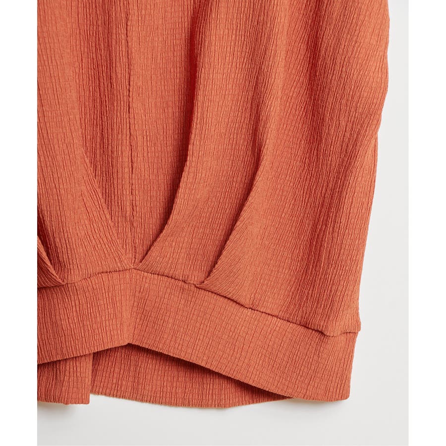 ゆったりとしたドルマンスリーブに加え、裾には大胆なタックを施し、タックインしているような立体感のあるシルエットに仕上げました。