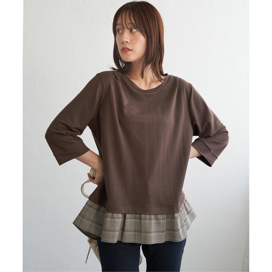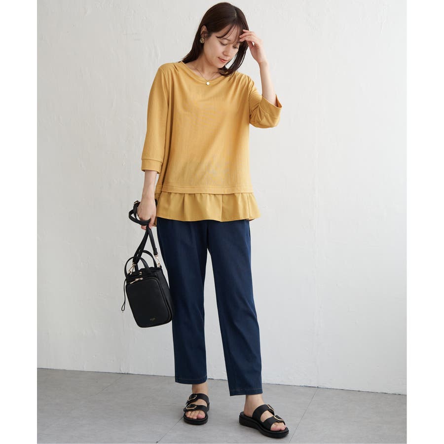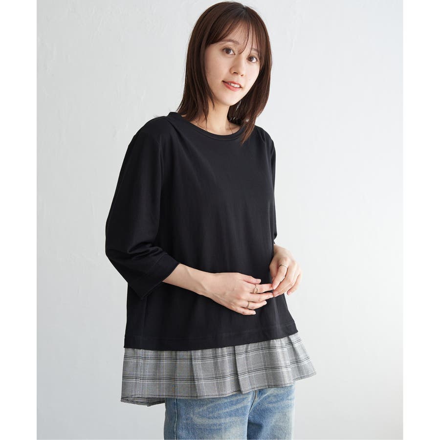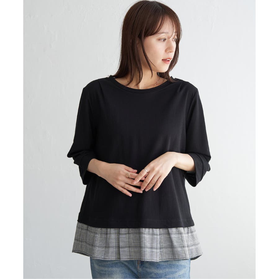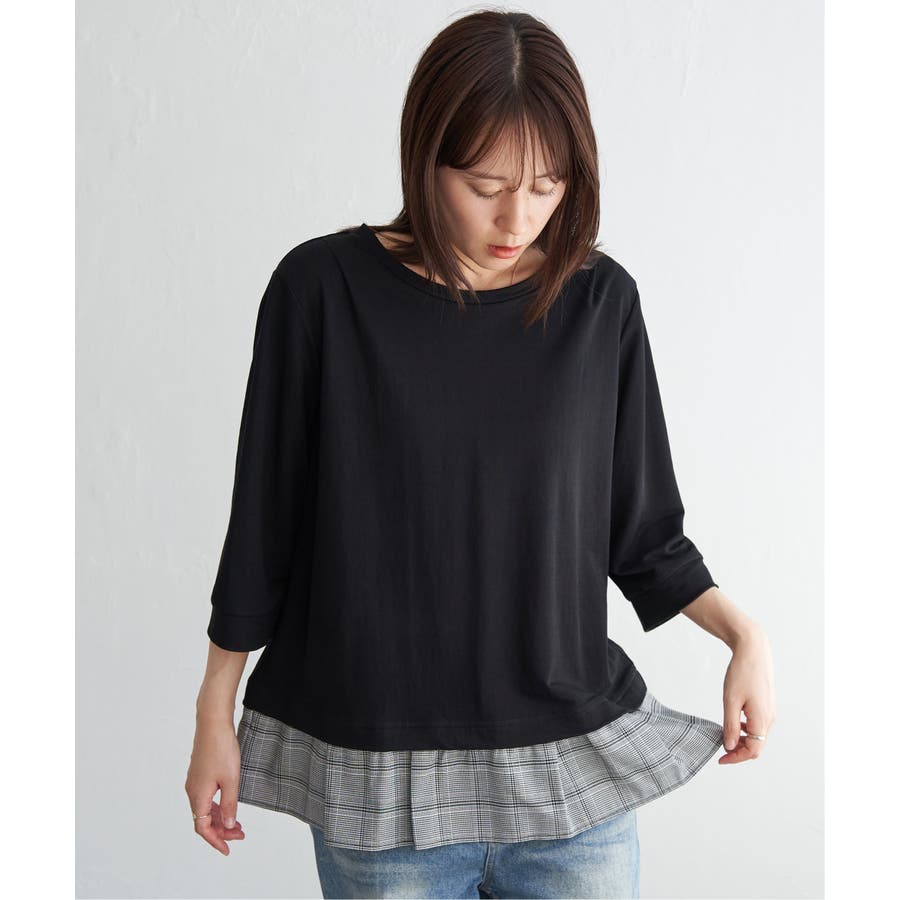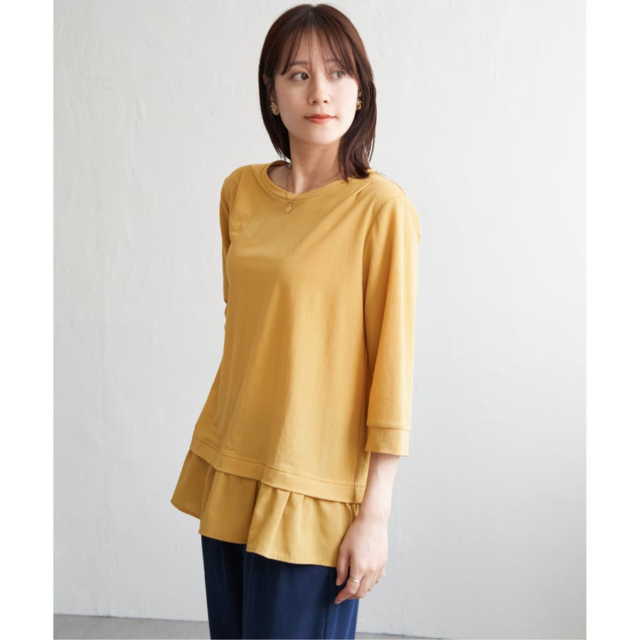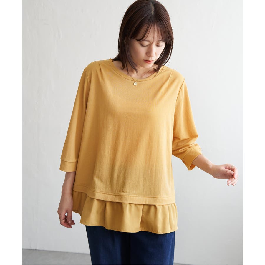 シャツを重ねているように見える裾のフェイクレイヤードが、一枚でコーディネートの主役に。