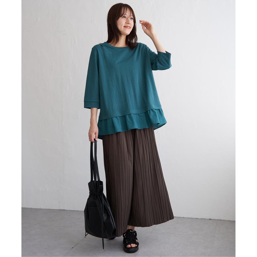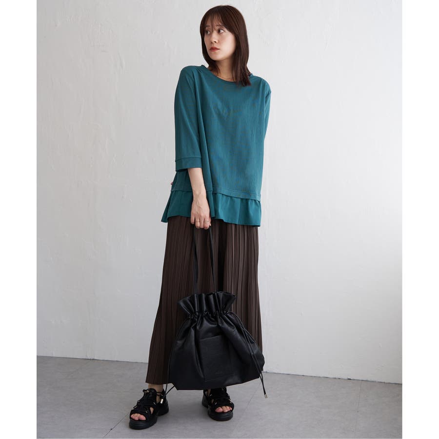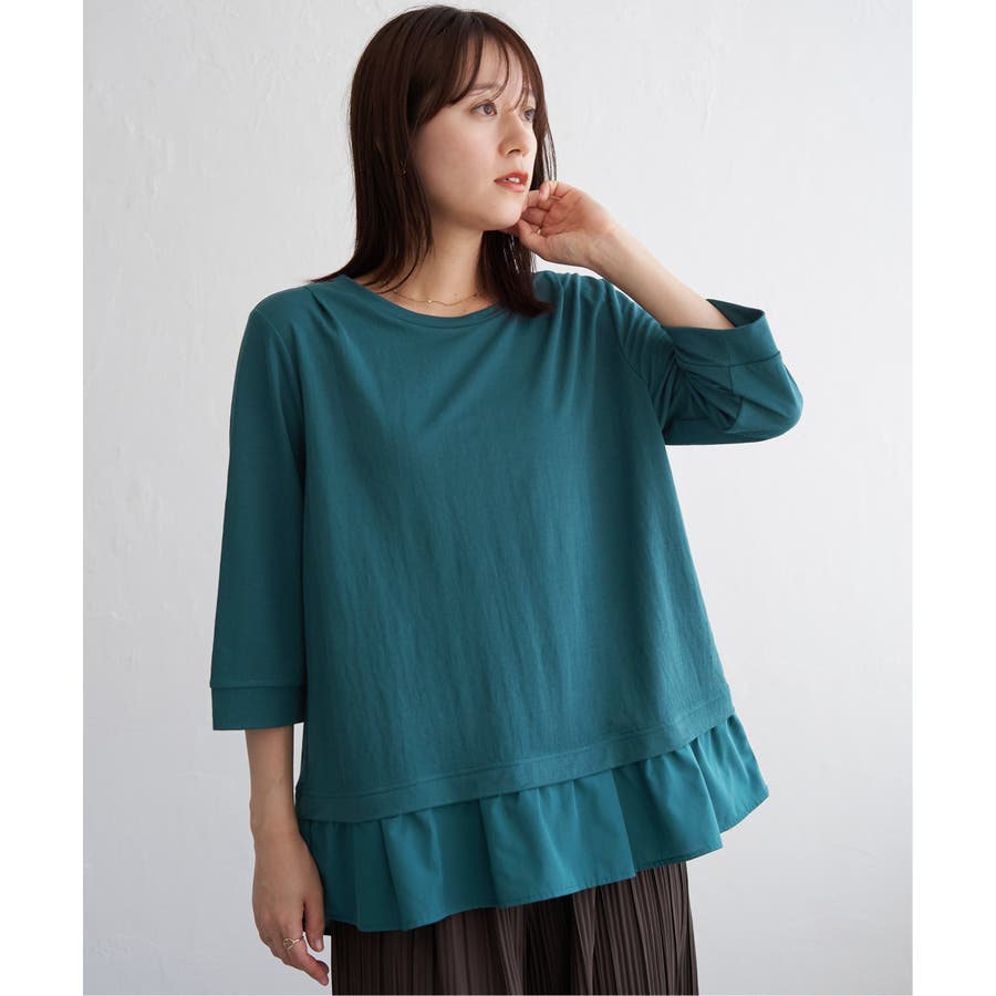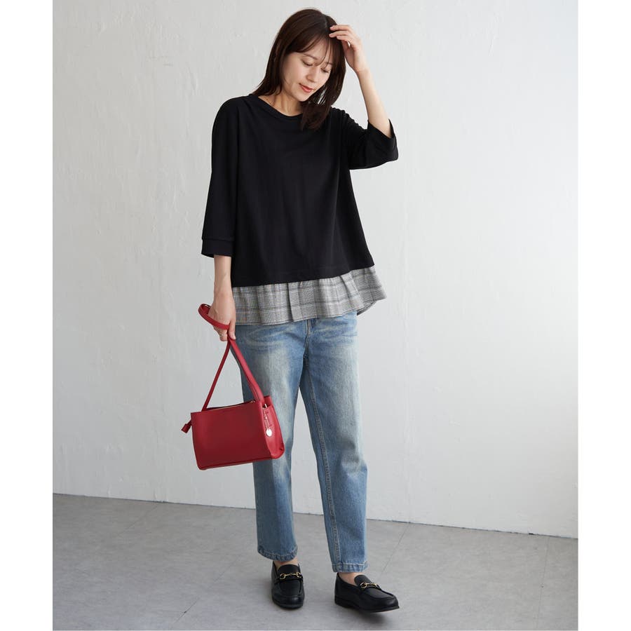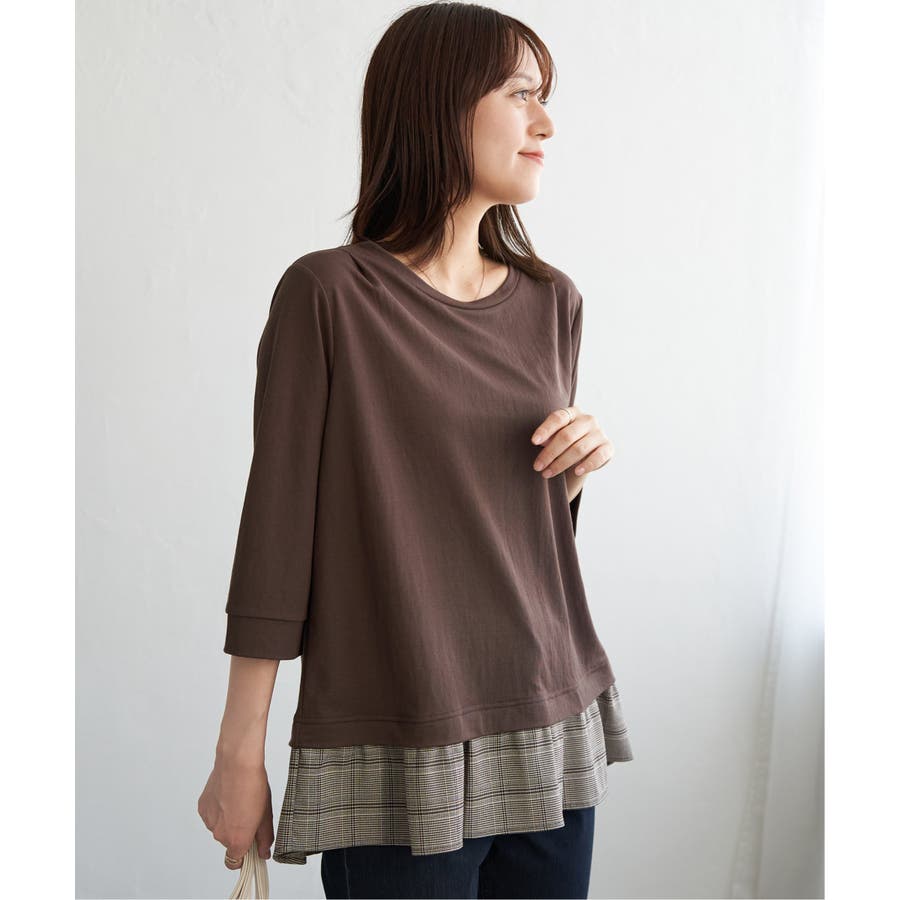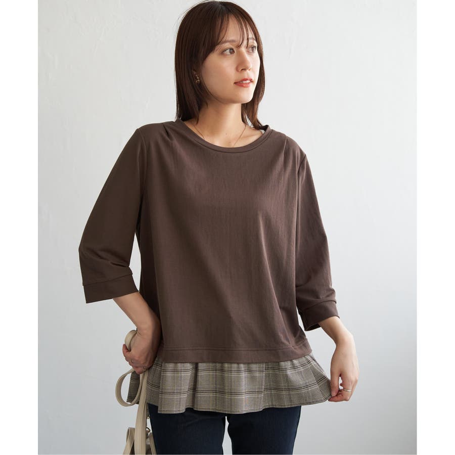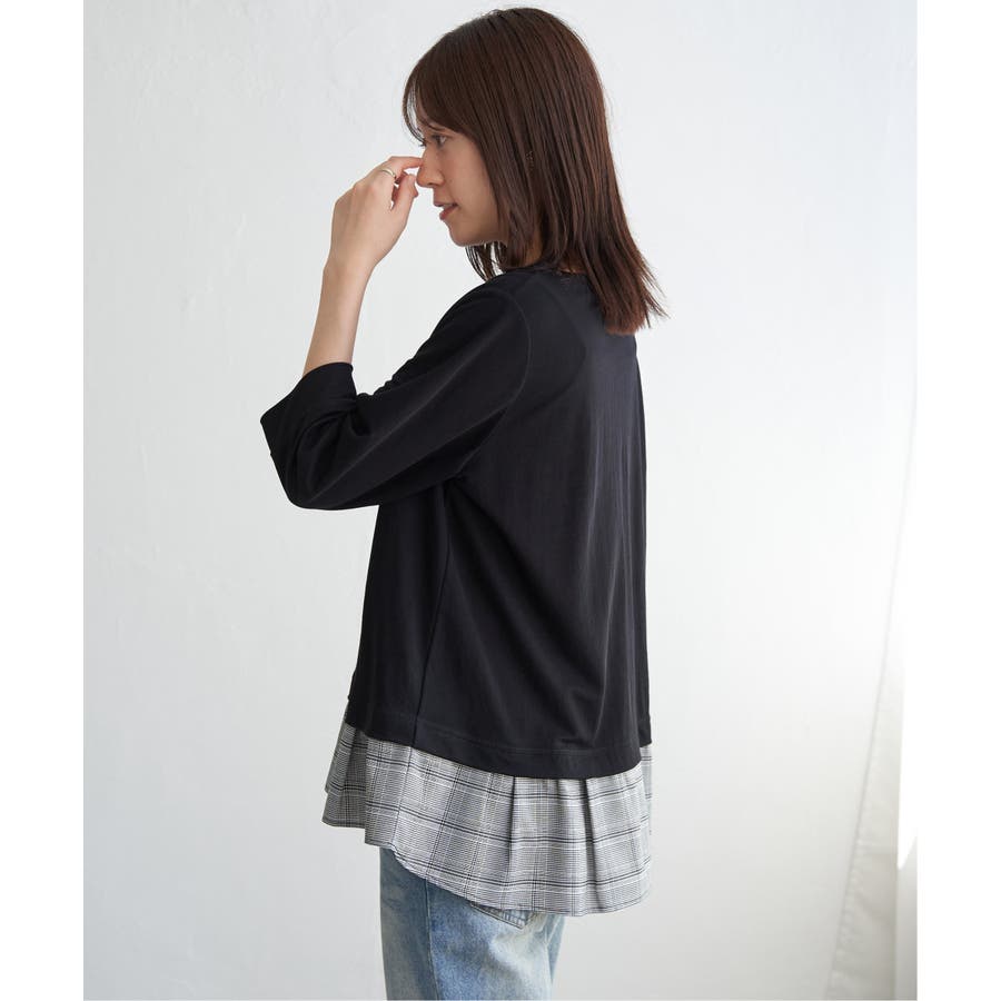 シャツを重ねているように見える裾のフェイクレイヤードが、一枚でコーディネートの主役に。