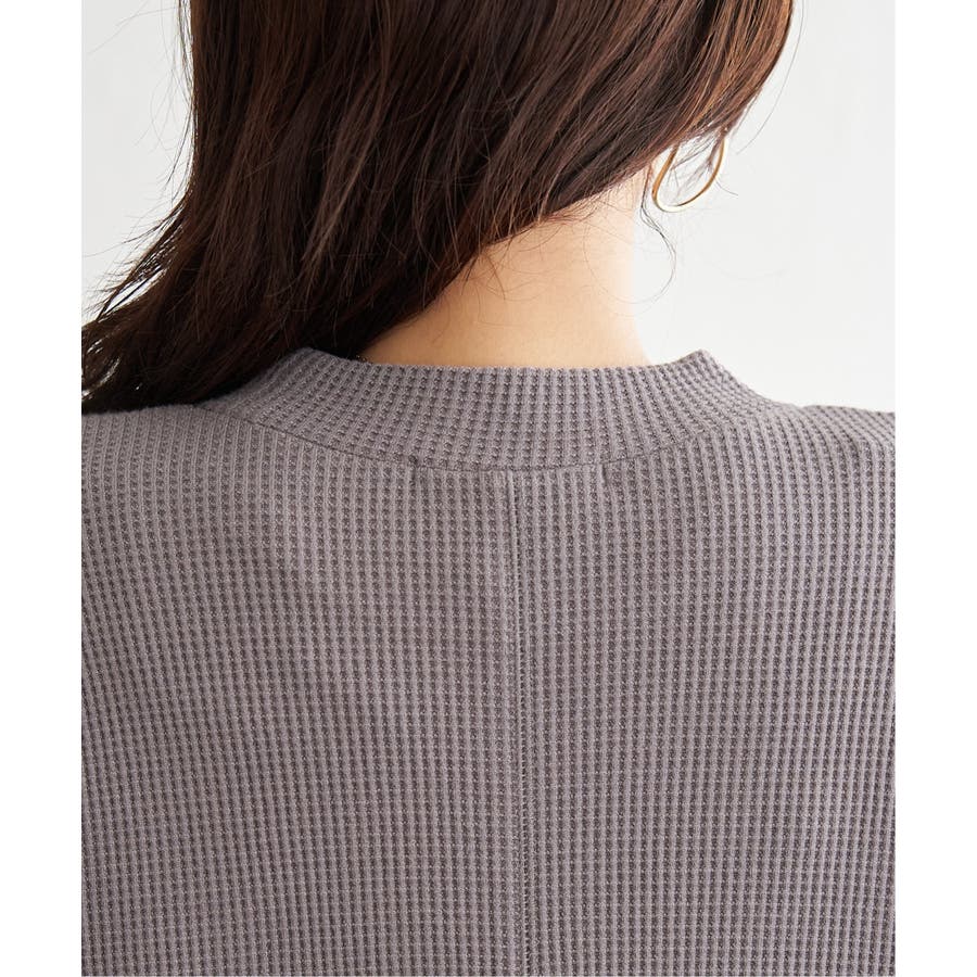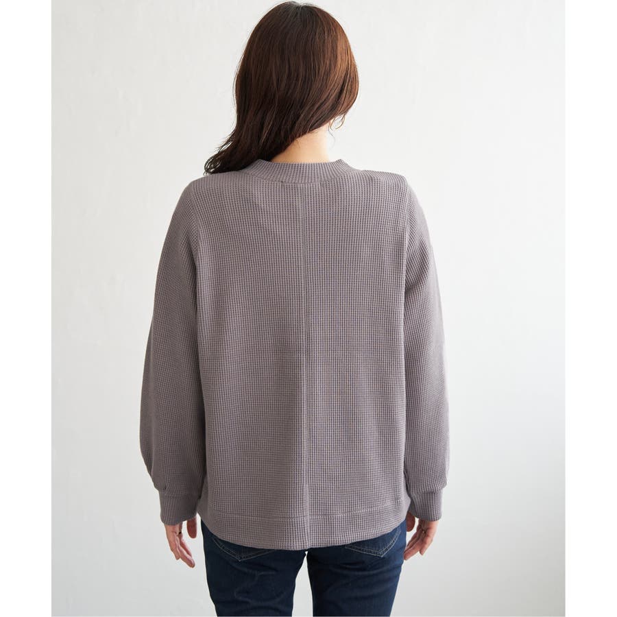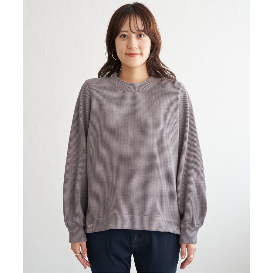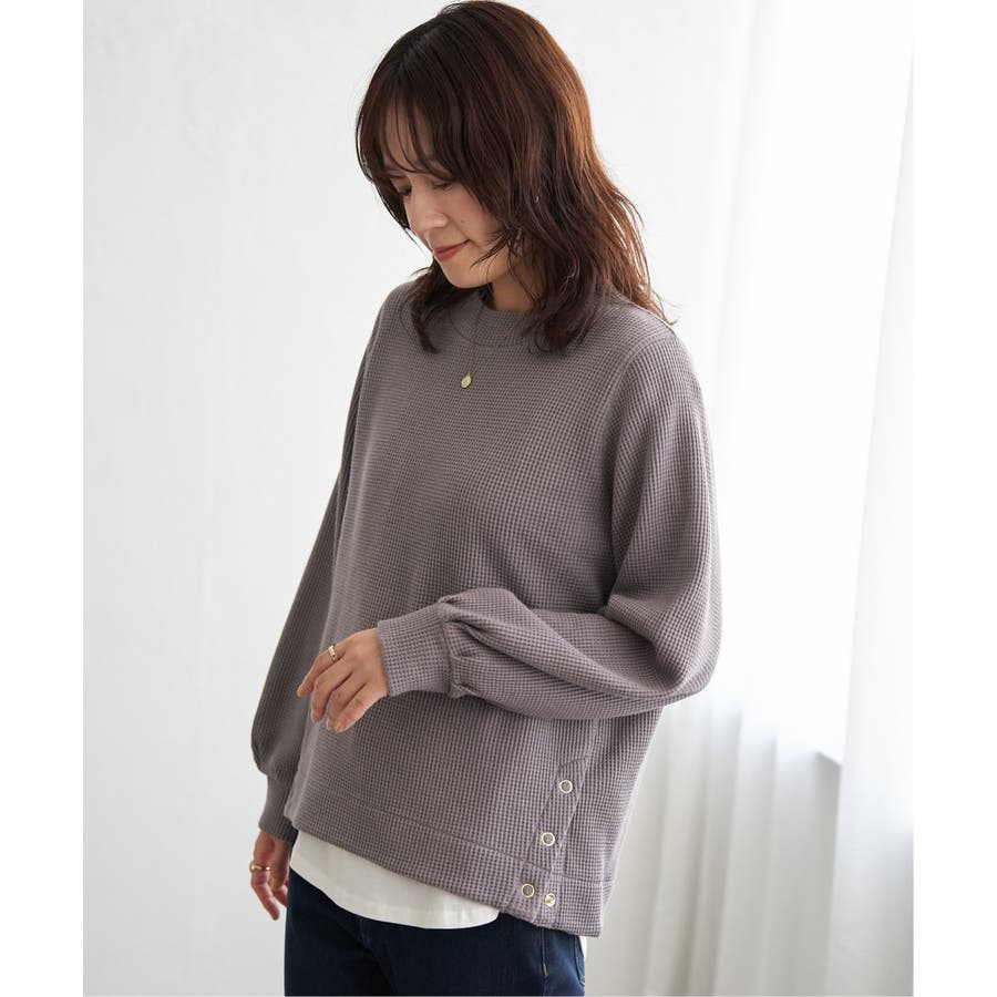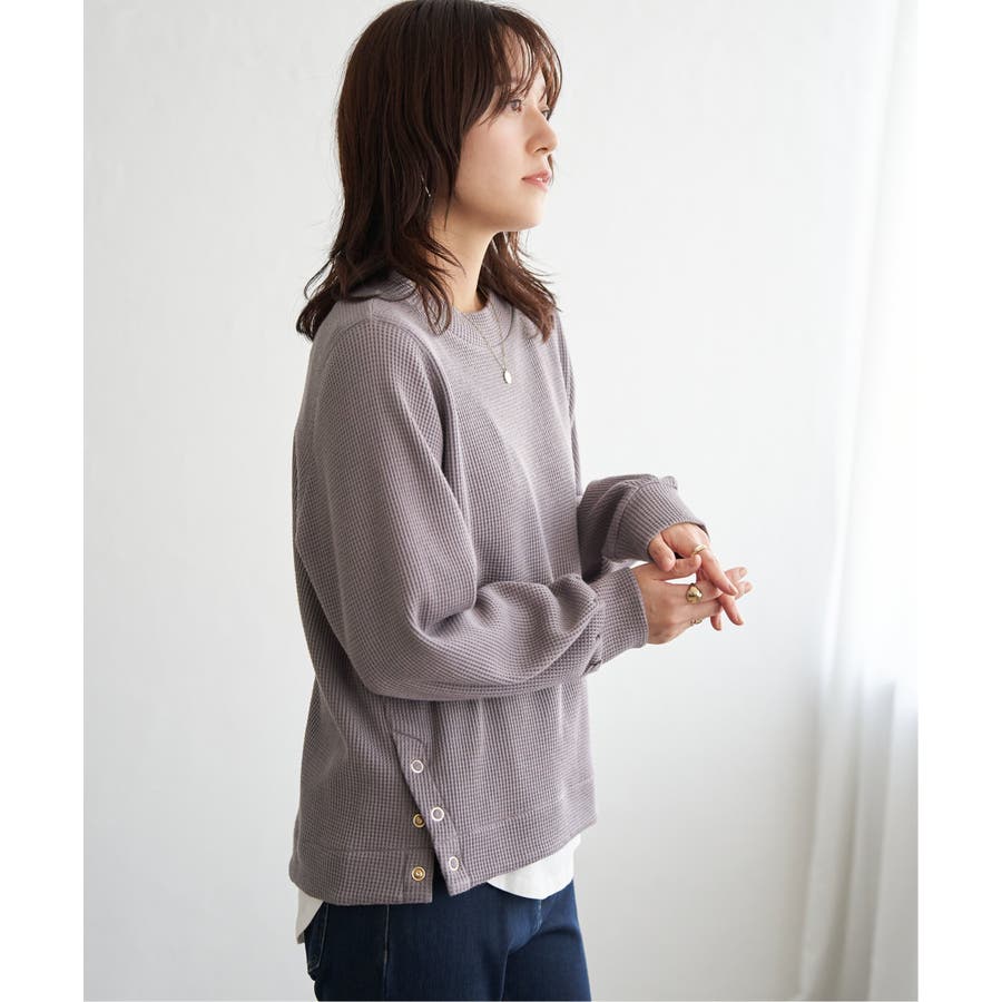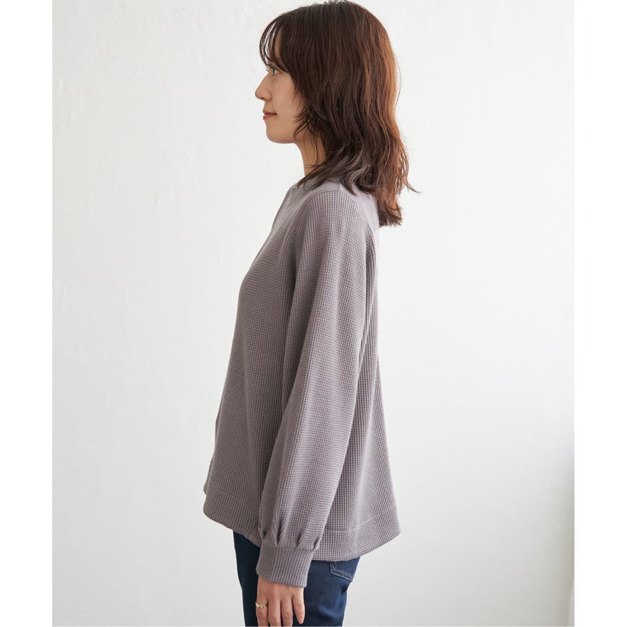 ラメを織り込んだワッフル素材が、カジュアルな中にほのかな華やぎをプラスするプルオーバー。