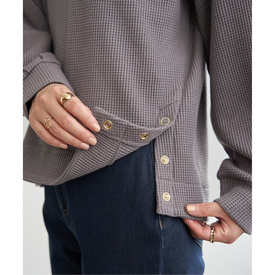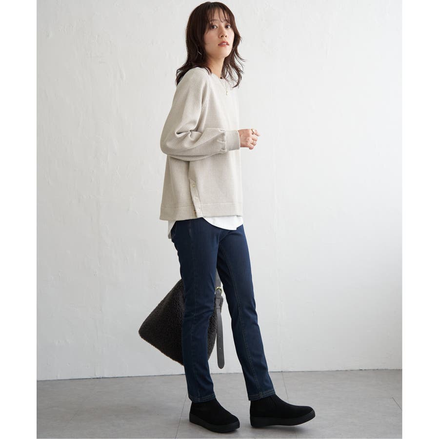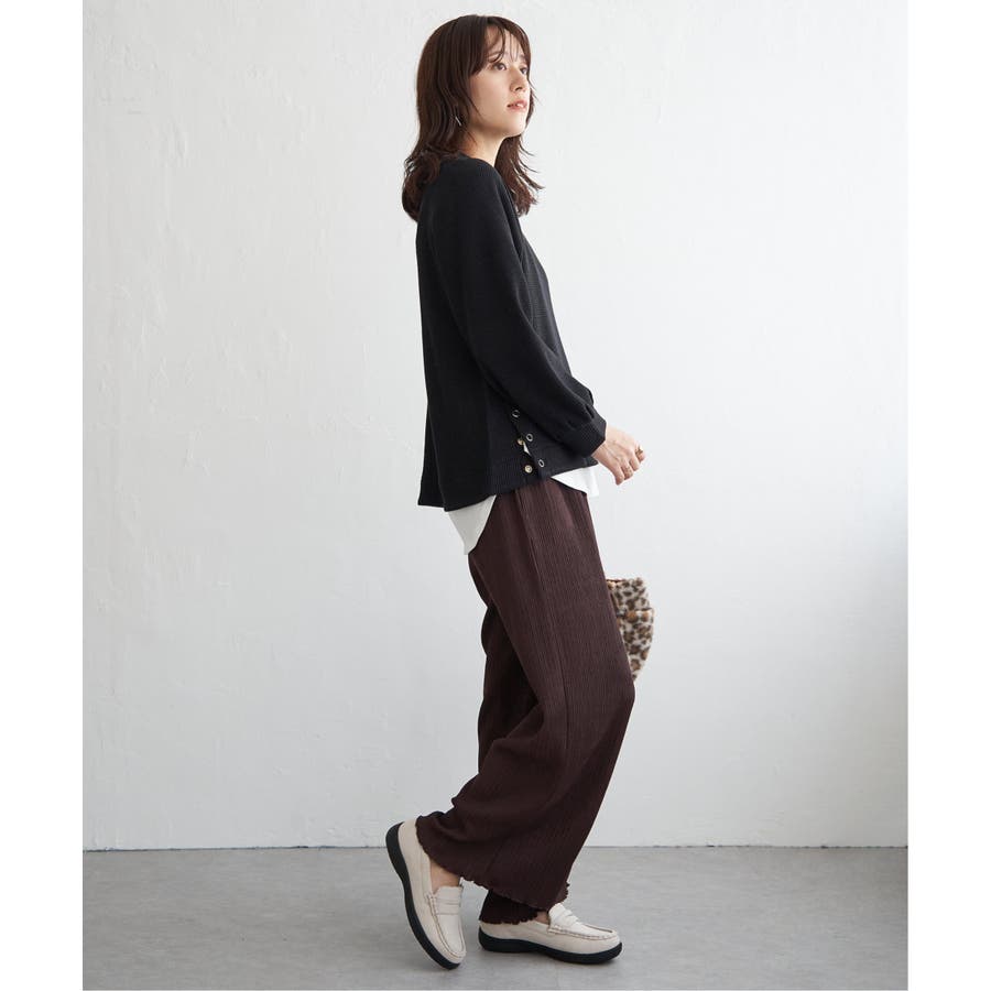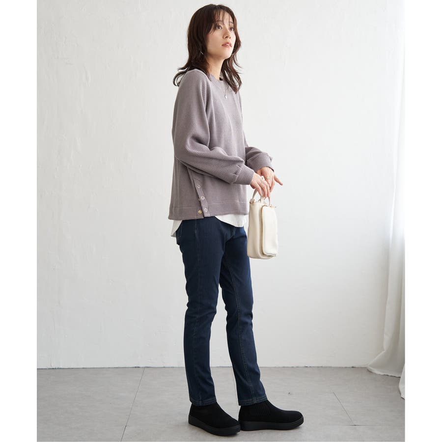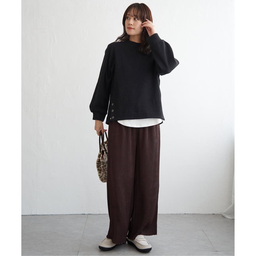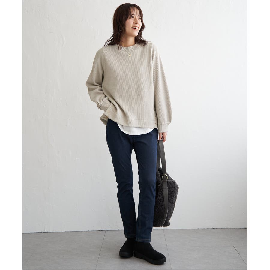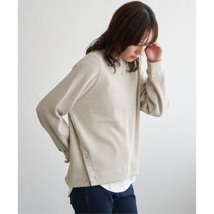 ラメを織り込んだワッフル素材が、カジュアルな中にほのかな華やぎをプラスするプルオーバー。