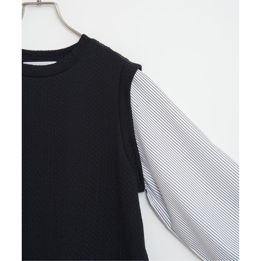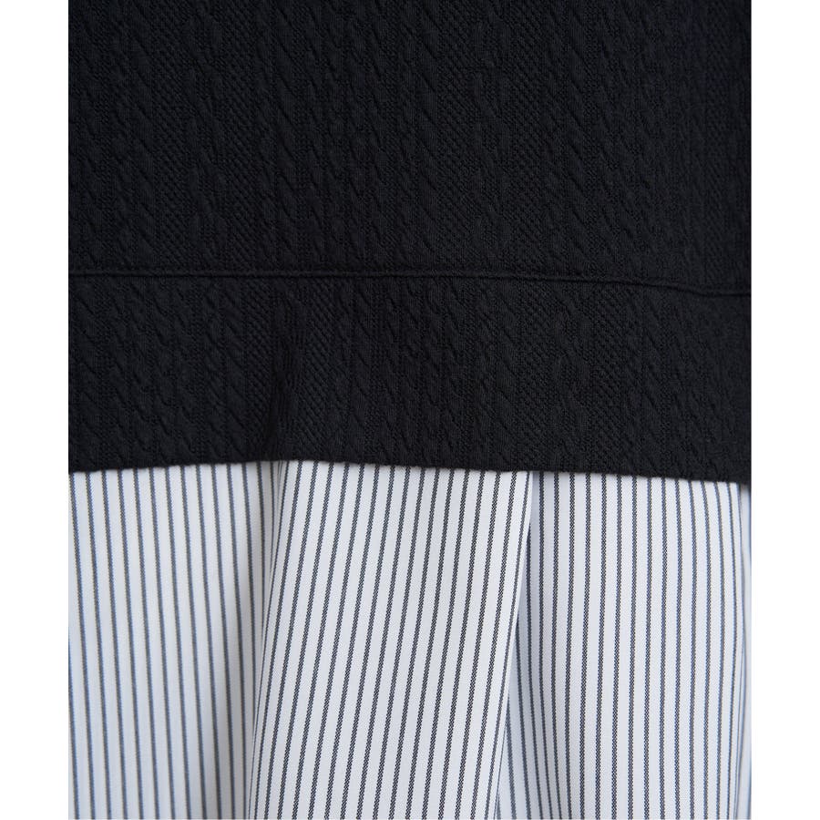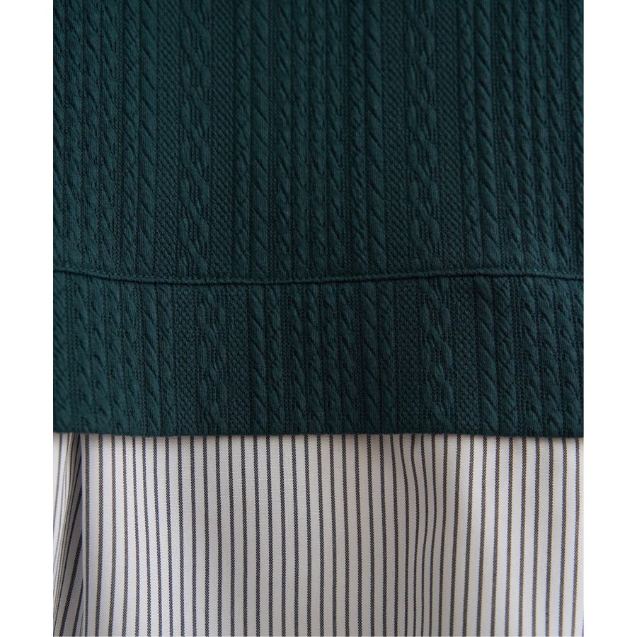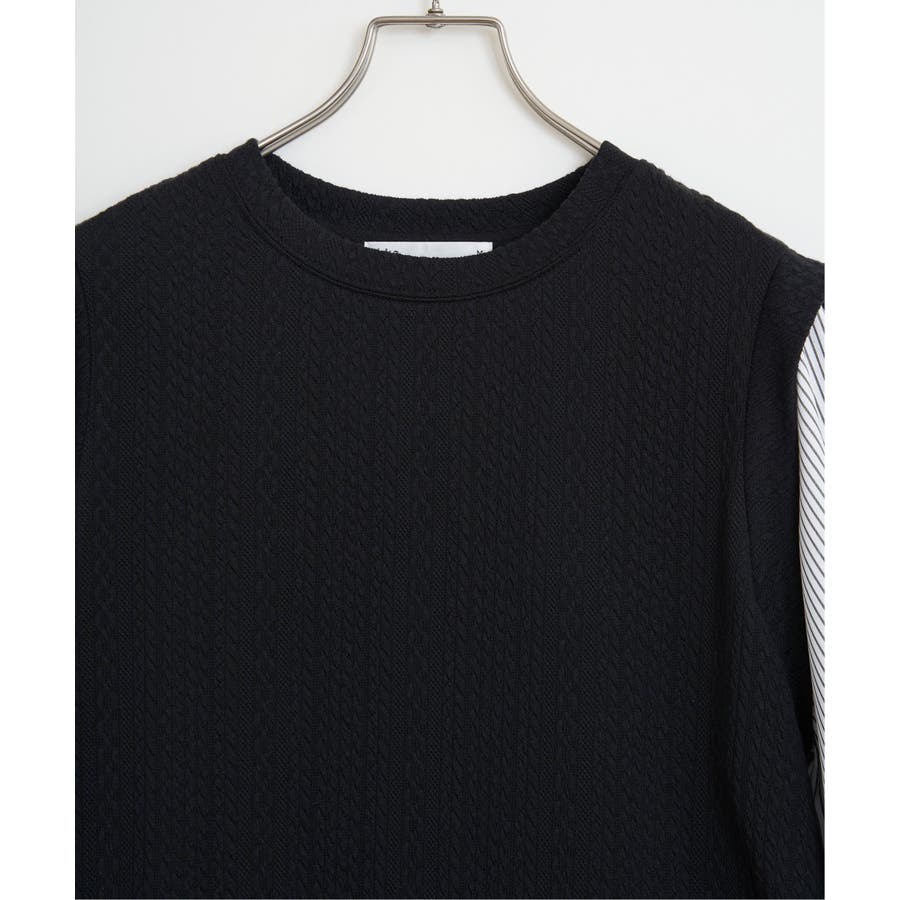 ケーブル風ジャガードカットソー×シャツ素材の異素材MIX。