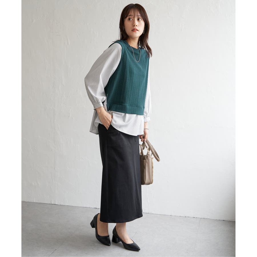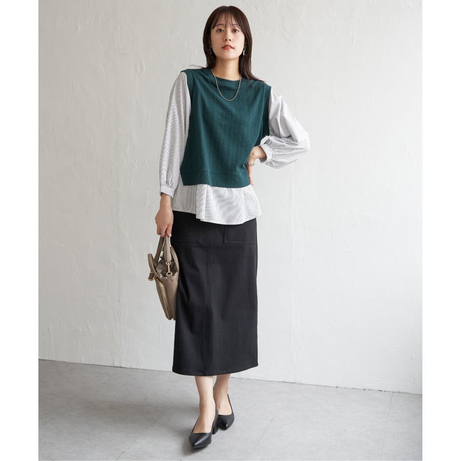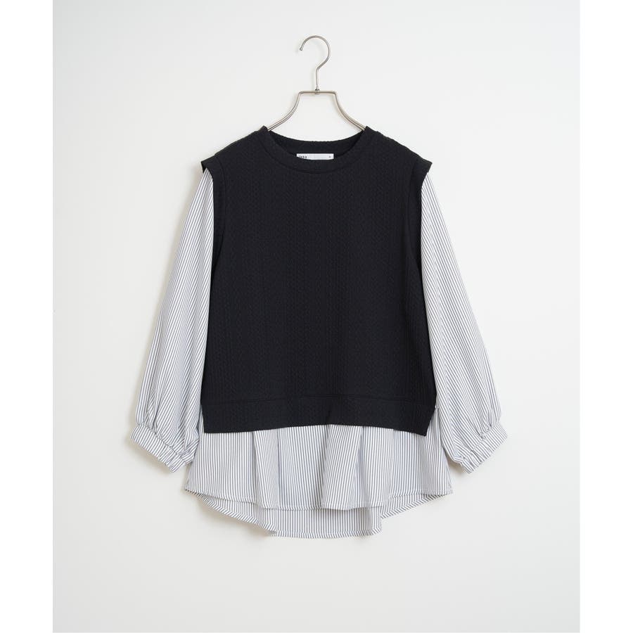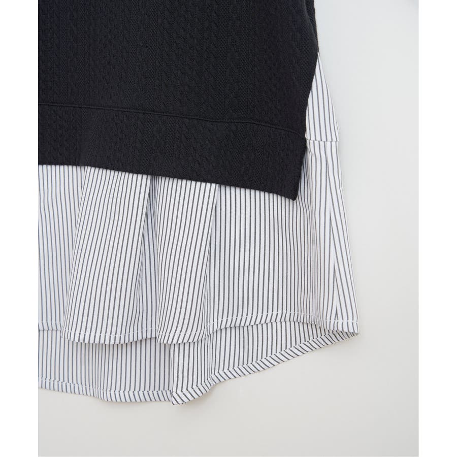 ケーブル風ジャガードカットソー×シャツ素材の異素材MIX。