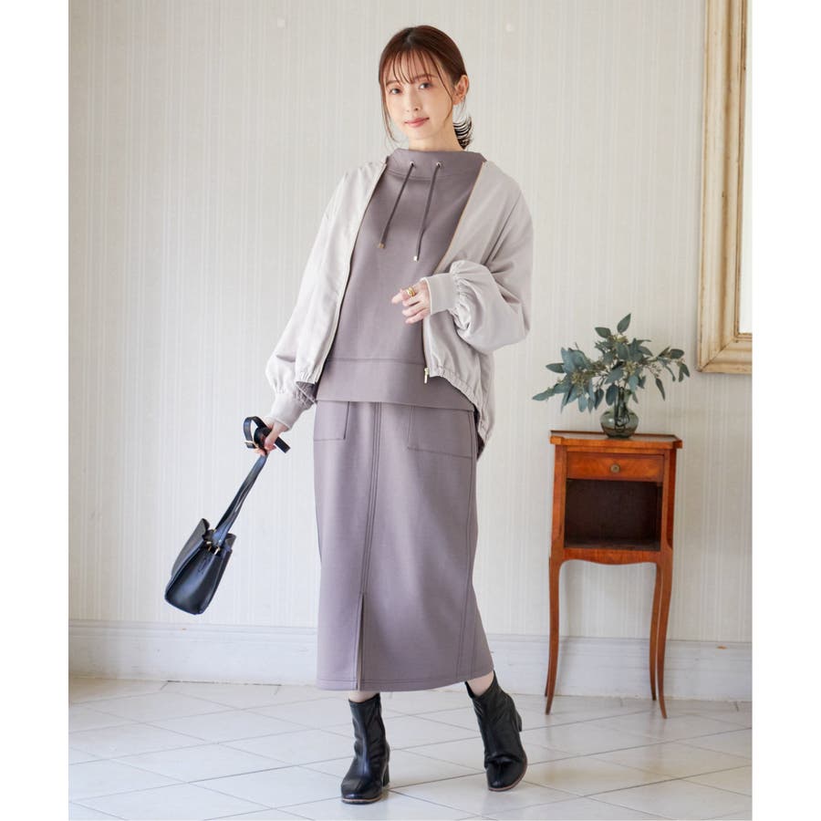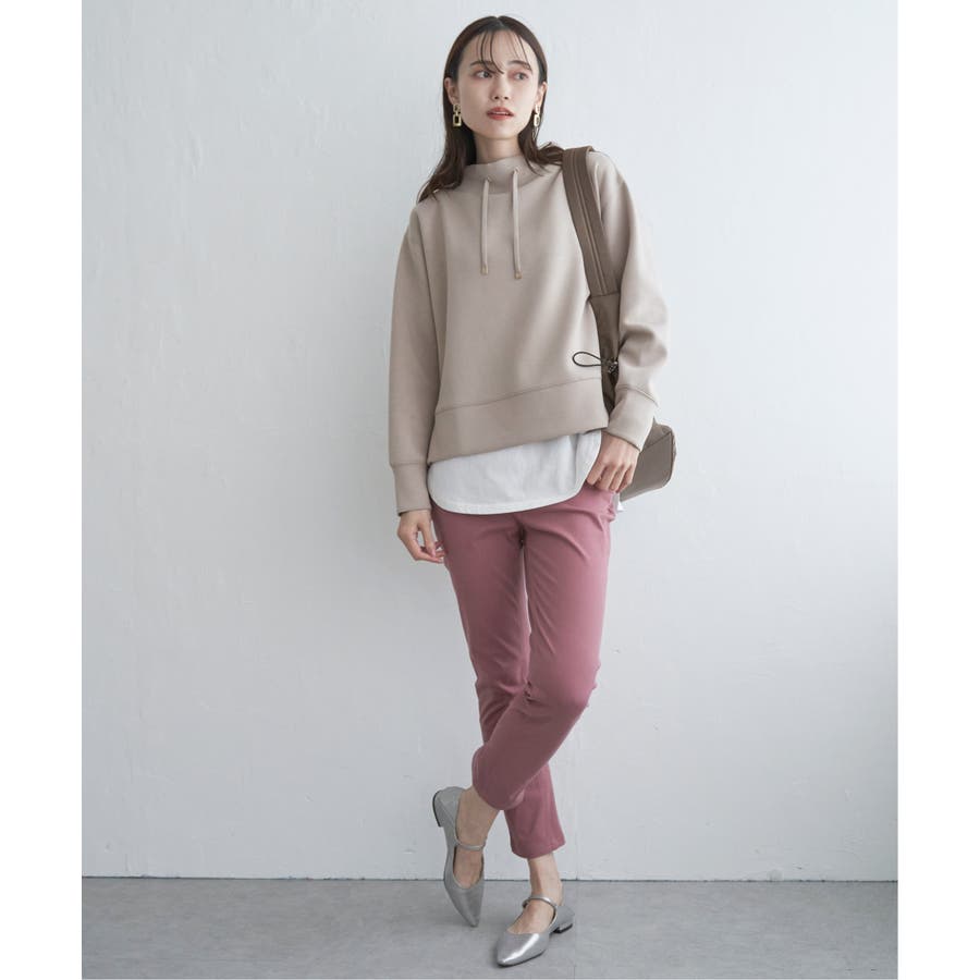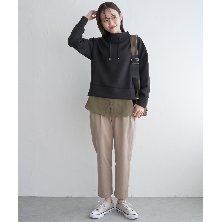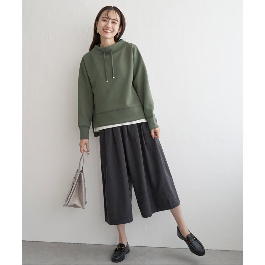 ・首元に綺麗に沿ったモックネックはカジュアル過ぎず大人な雰囲気の抜け感を演出