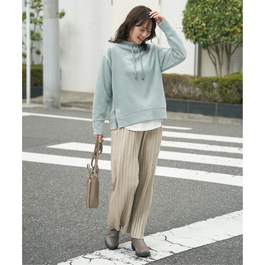 スエード風の微起毛素材が季節感を漂わせるプルオーバー。