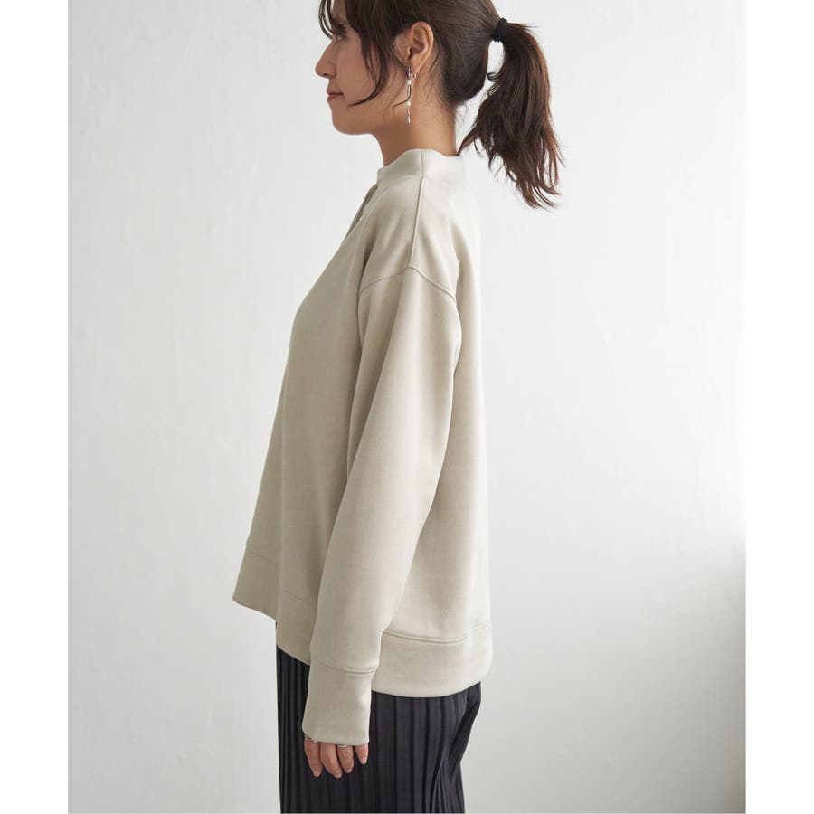 ・首元にきれいに沿ったモックネックはカジュアル過ぎず大人な雰囲気の抜け感を演出