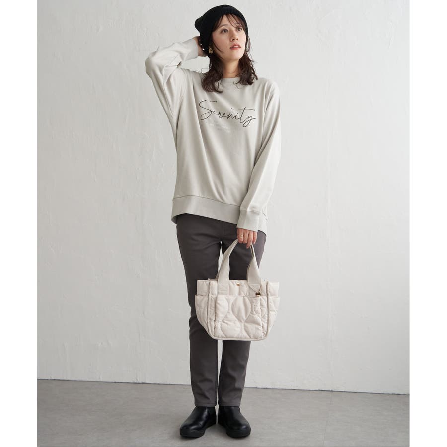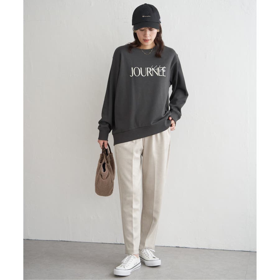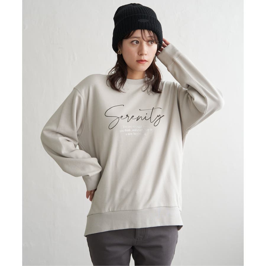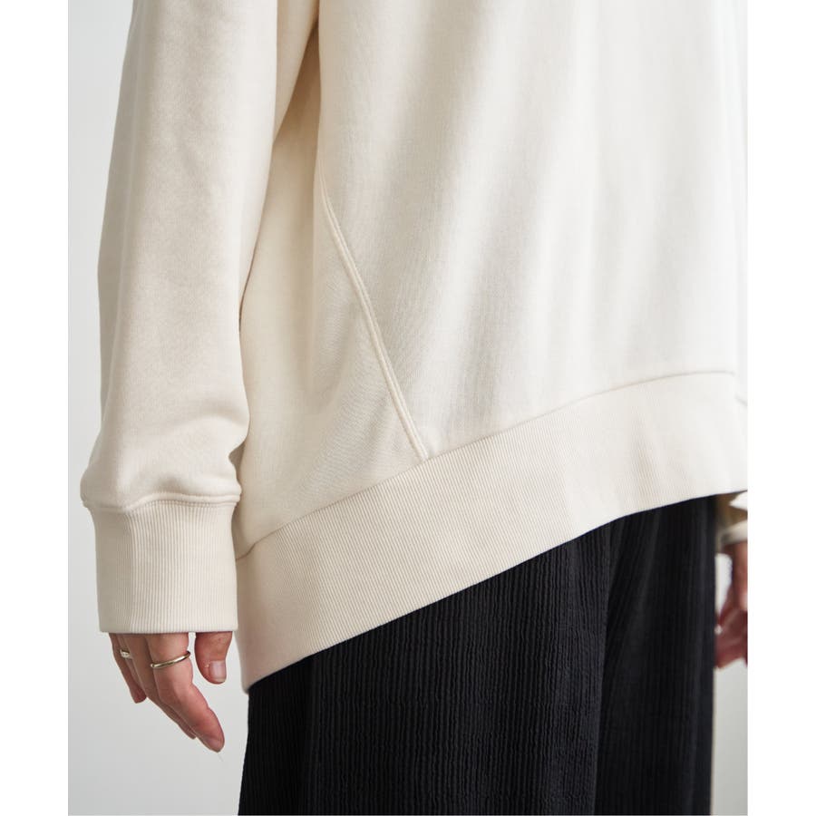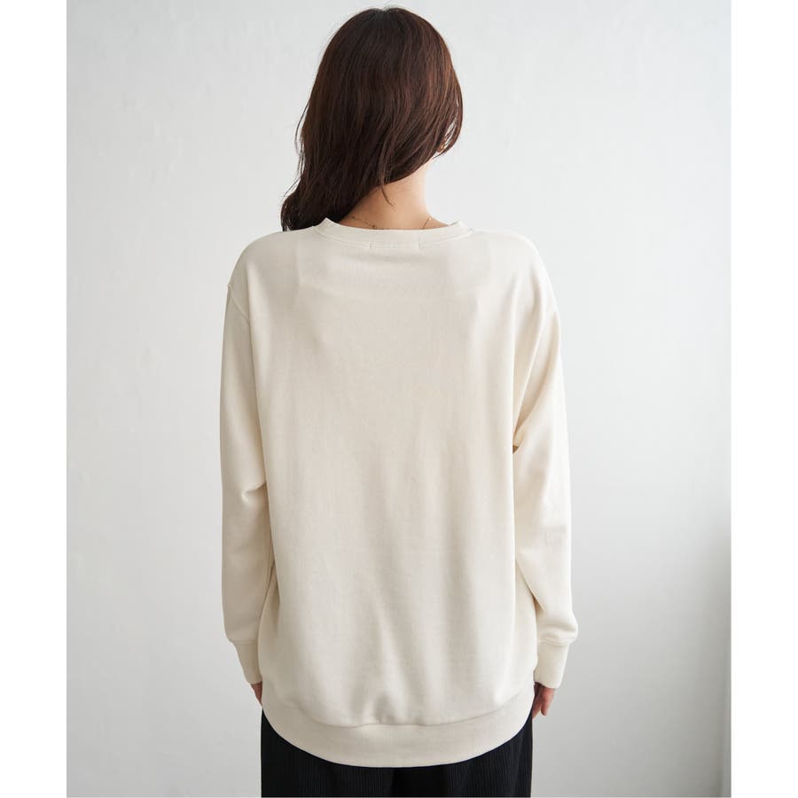 ・素材、シルエット共にリニューアルしたプリントトレーナー。少し丸みのある女性らしい一枚。