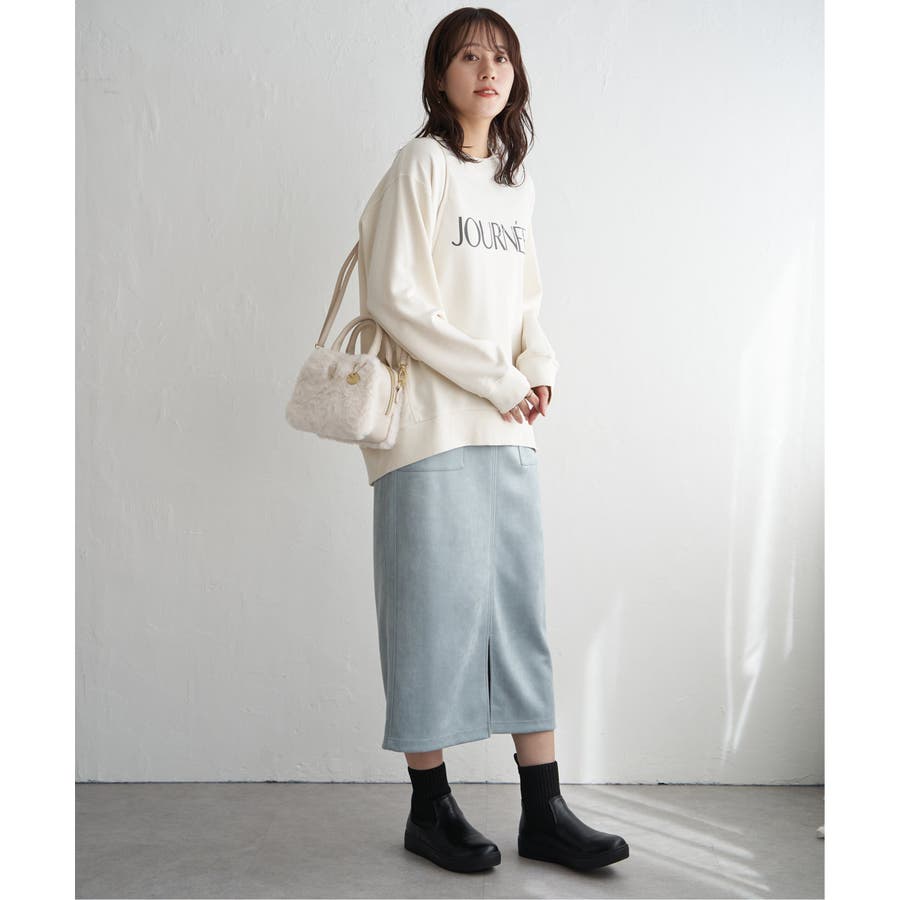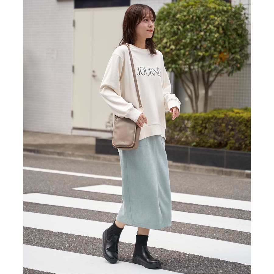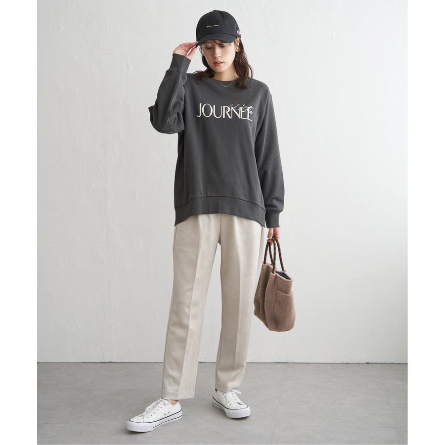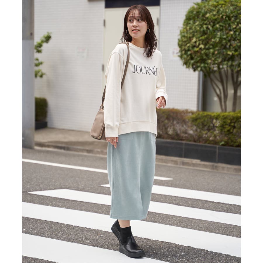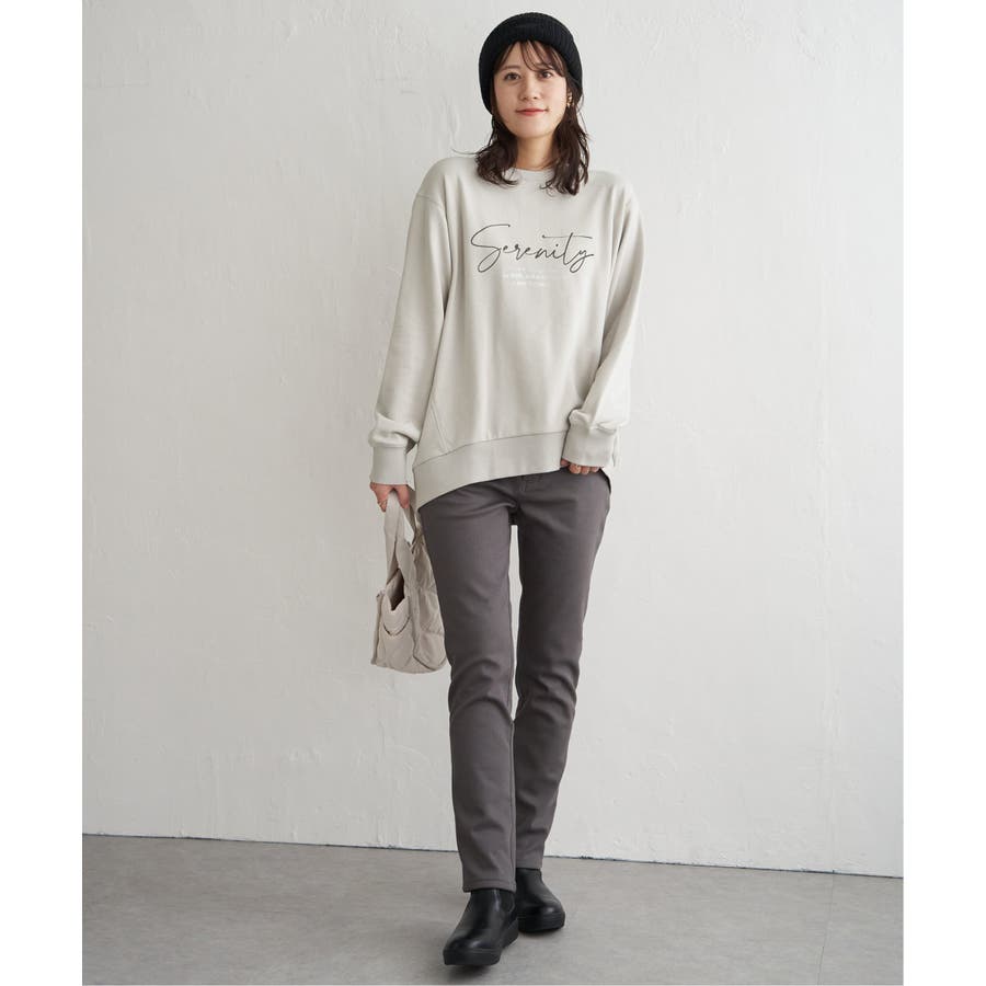 ・素材、シルエット共にリニューアルしたプリントトレーナー。少し丸みのある女性らしい一枚。