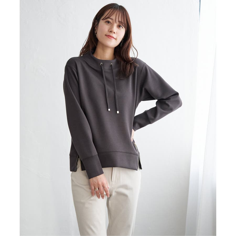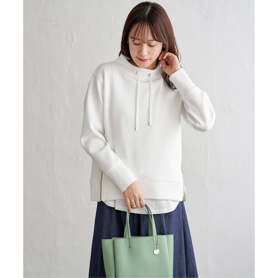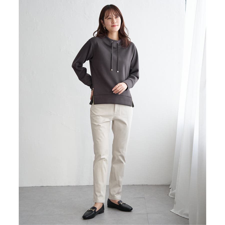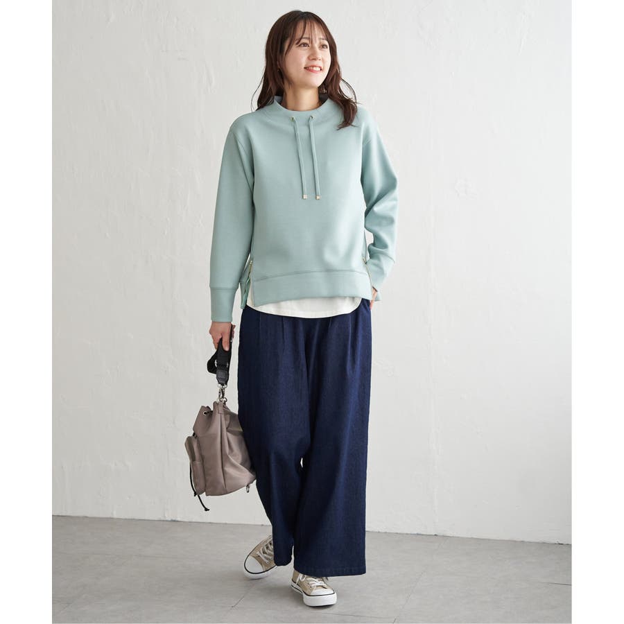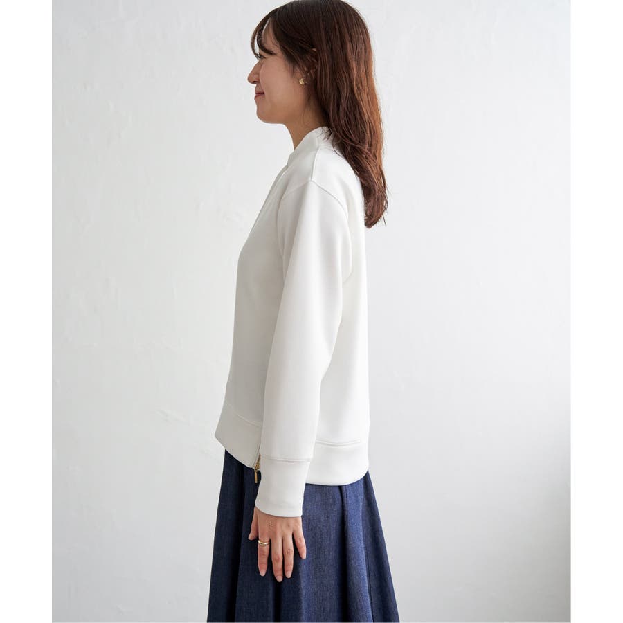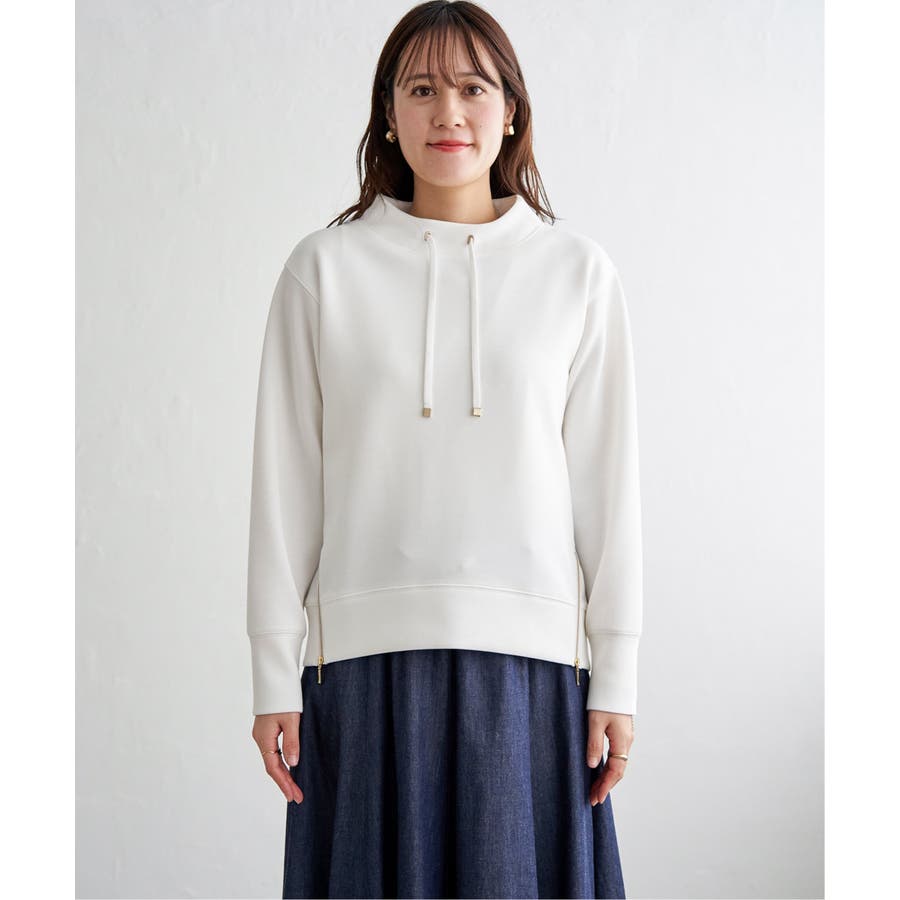 ・首元にきれいに沿ったモックネックはカジュアル過ぎず大人な雰囲気の抜け感を演出