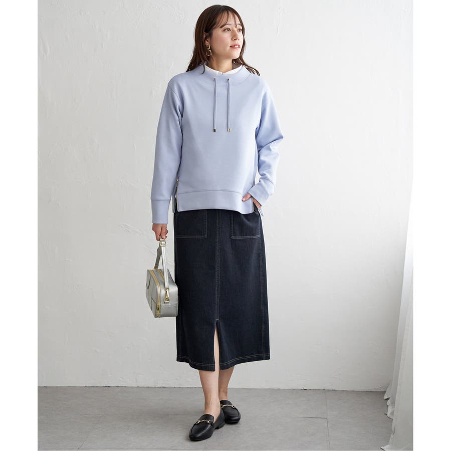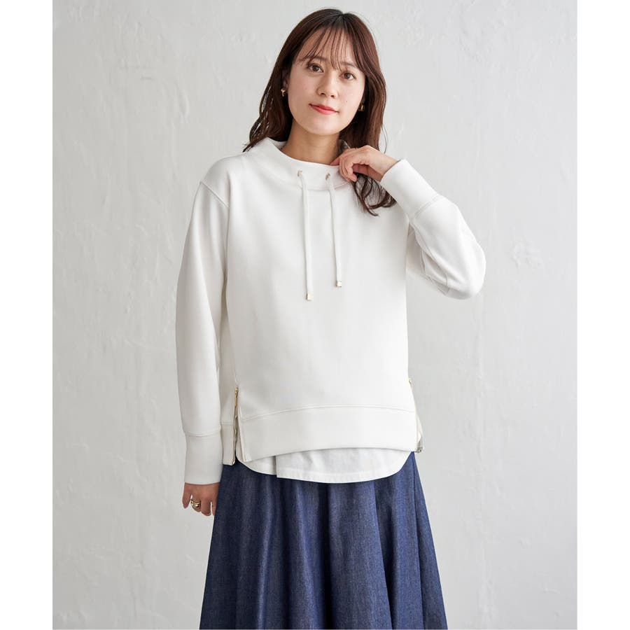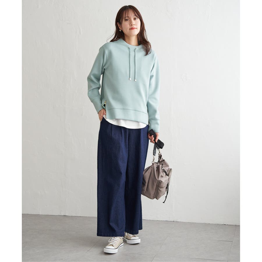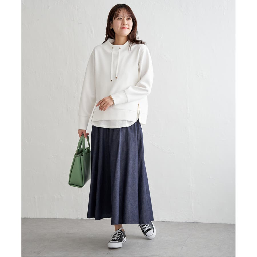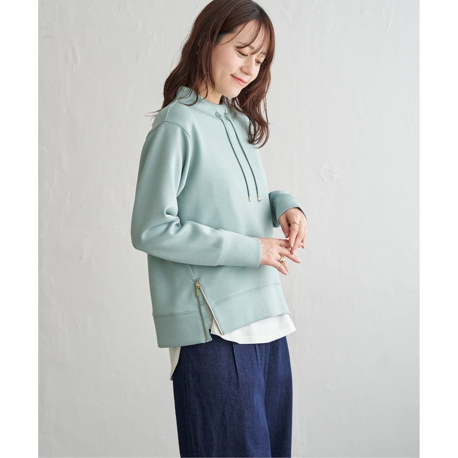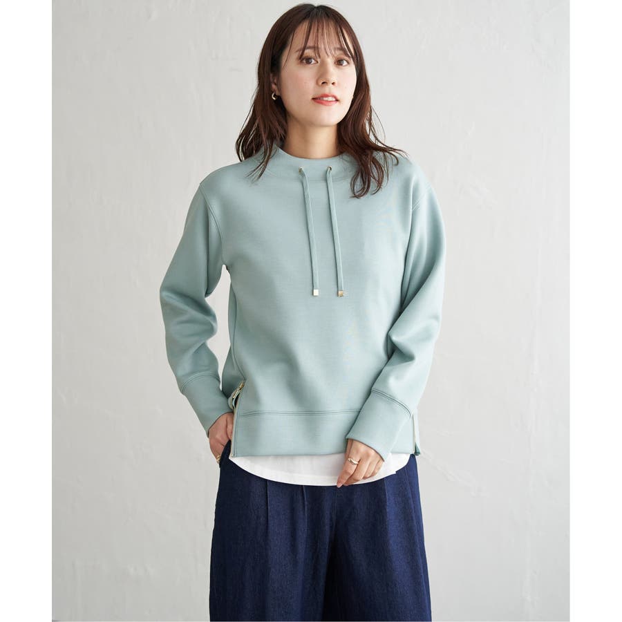 ・首元にきれいに沿ったモックネックはカジュアル過ぎず大人な雰囲気の抜け感を演出