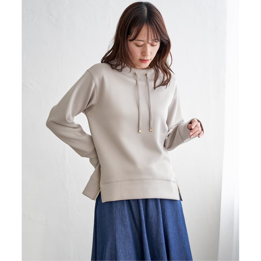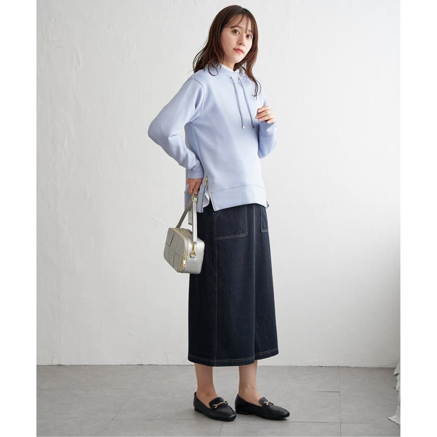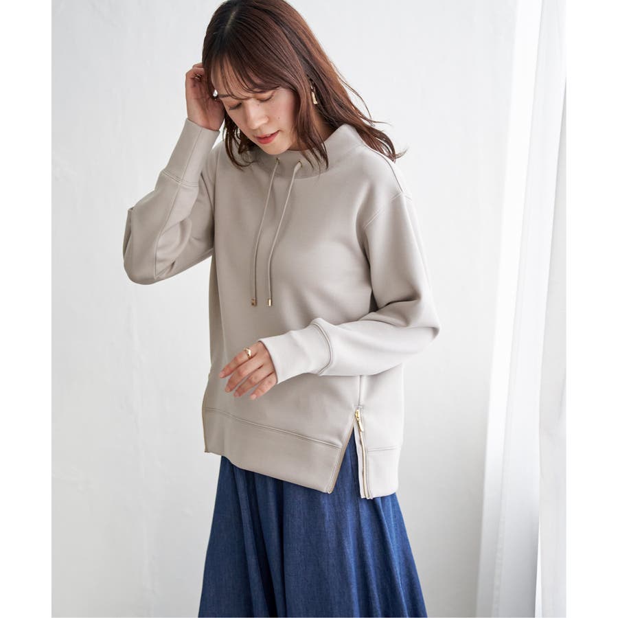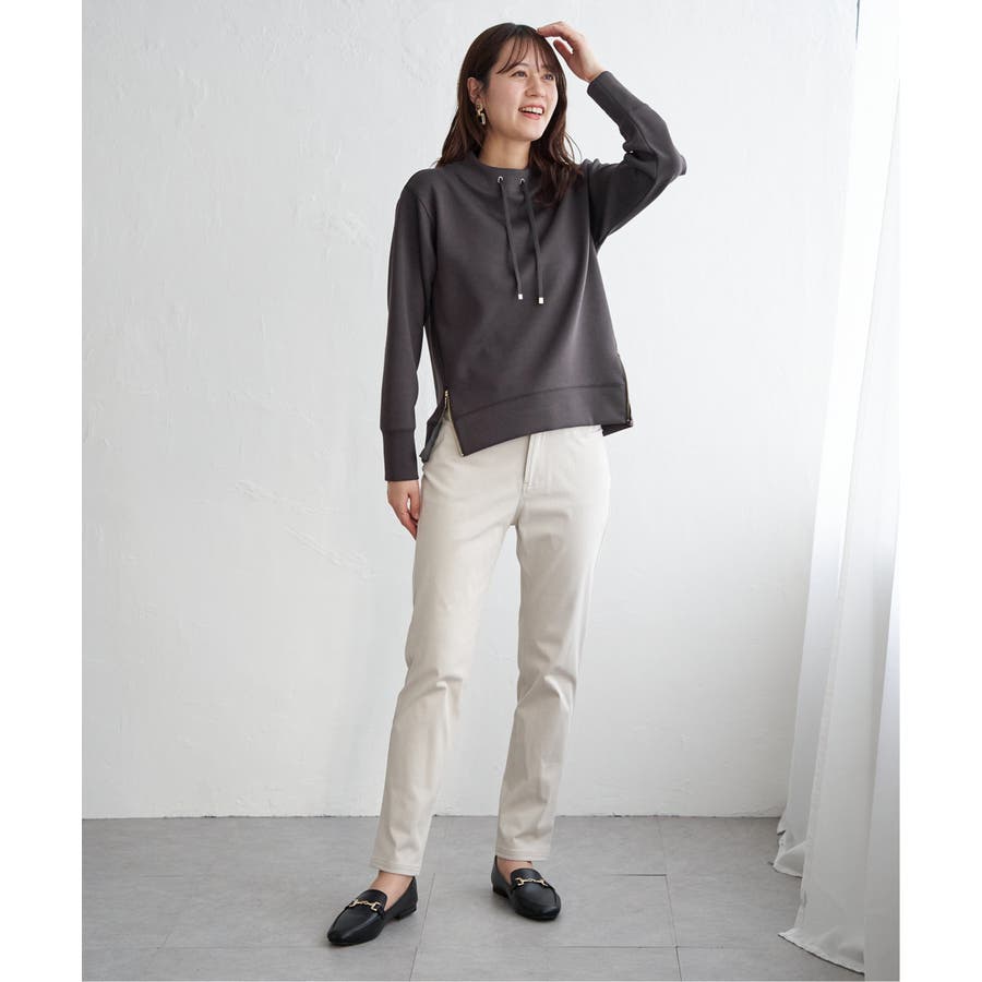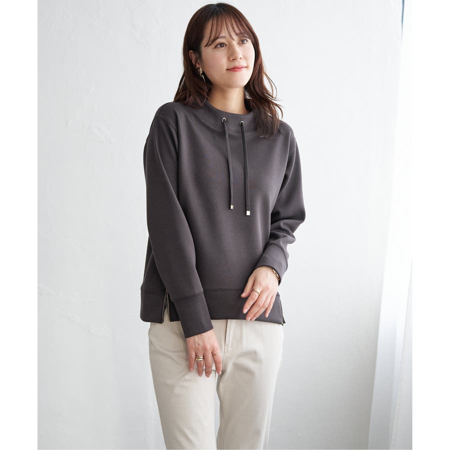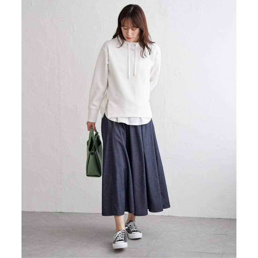 ・首元にきれいに沿ったモックネックはカジュアル過ぎず大人な雰囲気の抜け感を演出
