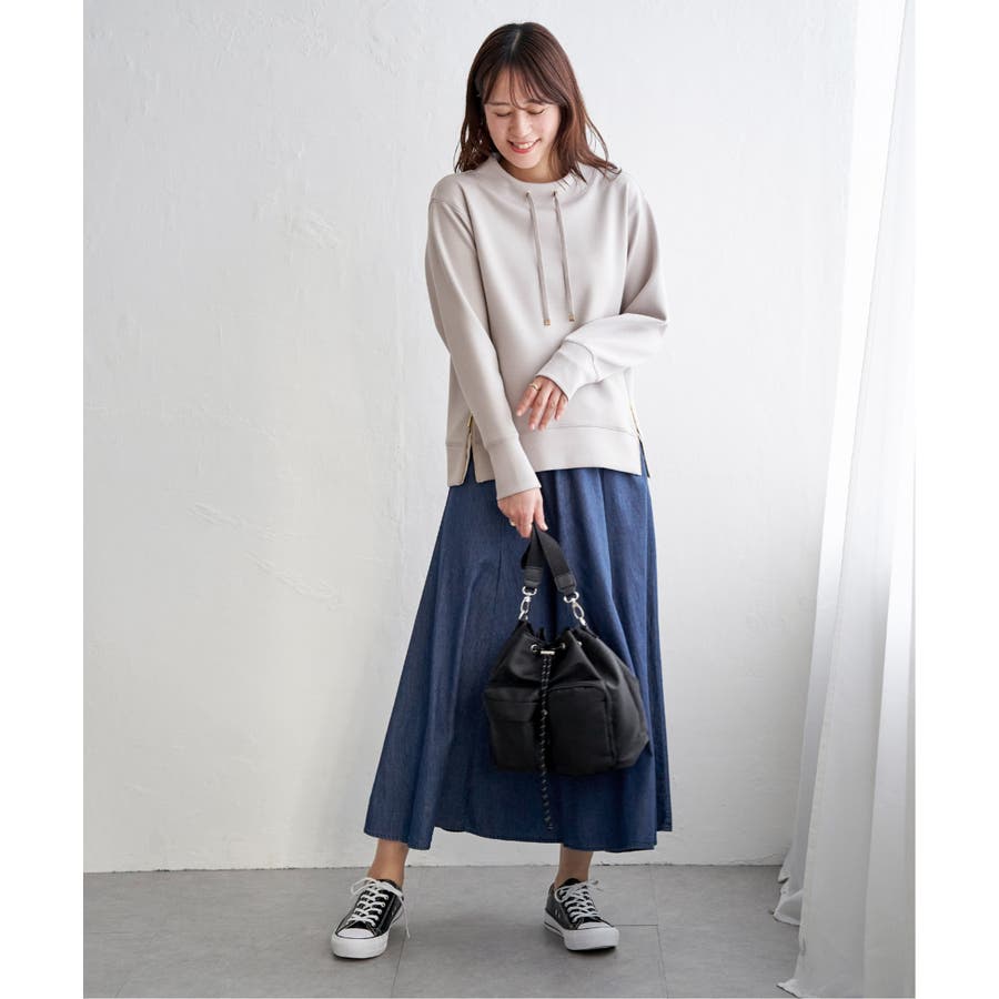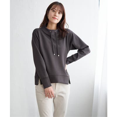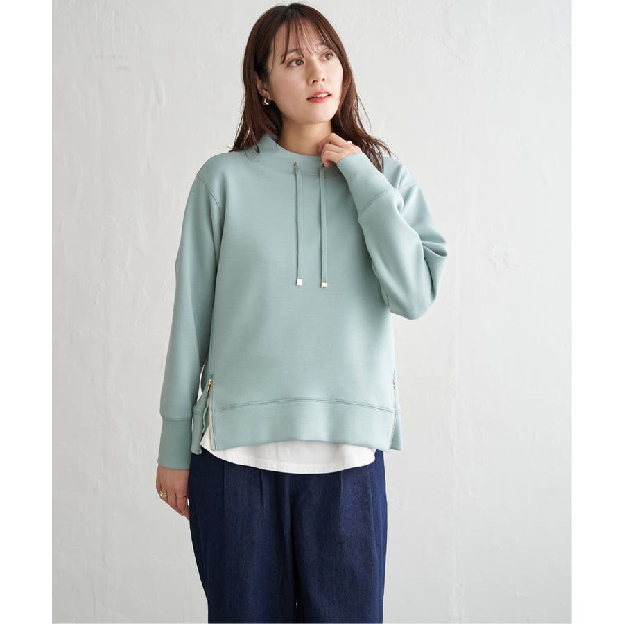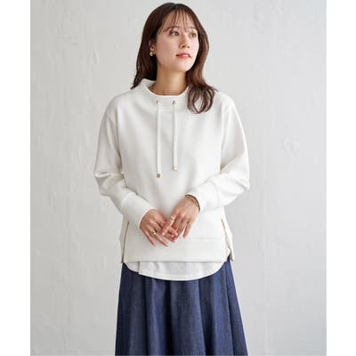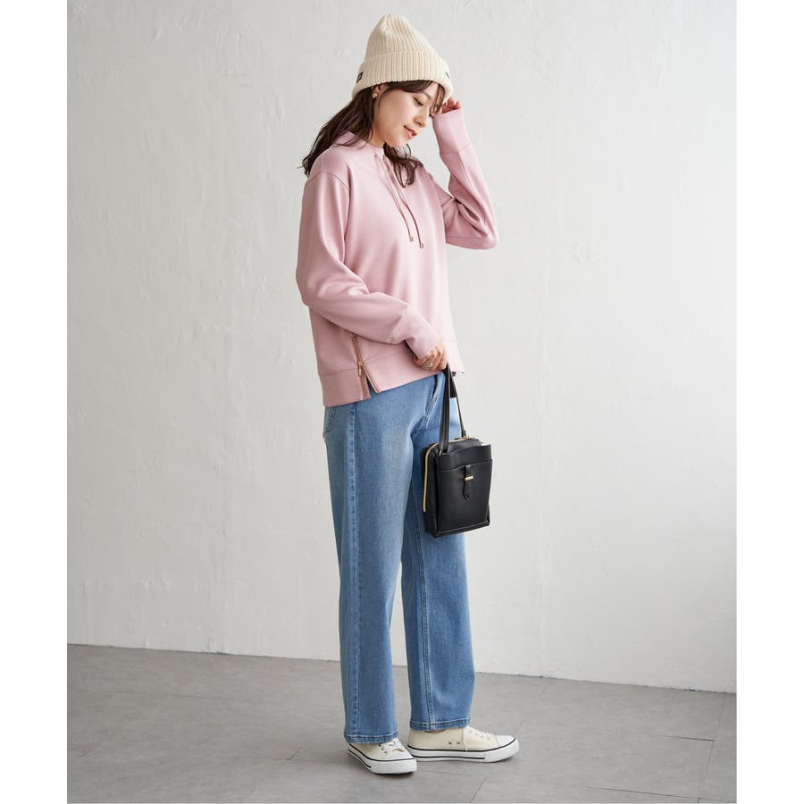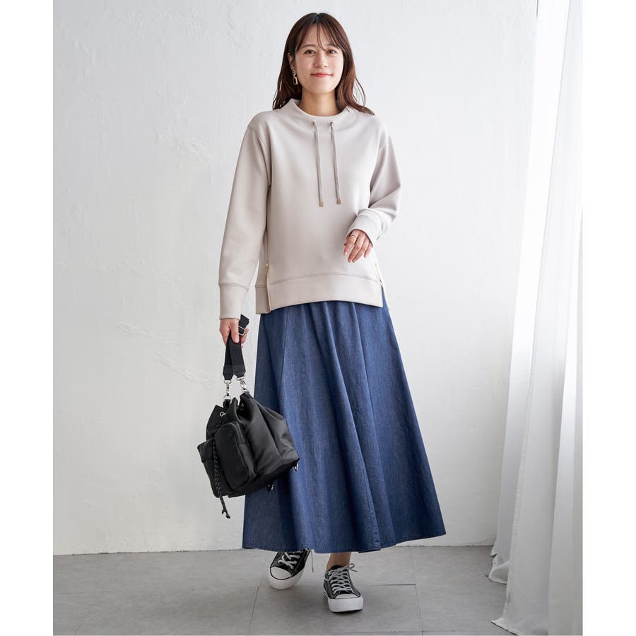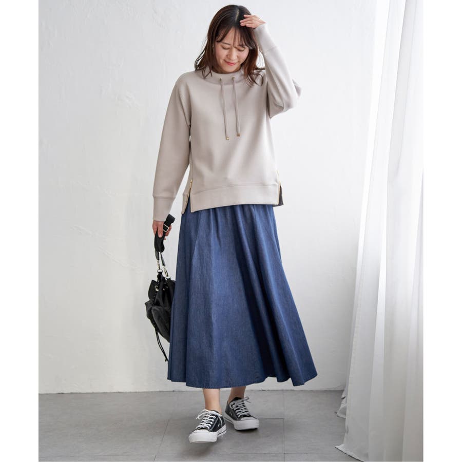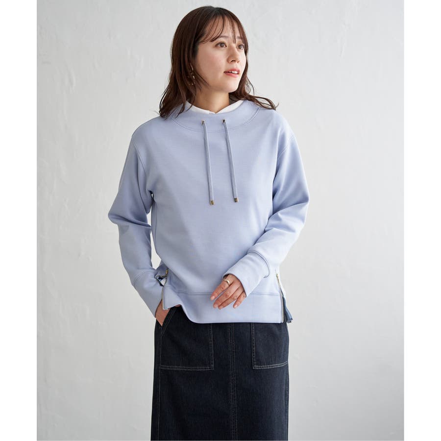 ・首元にきれいに沿ったモックネックはカジュアル過ぎず大人な雰囲気の抜け感を演出