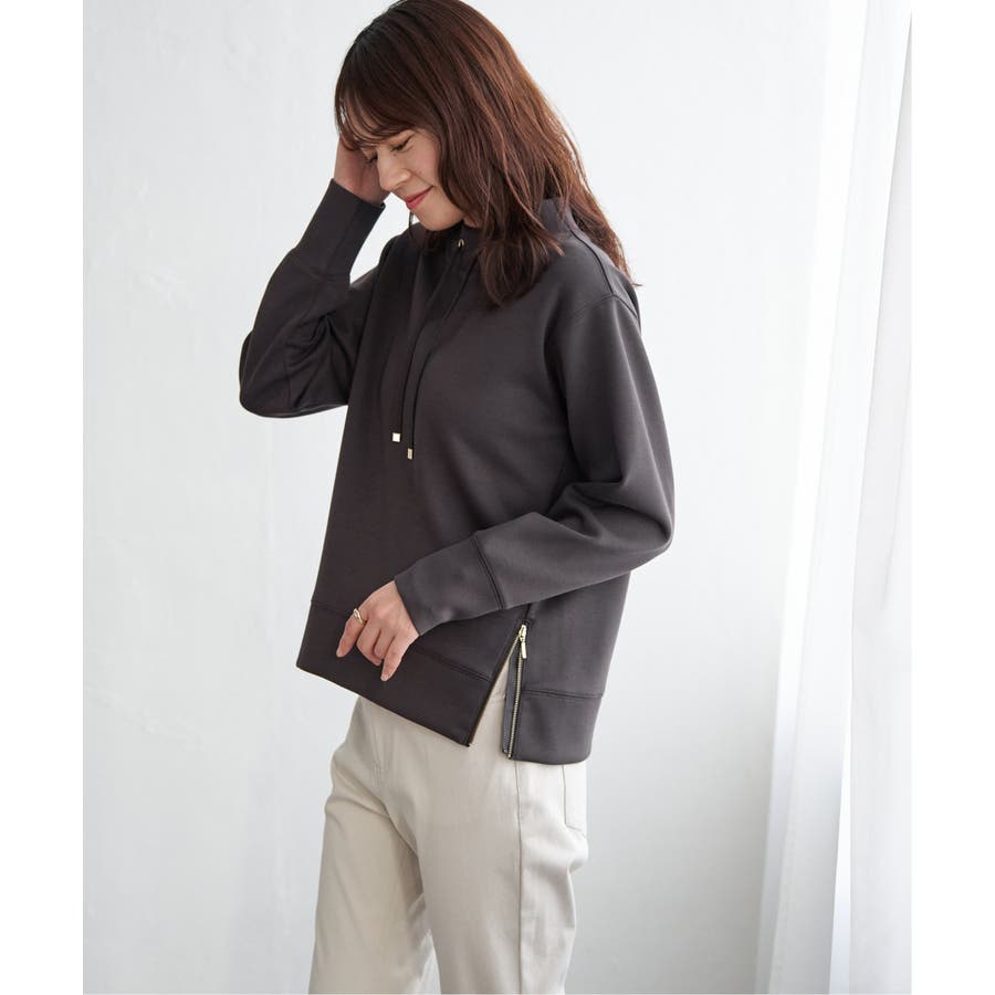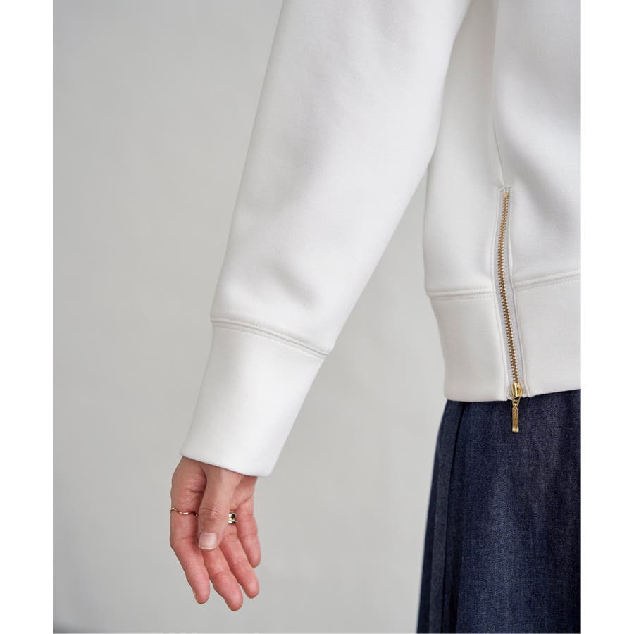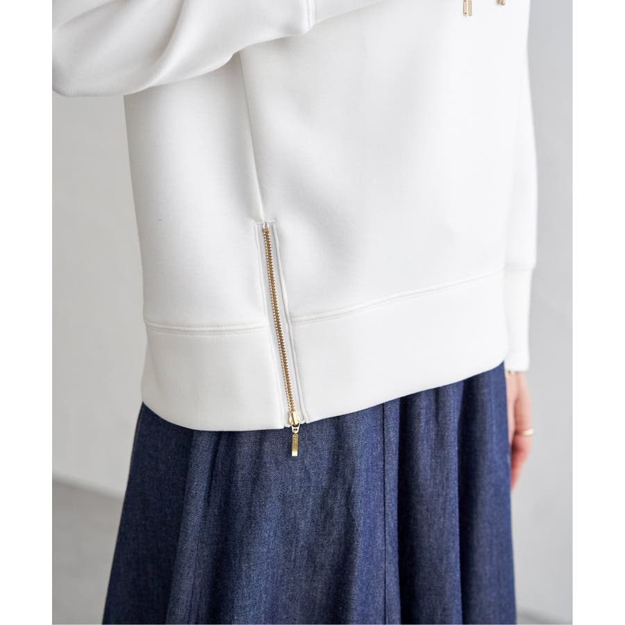 裾のファスナースリットは開閉でシルエットの変化を楽しめ、さりげなくあしらったゴールドカラーのパーツが上品なアクセントに。