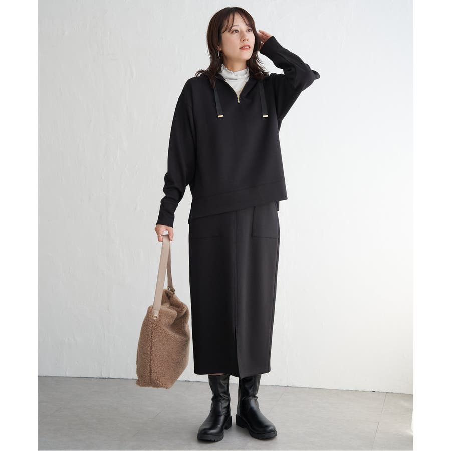フロントネックにファスナーを付けてアクセントに。