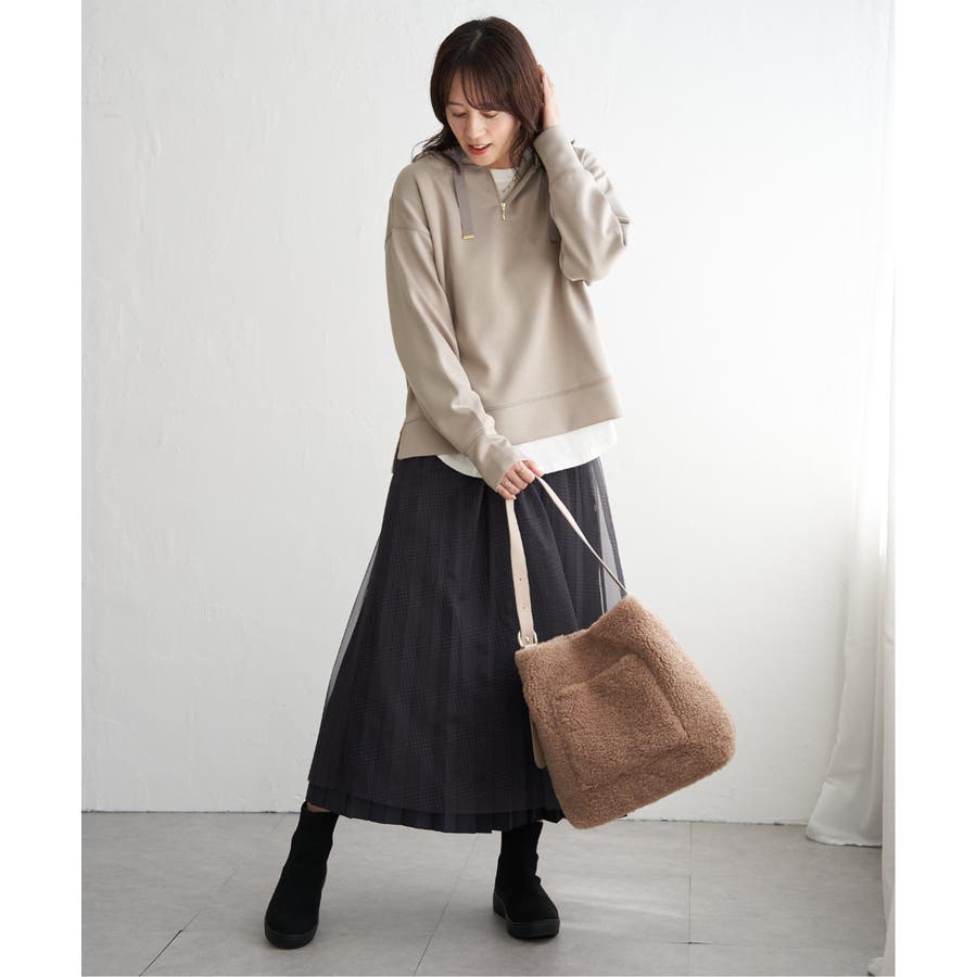 ・フードに通したグログランテープが女性らしいデザイン