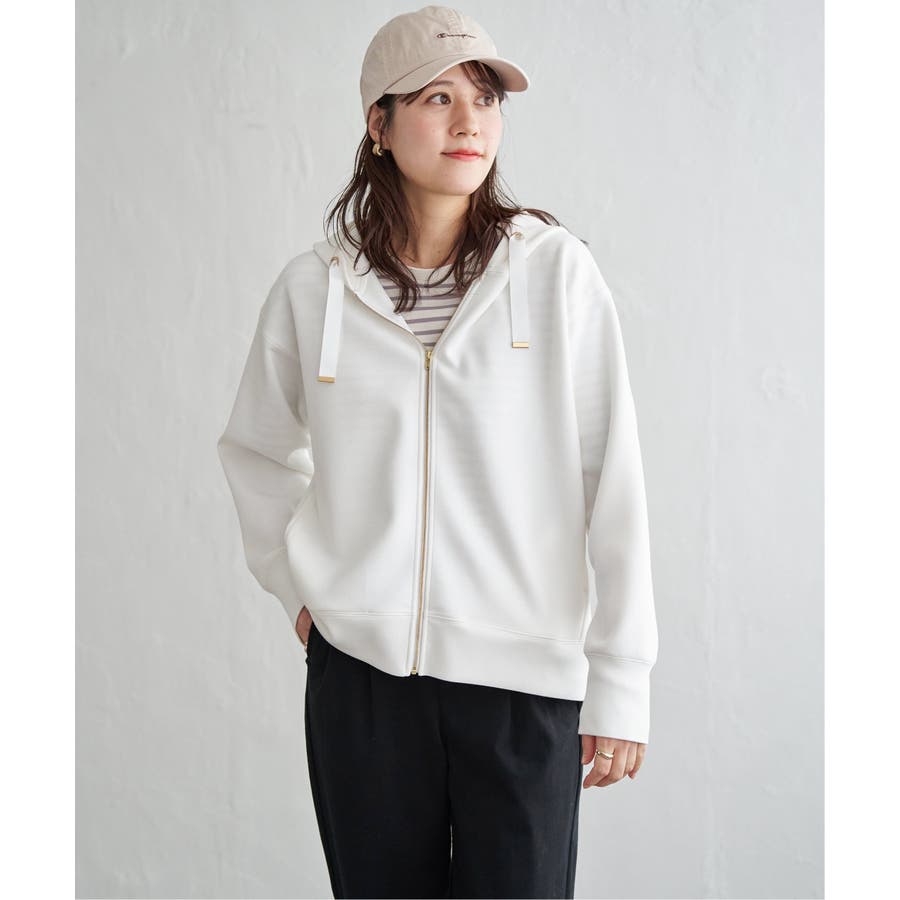 ・フードに通したグログランテープが女性らしいデザイン