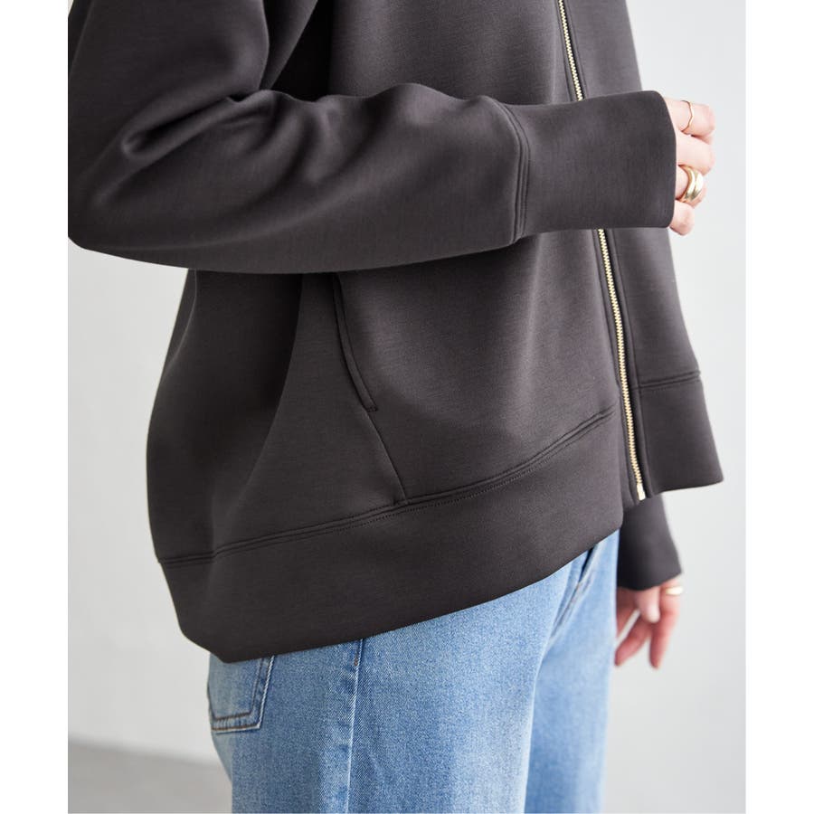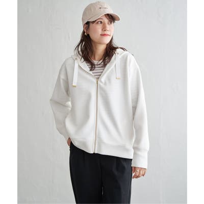 表面に鹿の子編みを施したダンボールニットをのパーカ。