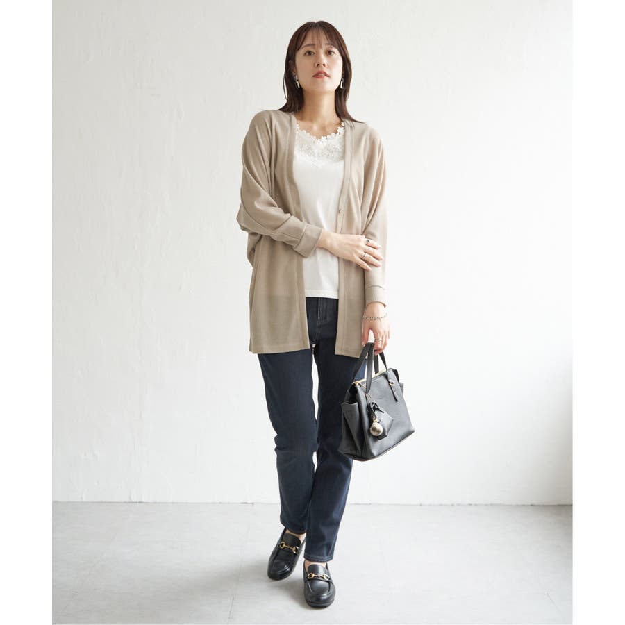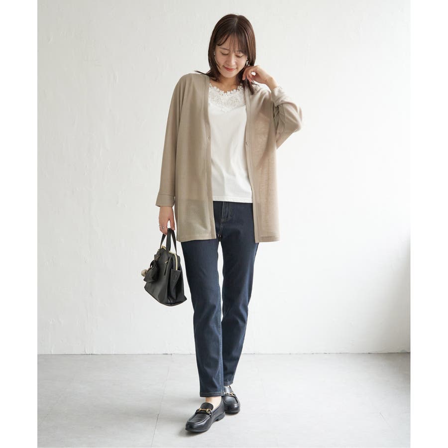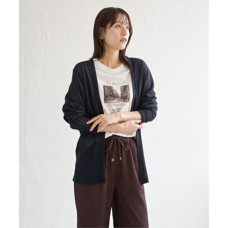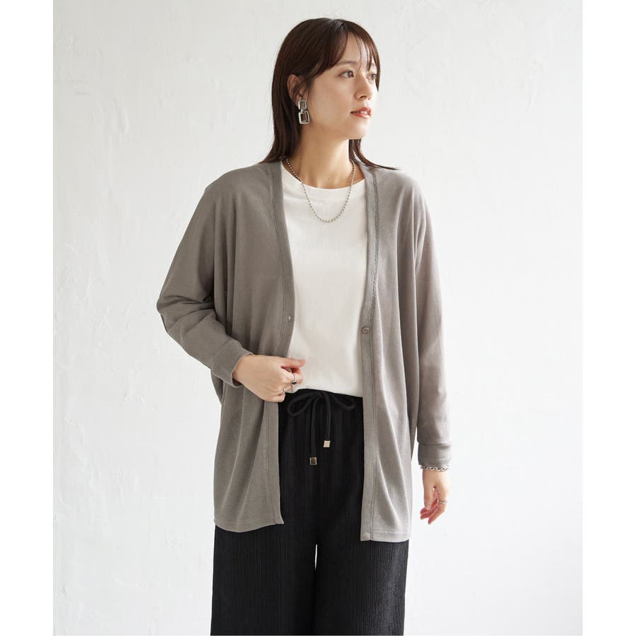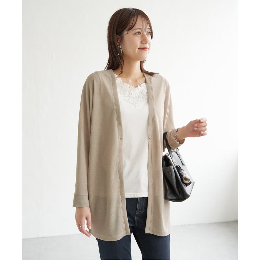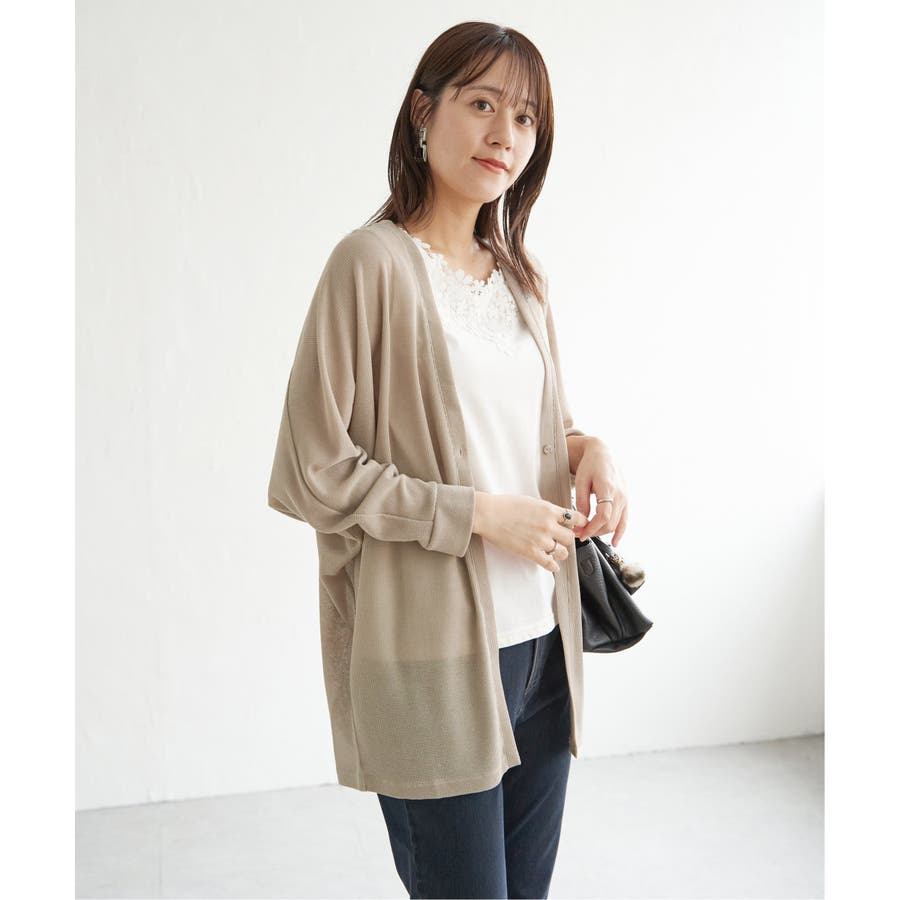 ほどよい透け感が涼しげな、シアーフライス素材のライトカーディガン。