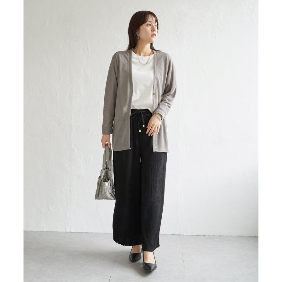 ヒップラインまで隠れる丈感で、気になる腰まわりもしっかりカバーします。