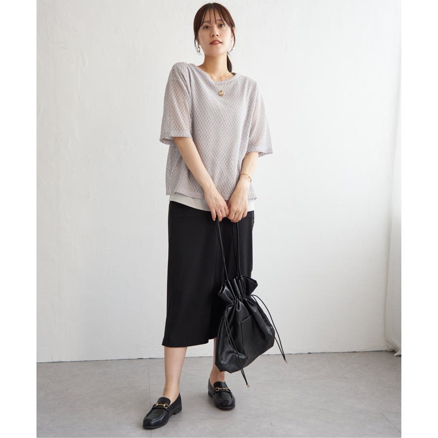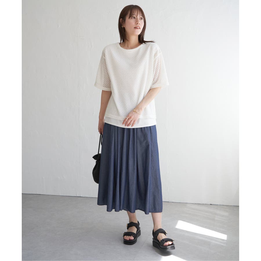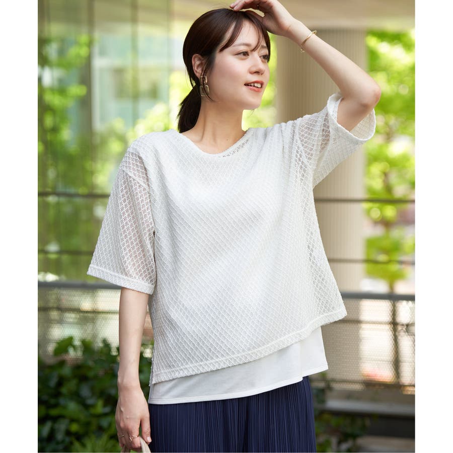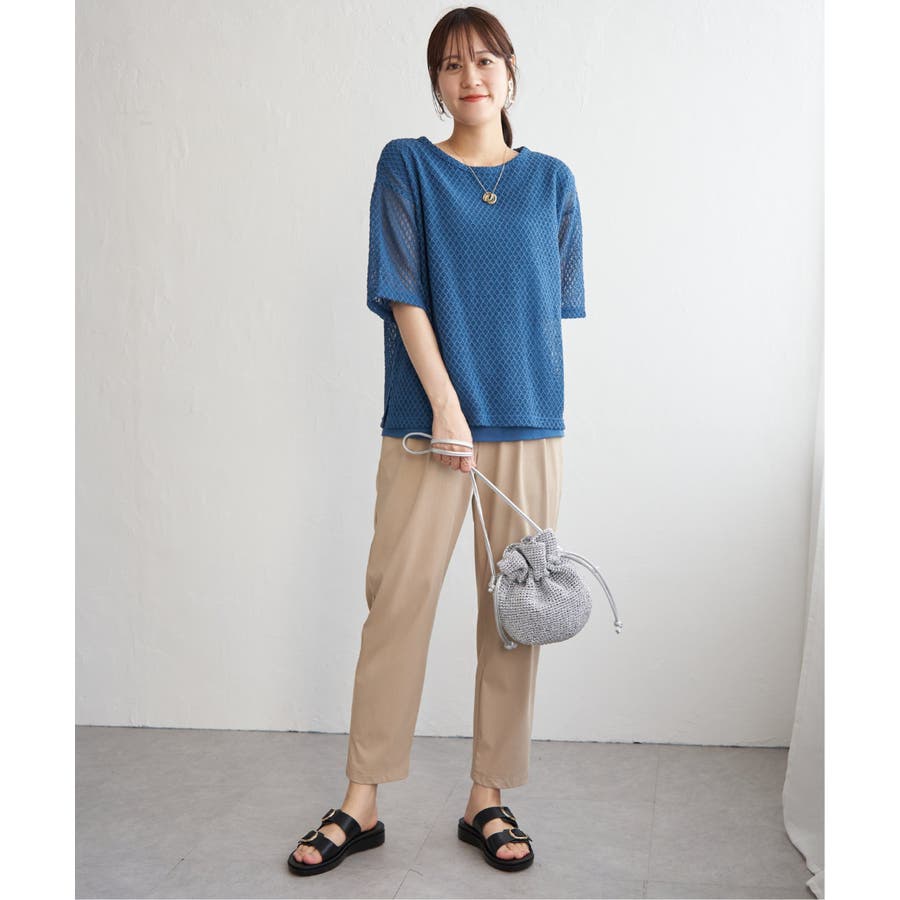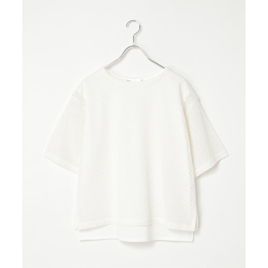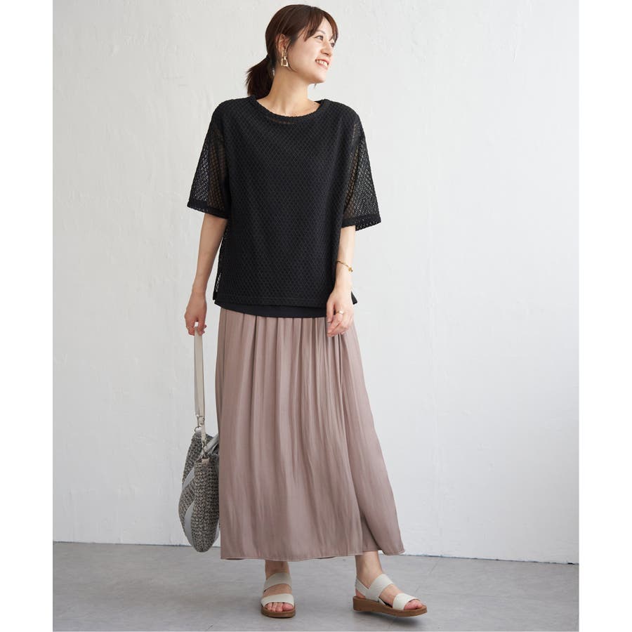 レースのTシャツ型トップスは、二の腕が気になりにくい丈感でおつくりしました。