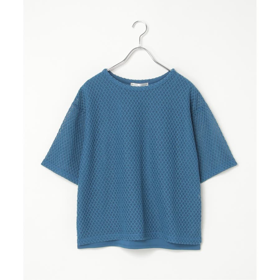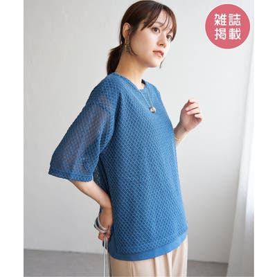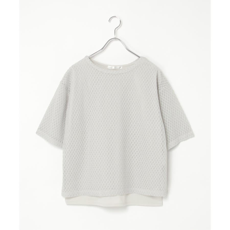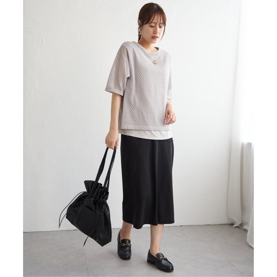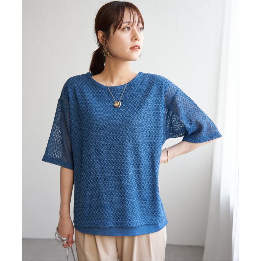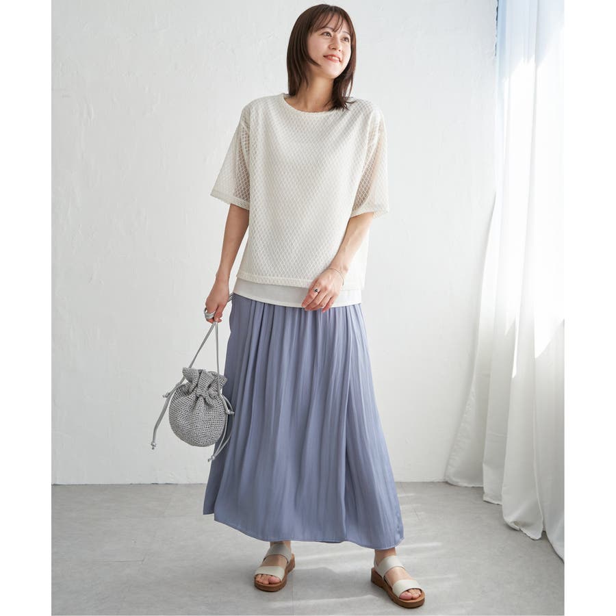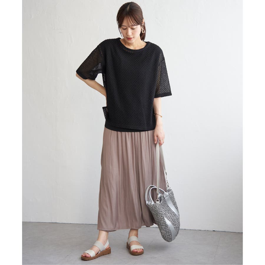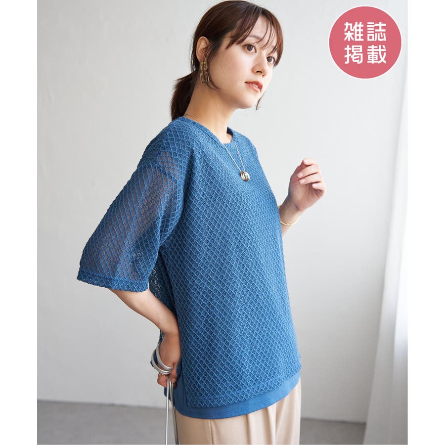 レースのTシャツ型トップスは、二の腕が気になりにくい丈感でおつくりしました。