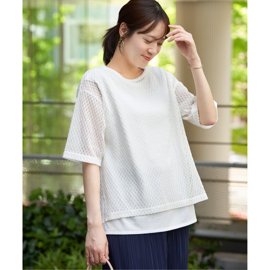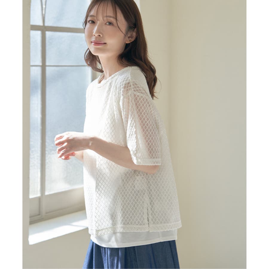 綿混で立体感のあるレース素材は、奥行を感じられる繊細なトップスへと格上げしました。