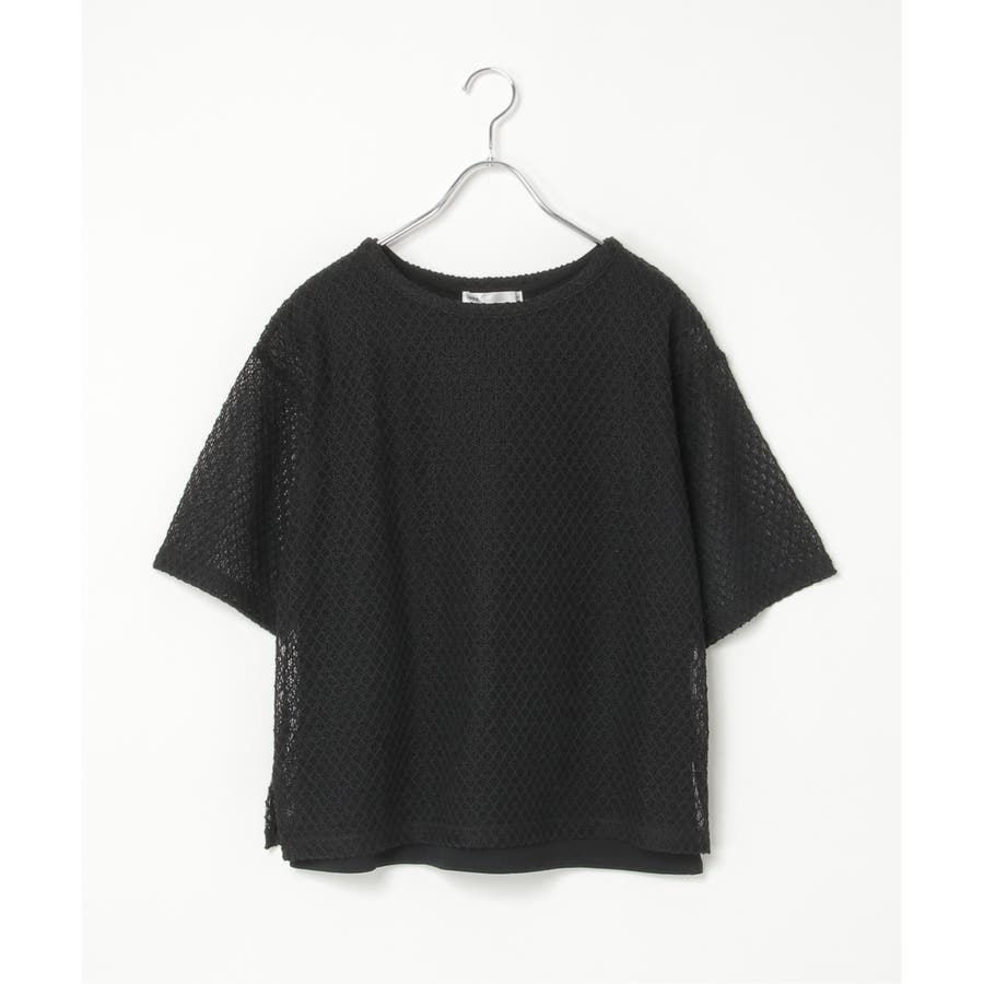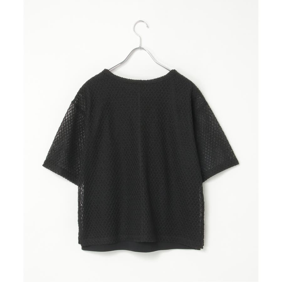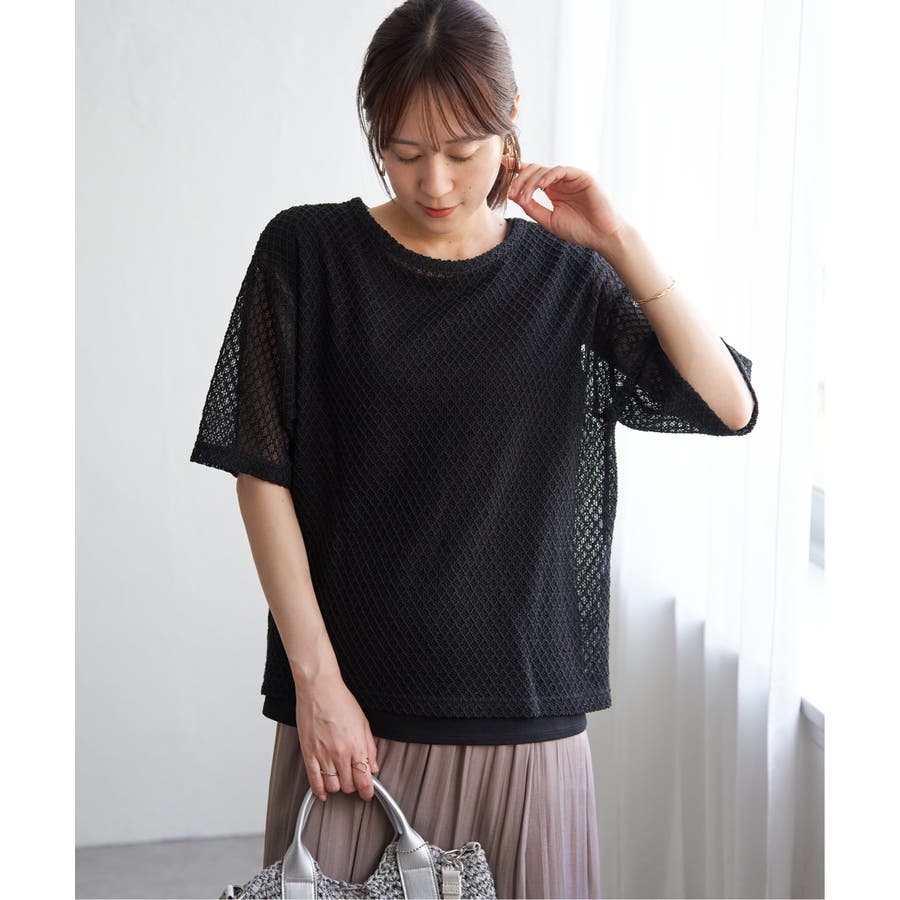 メッシュ風のレーストップスと、インナーのタンクトップがセットになったアンサンブル。